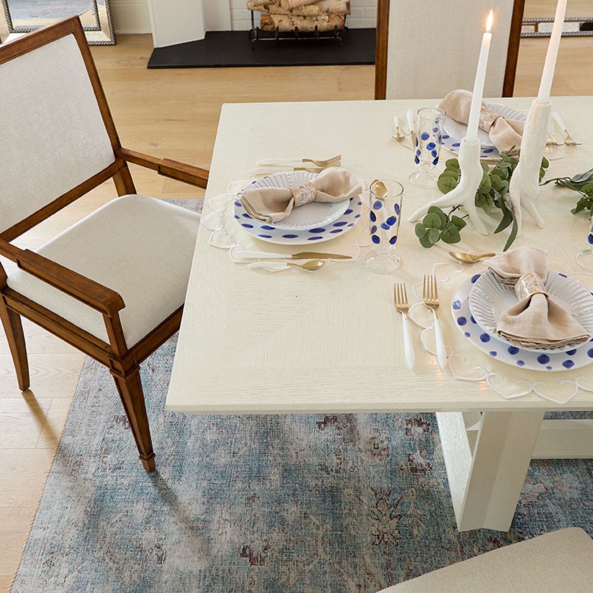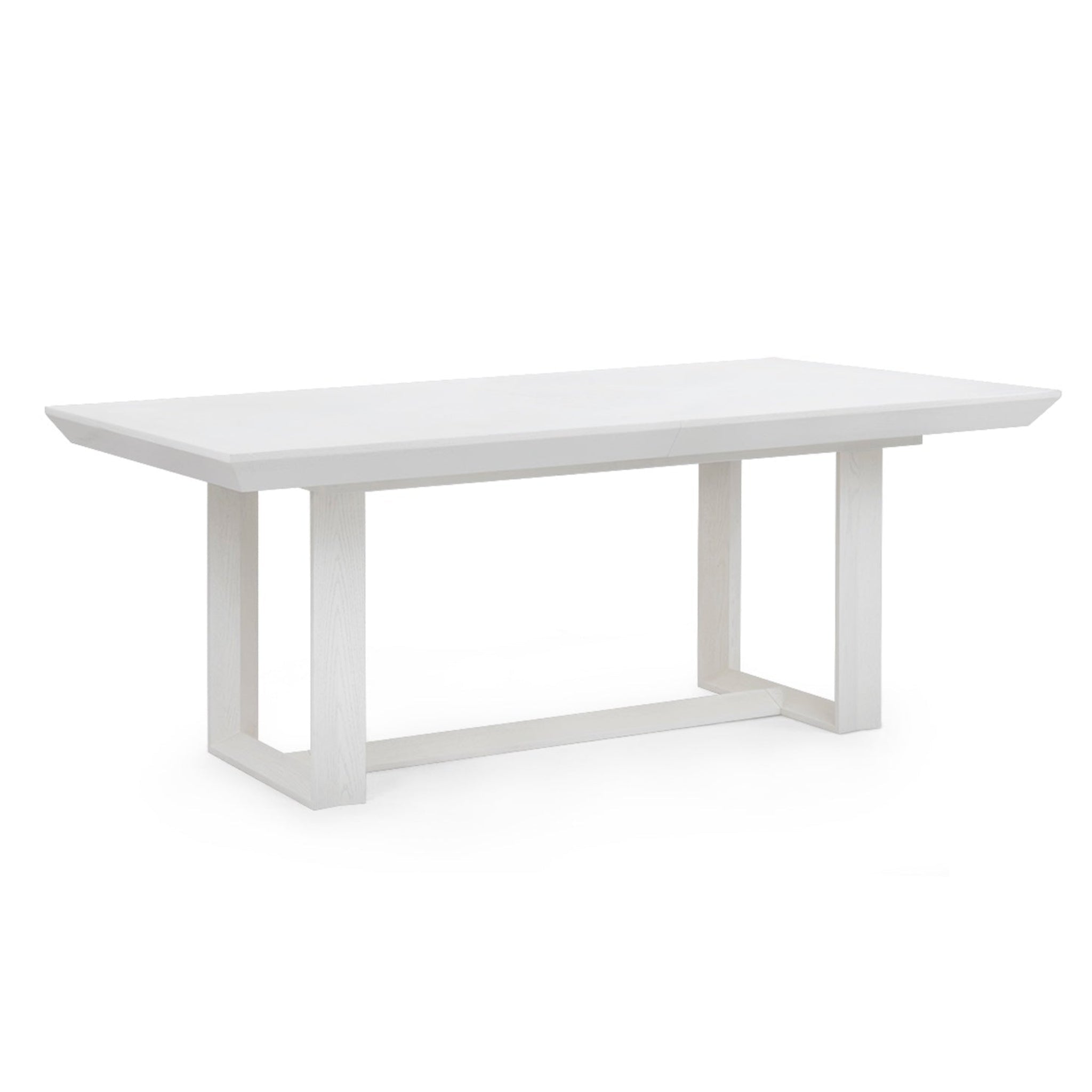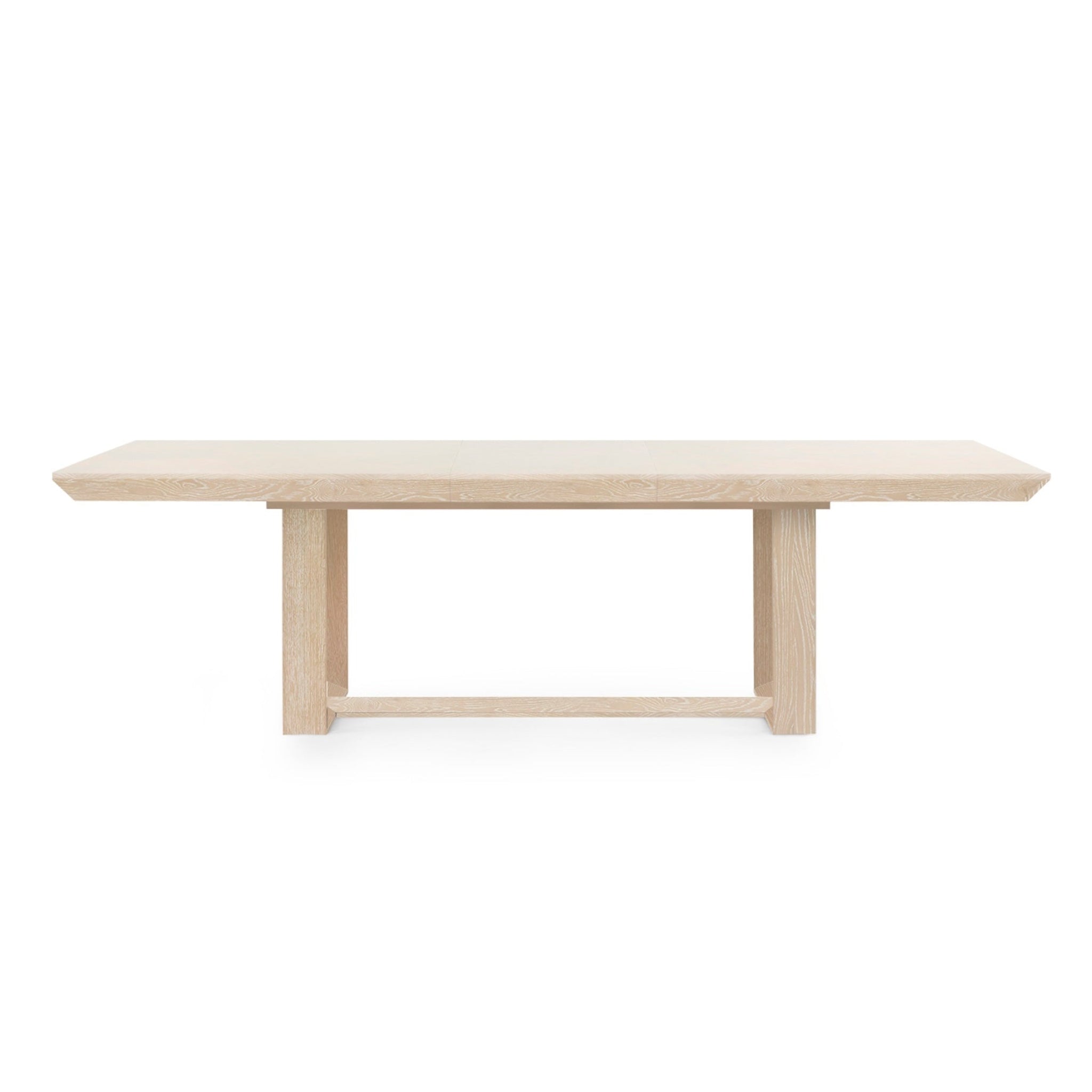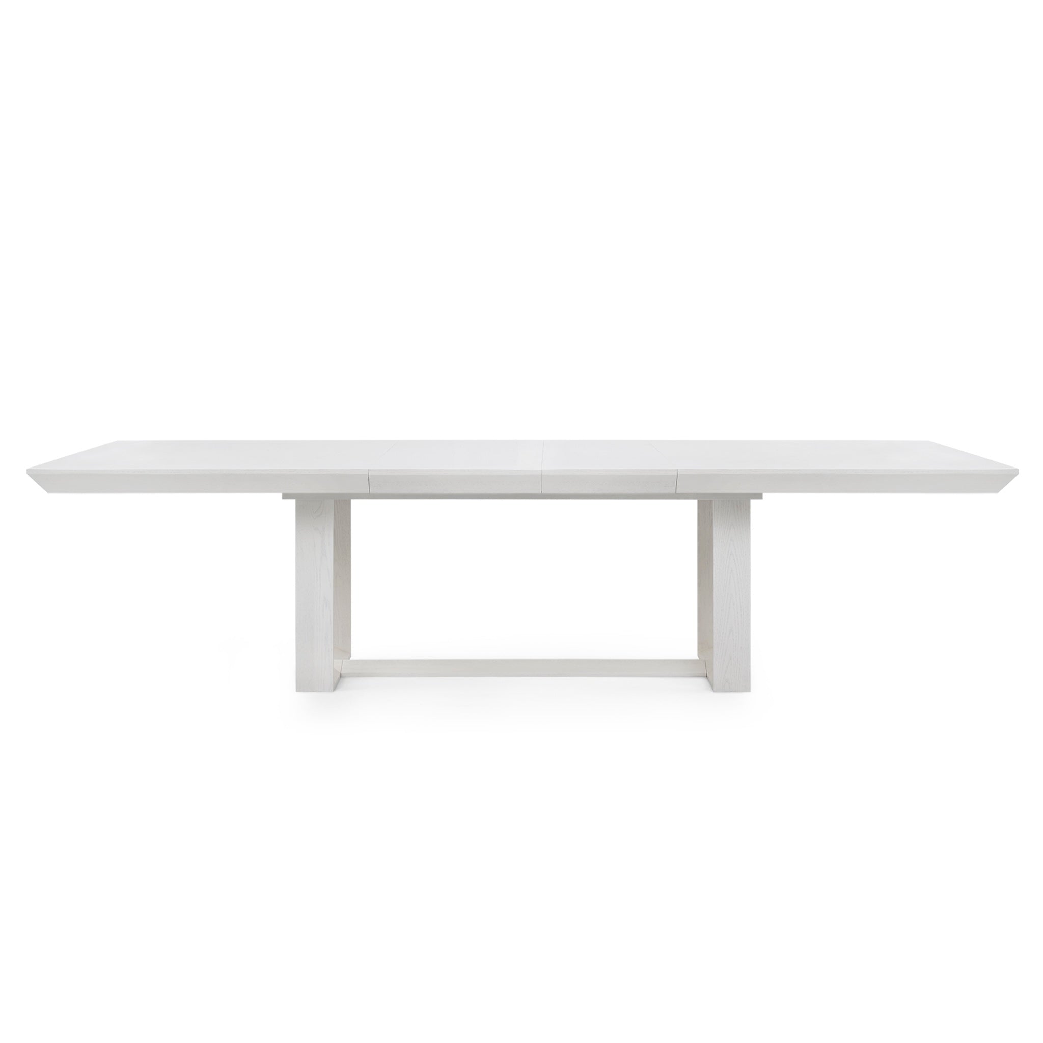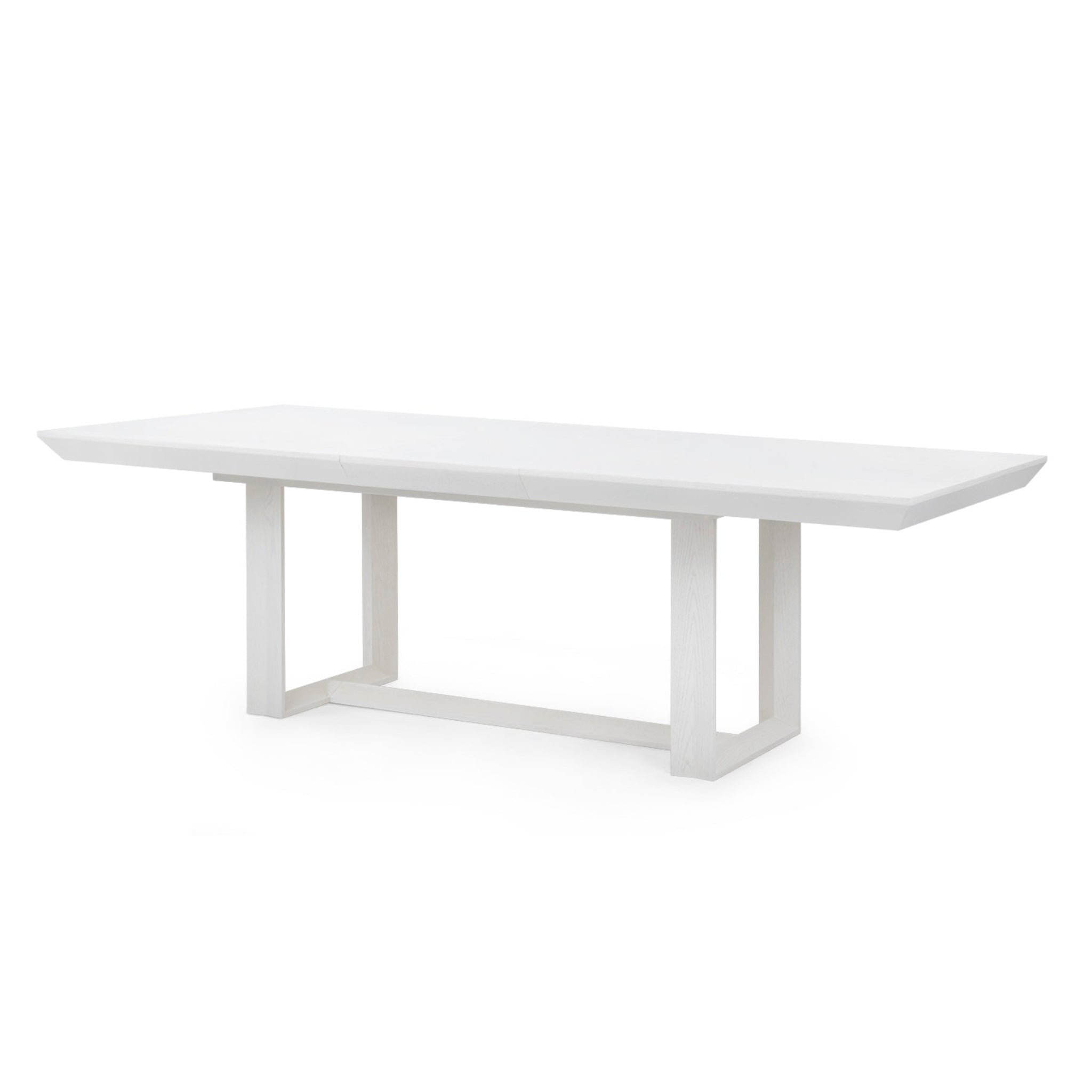 The Finn Dining Table combines deco-inspired elegance with modern architectural precision, featuring a bold rectilinear silhouette in glazed whisper white. With two soft-close extension leaves that allow the table to extend up to 128" with one cleverly stored beneath.