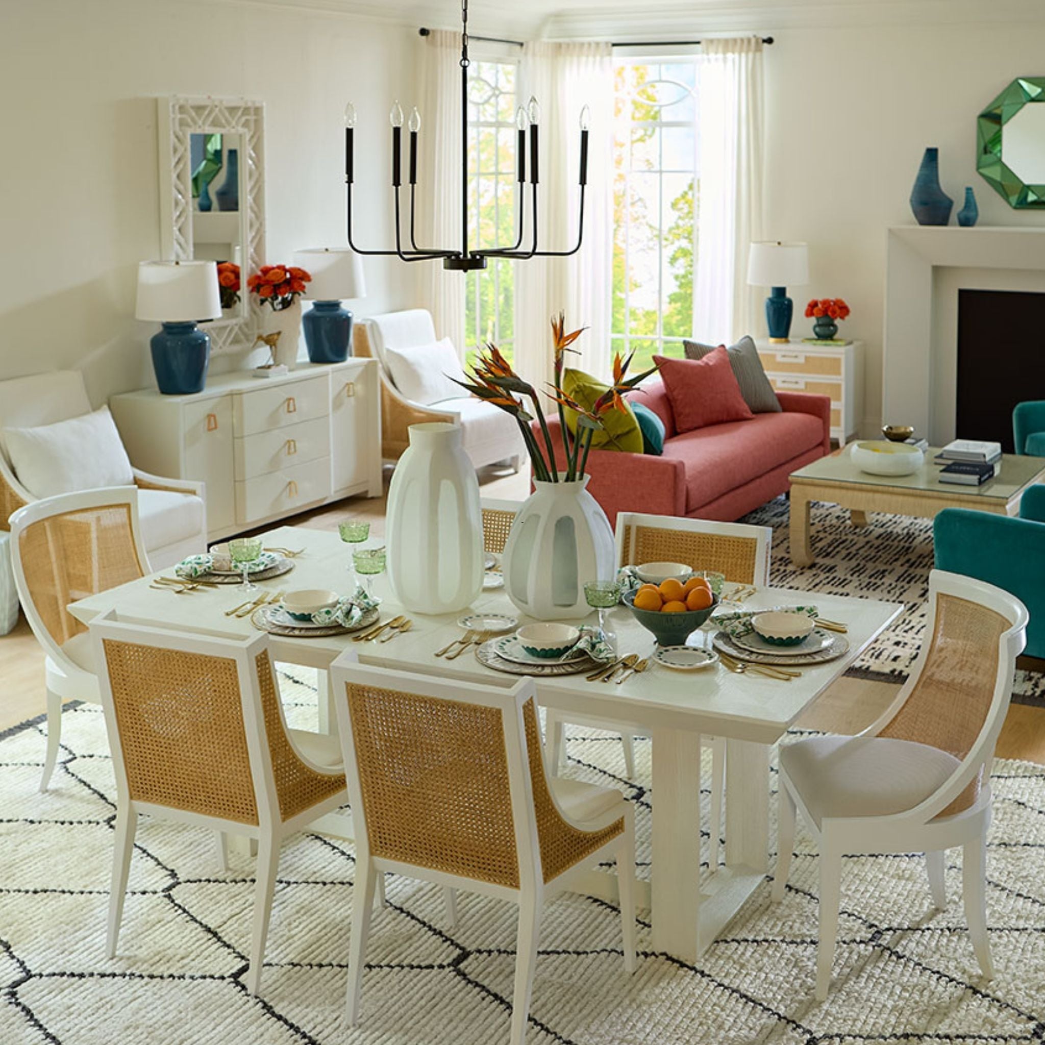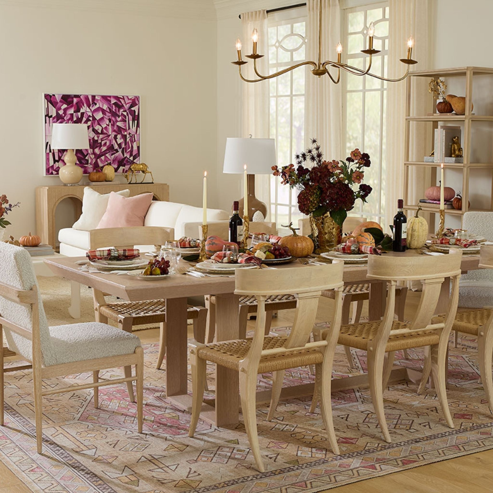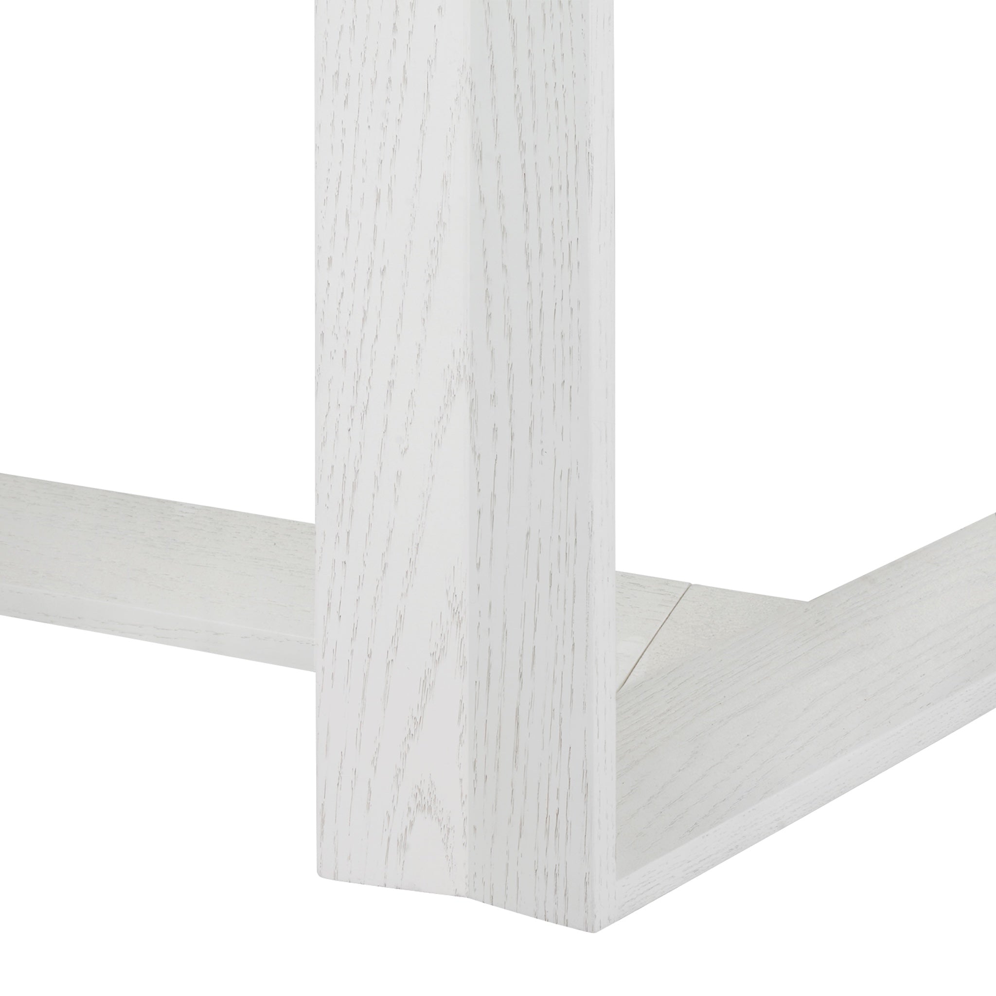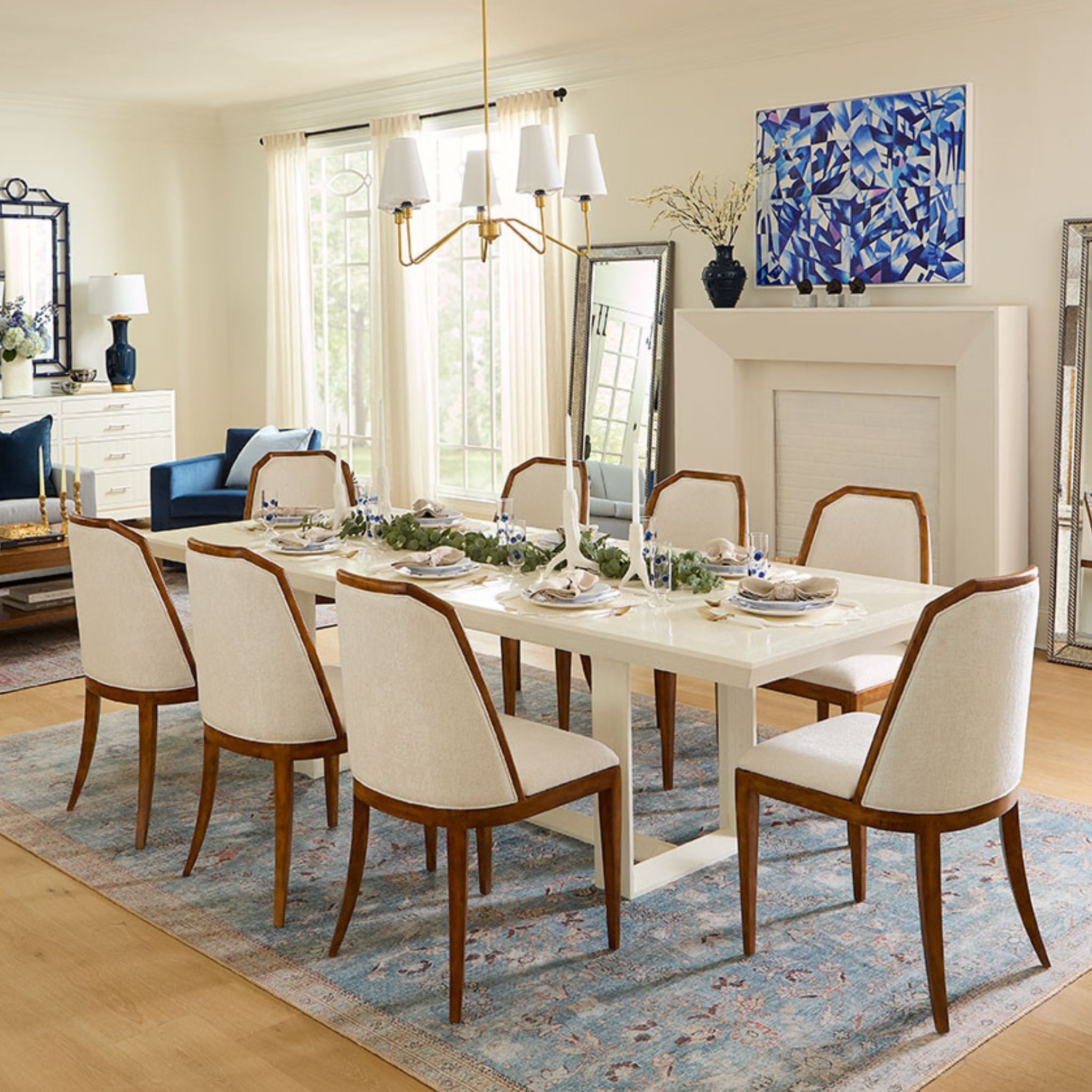 The Finn Dining Table combines deco-inspired elegance with modern architectural precision, featuring a bold rectilinear silhouette in glazed whisper white. With two soft-close extension leaves that allow the table to extend up to 128" with one cleverly stored beneath.