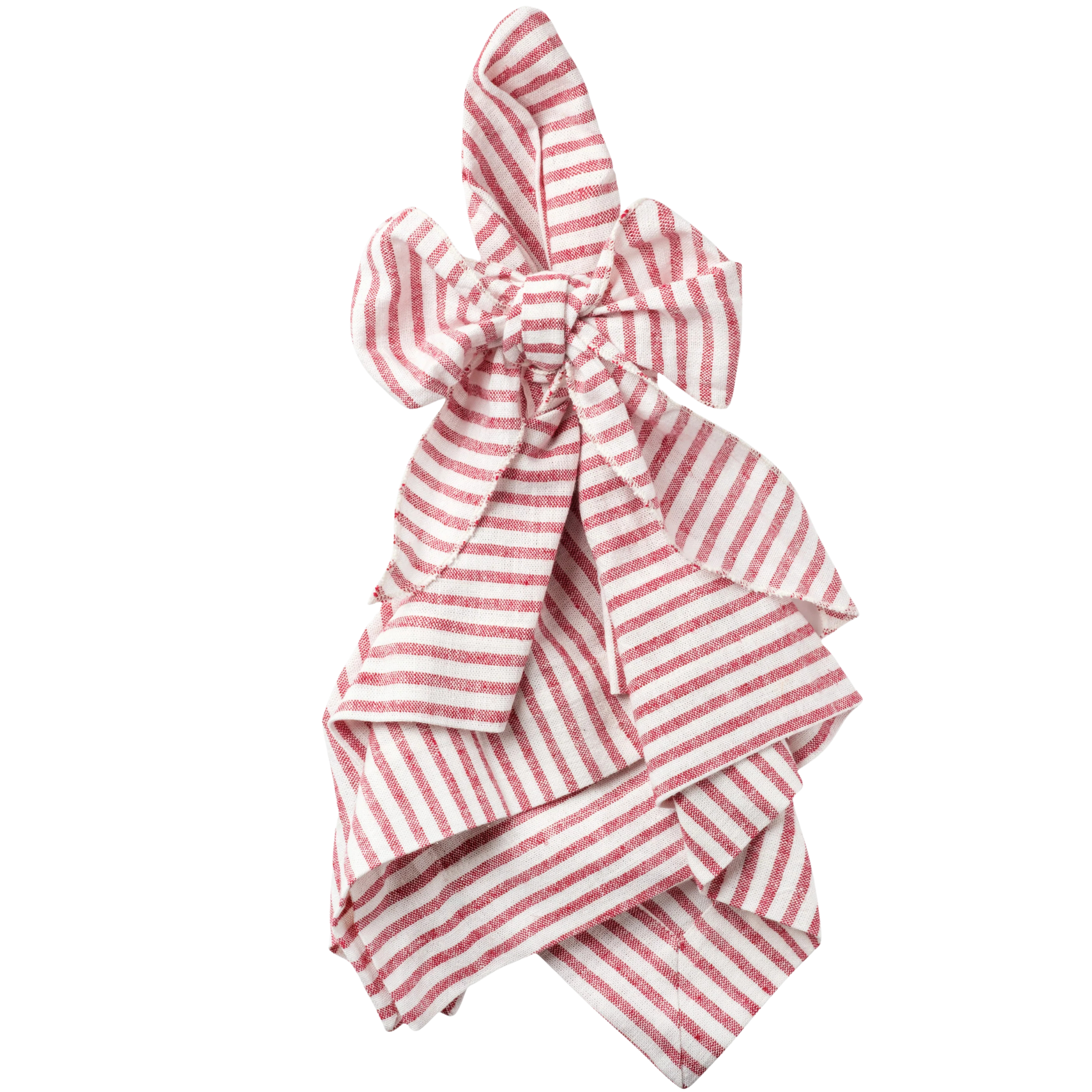 The Bow Linen Napkin in Red Stripe adds a touch of classic charm to any table setting. Made from soft, high-quality linen, it features a bold red stripe that adds a pop of color and a playful yet refined feel. Perfect for both casual and festive occasions, this napkin elevates your dining experience with effortless style.
