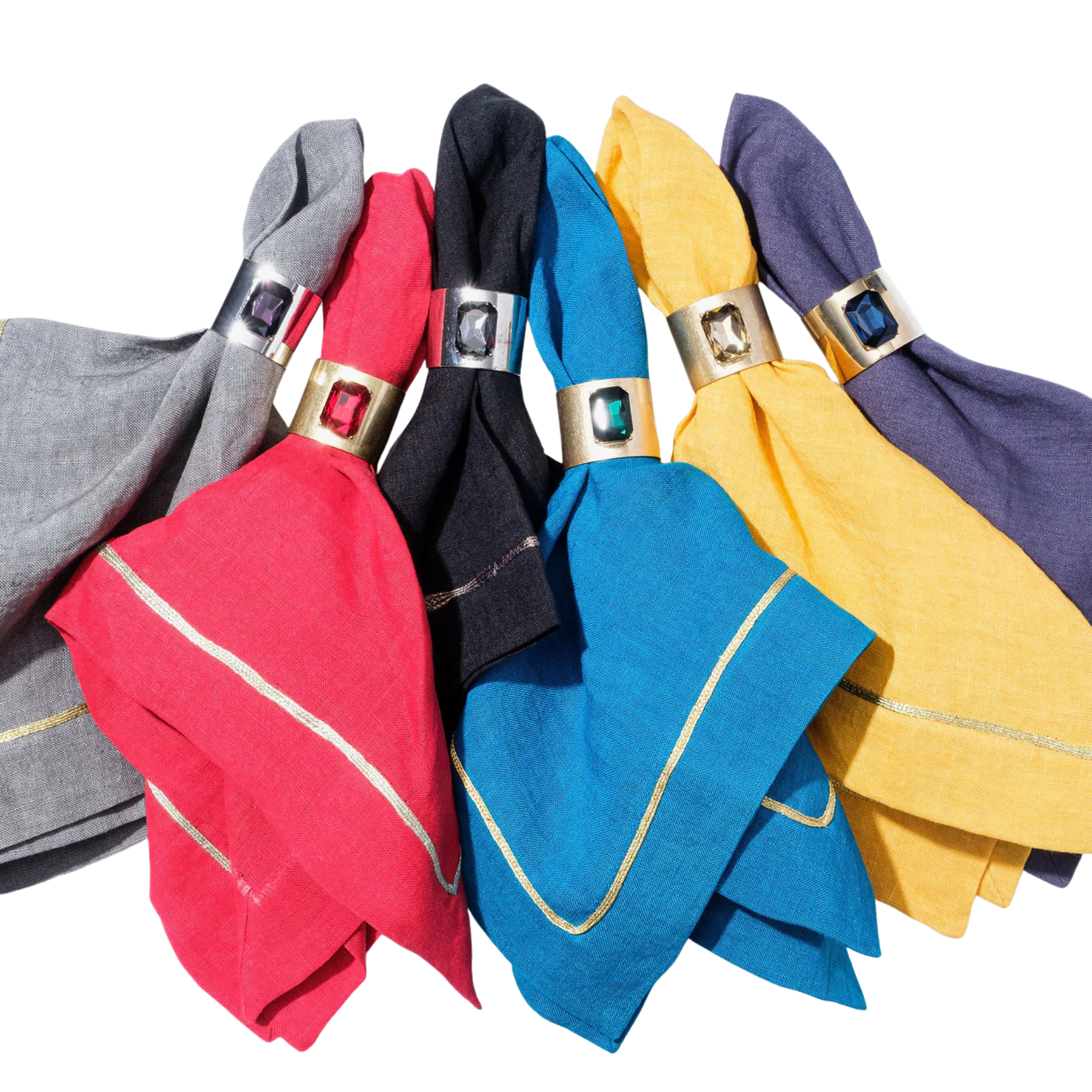 Yellow Gold Trim Dinner Napkins - Set of 2