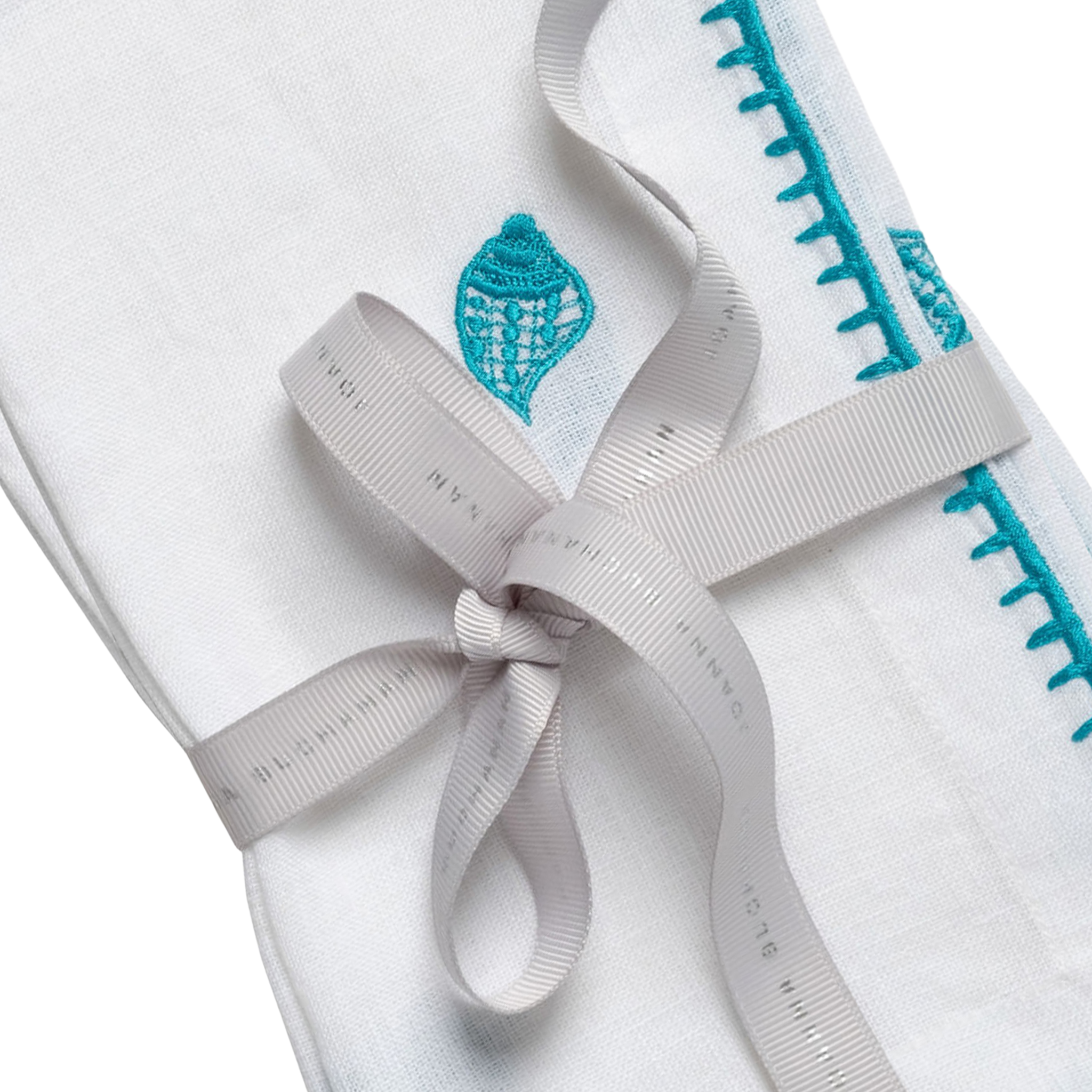 Shell Embroidered Dinner Napkins, White, Set of Two