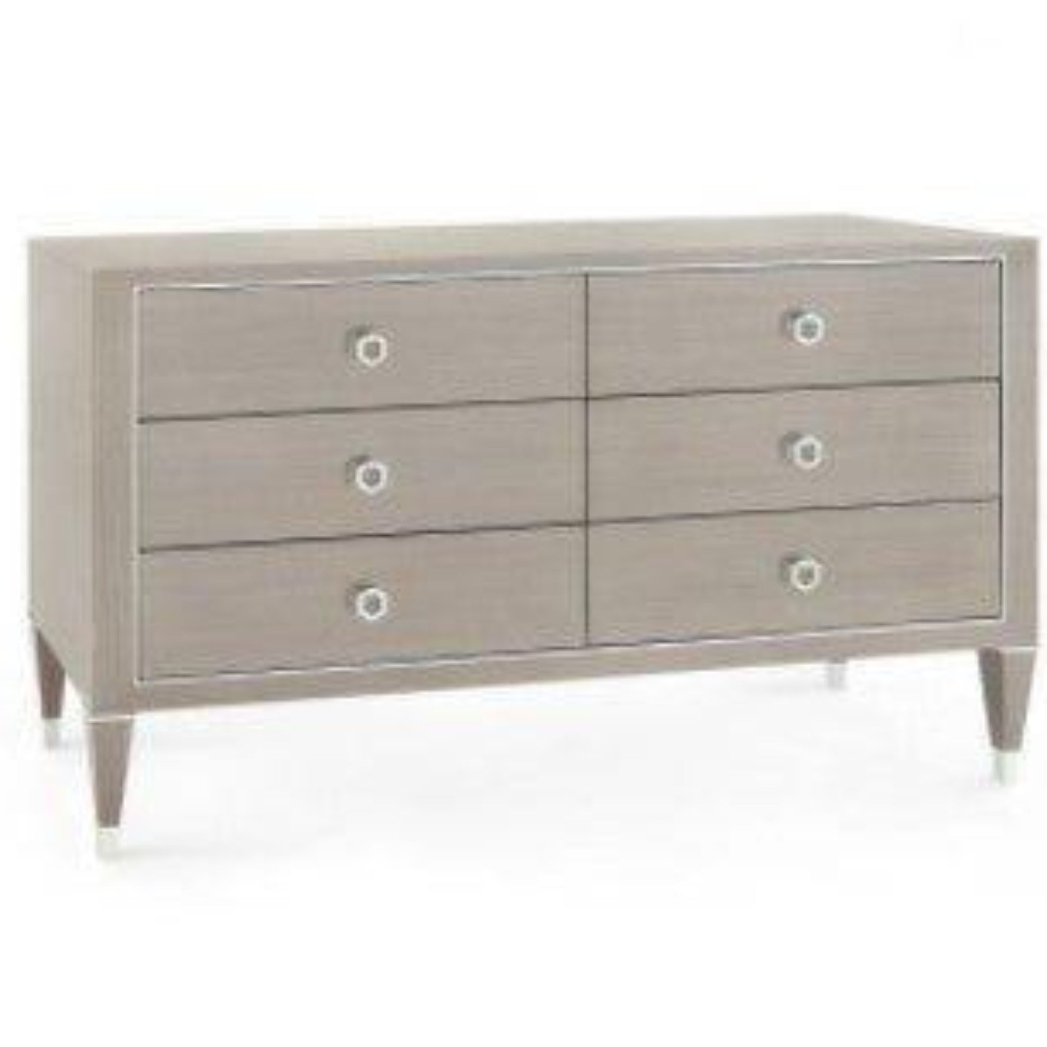 Extra Large Taupe Gray Six Drawer Morris Dresser With Nickel Accents
