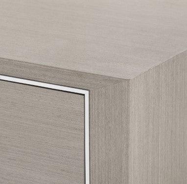 • Clear Lacquered Wood and Veneers with Taupe Gray and Nickel Finish