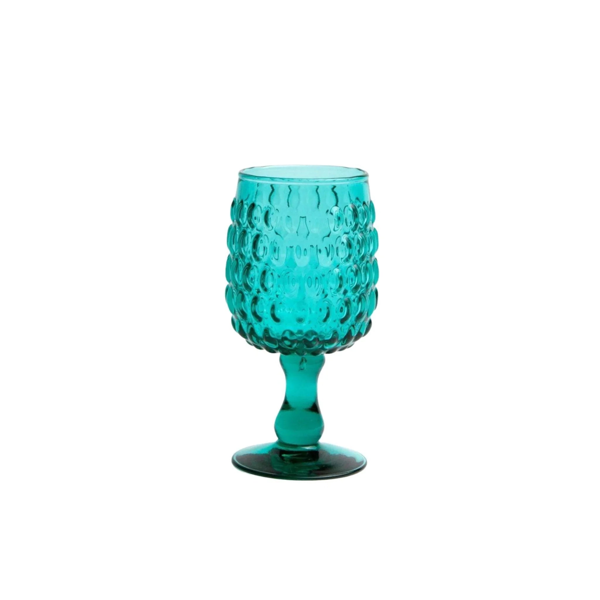 Oval Beaded Hand Blown Wine Glasses in Teal