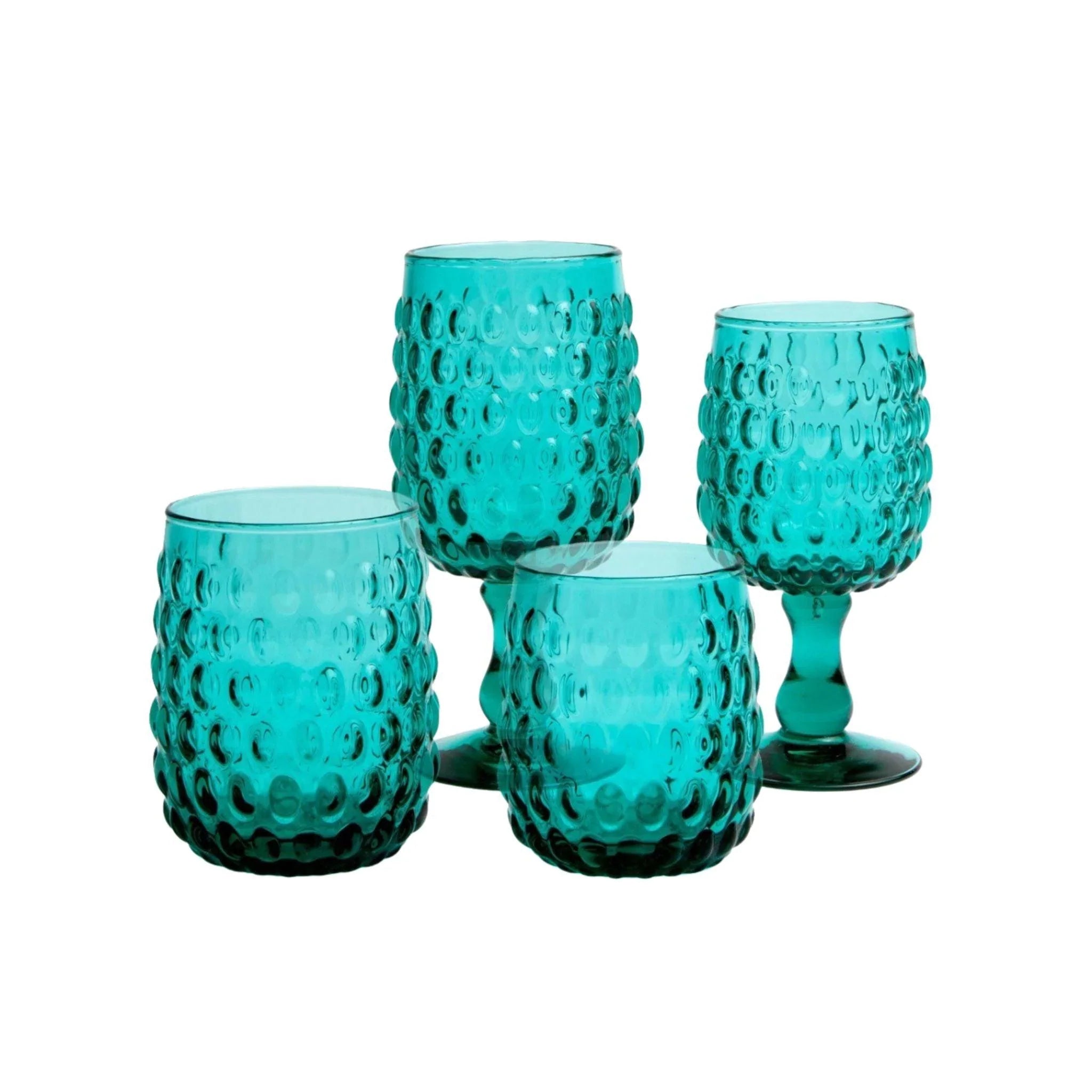 Oval-shaped beads on Claire’s surface make this set as unique as it is versatile. This glassware can be part of any setting. Introduce jewel tones to your table with vibrant teal.