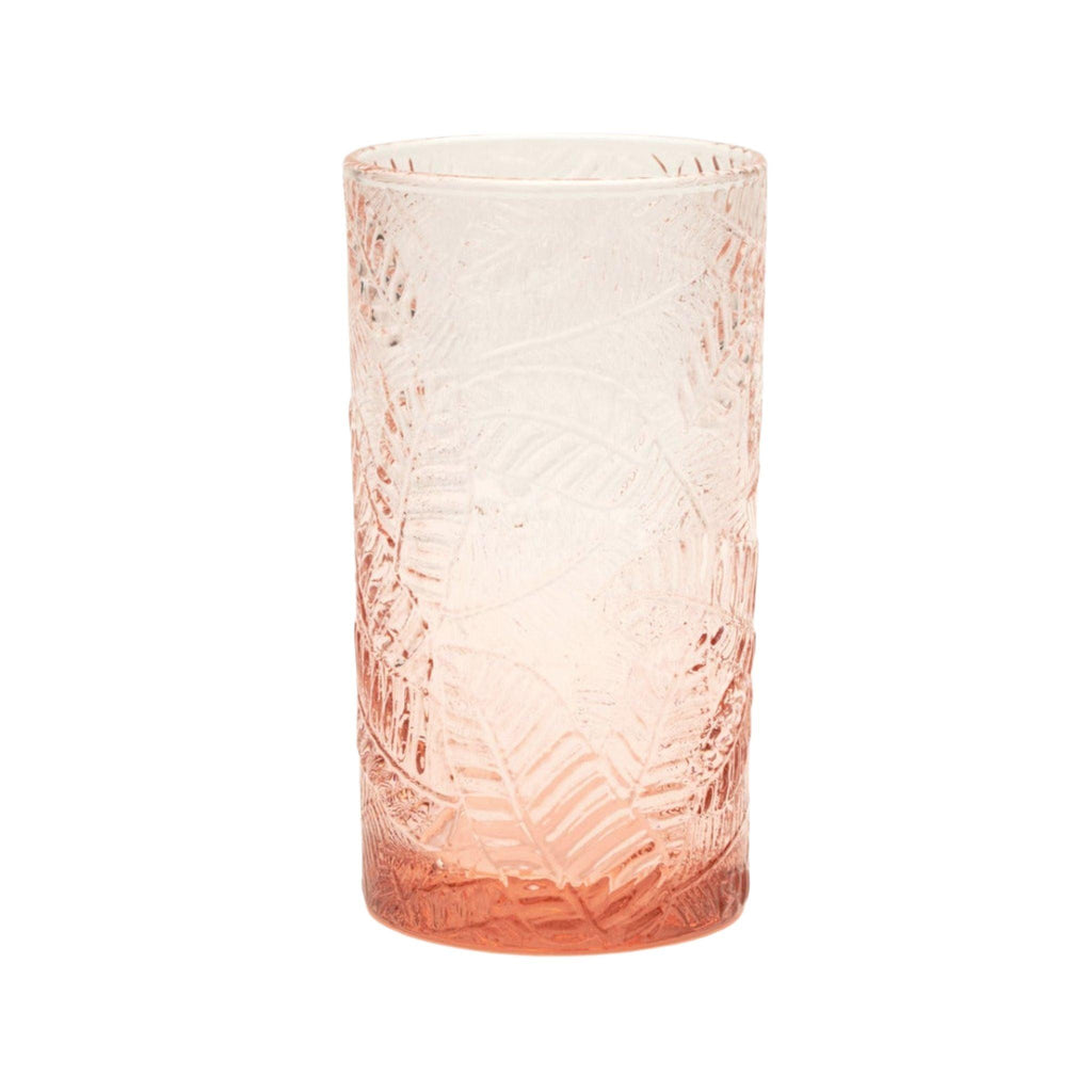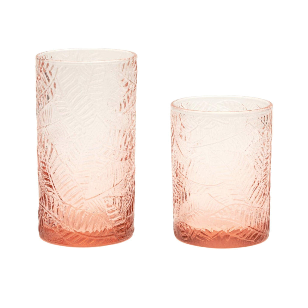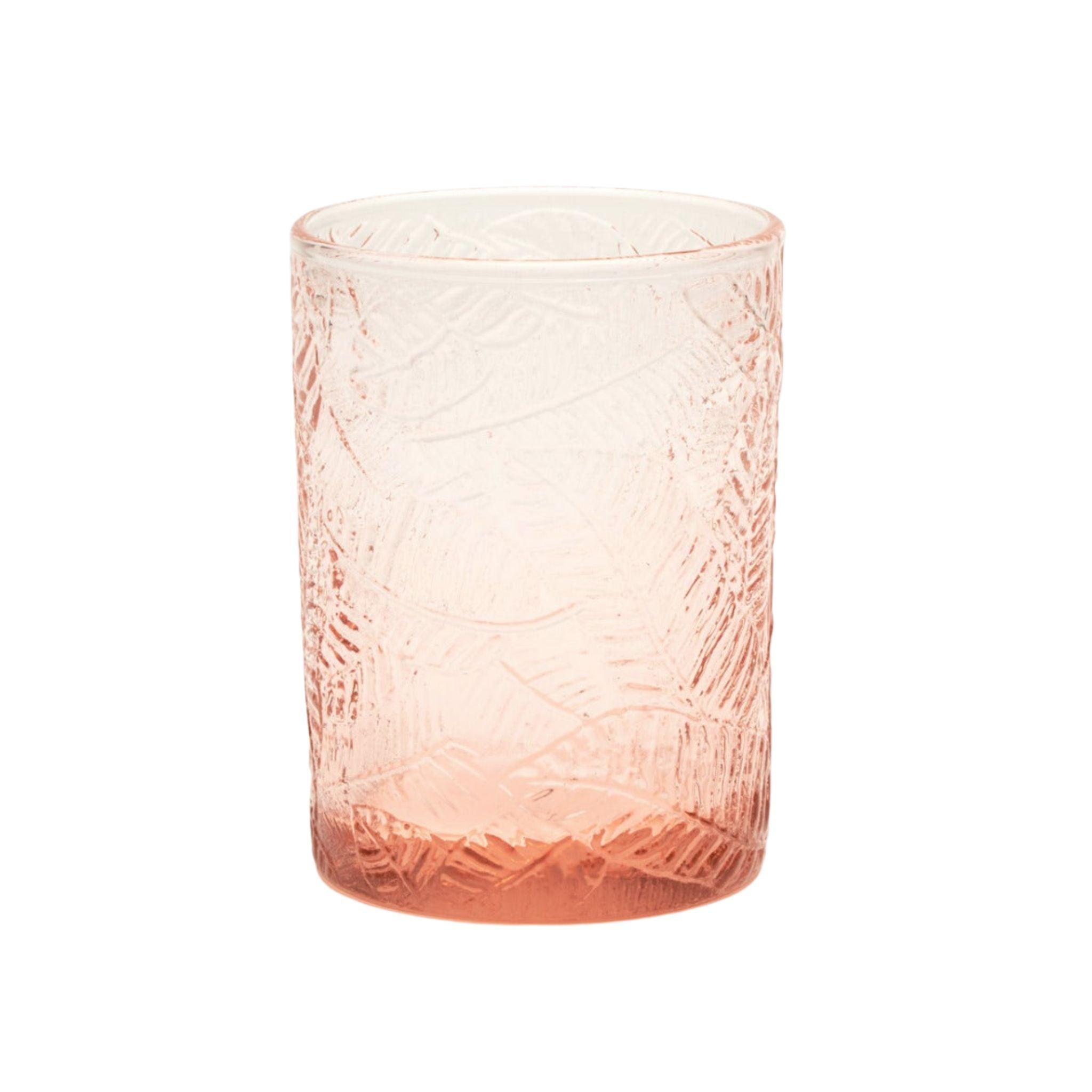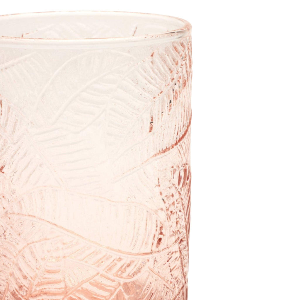 Pink Banana Leaf Pattern Hand Blown Glasses