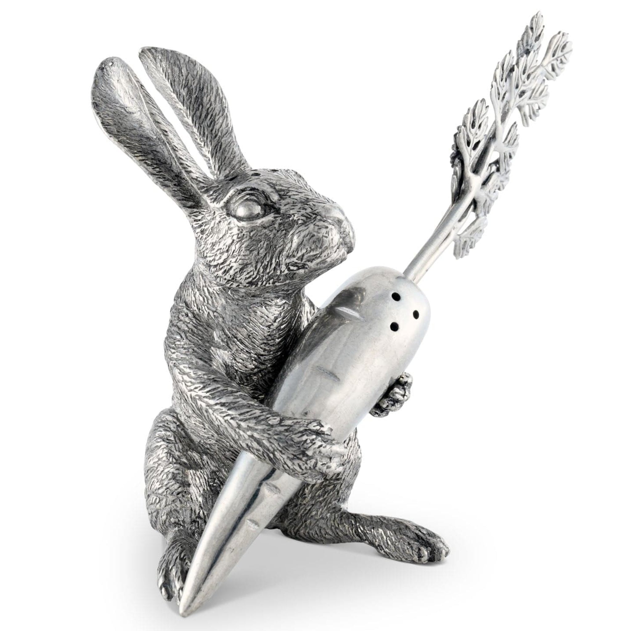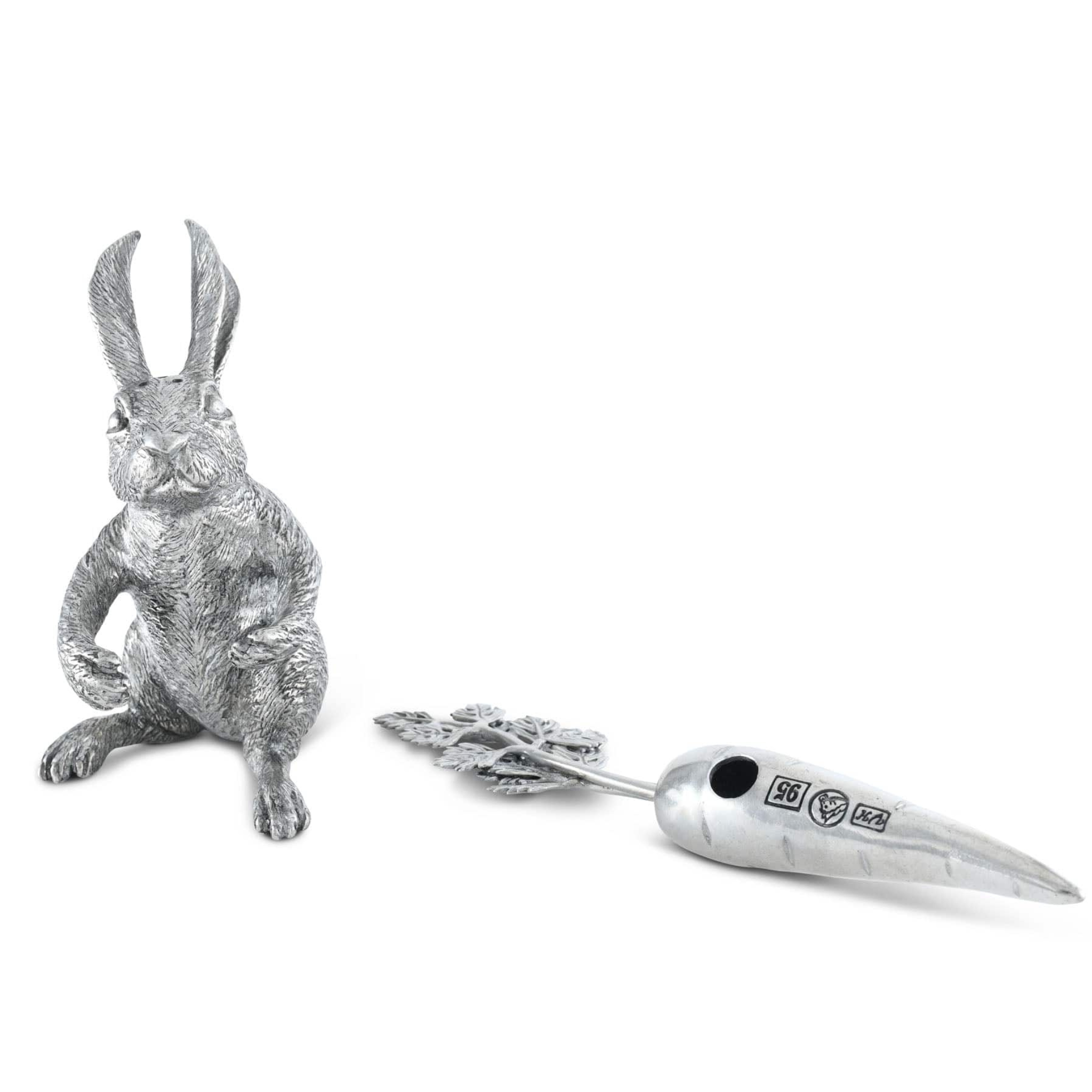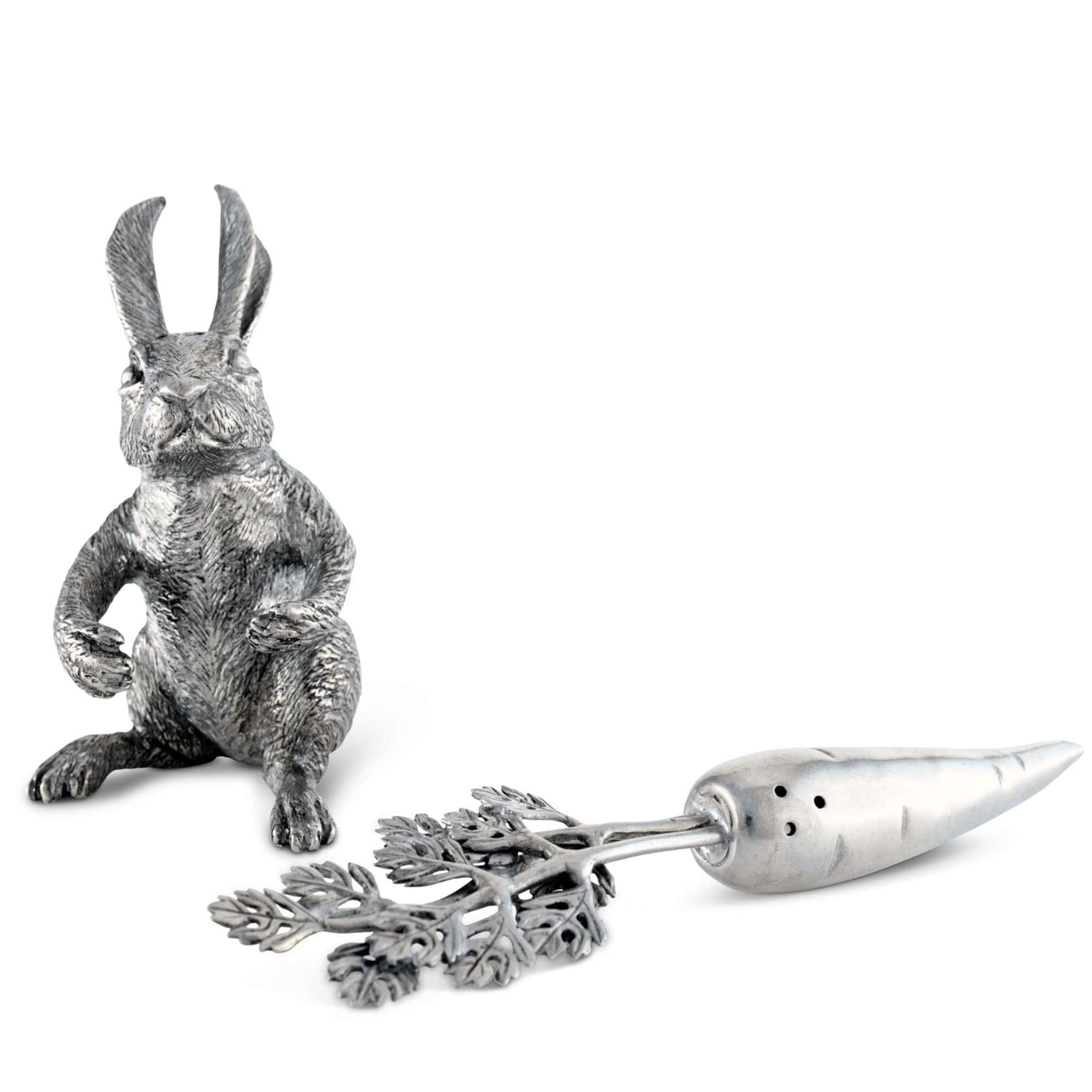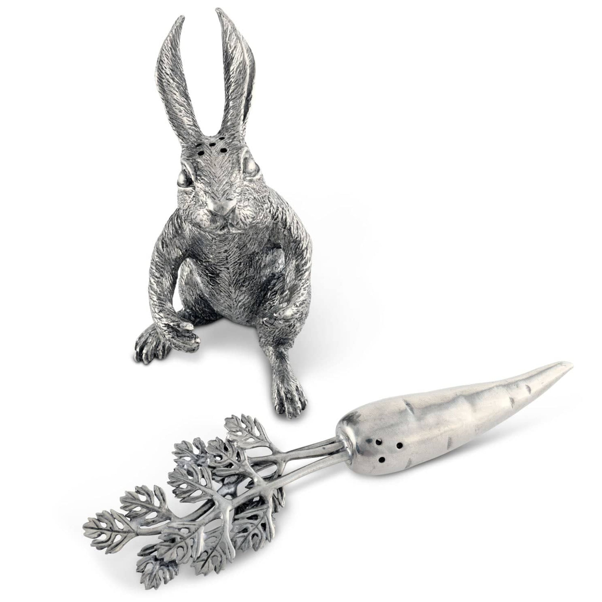 Seeking a unique present for animal lovers? Immerse yourself in the enchanting charm of our Rabbit Carrot Salt & Pepper Set from the Garden Friends collection. Realistically crafted in exquisite pewter, this adorable duo plays up to its versatile nature. Detailed fur, delicate leaves, and defined ears bring out an incredible definition to this compact size set perfect for entertaining at your table.
