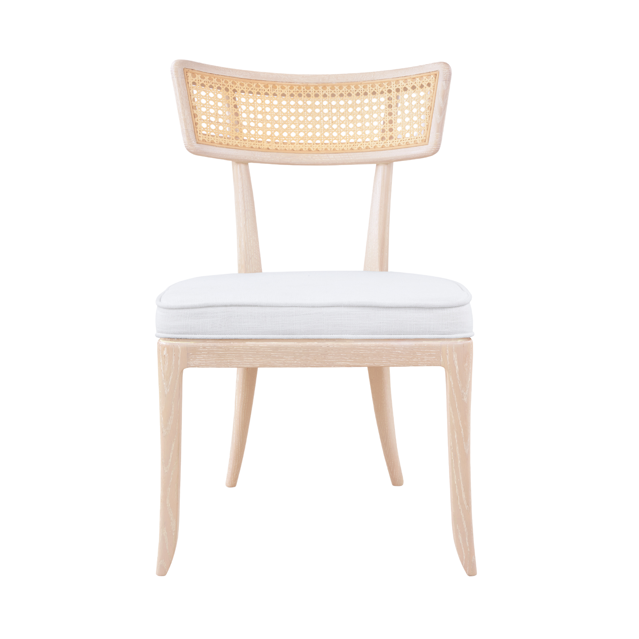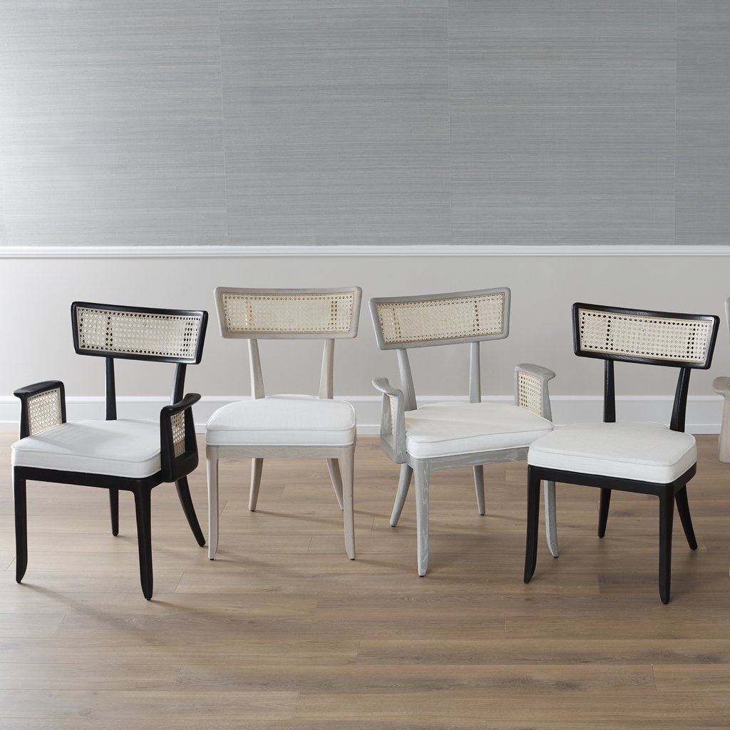 The Marshall Chair Collection is a wonderfully avant-garde addition to our seating selections. With a slight nod to the Art Deco period of the late 1930s, this piece is crafted from solid wood and bleached octagonal cane. The back is slightly curved, and the seat is fitted with a welted natural linen cushion. The Marshall Side Chair is a standout addition to any dining room, office, or den.