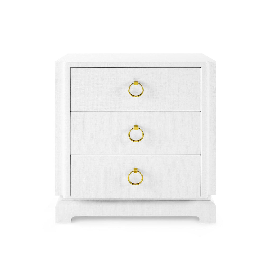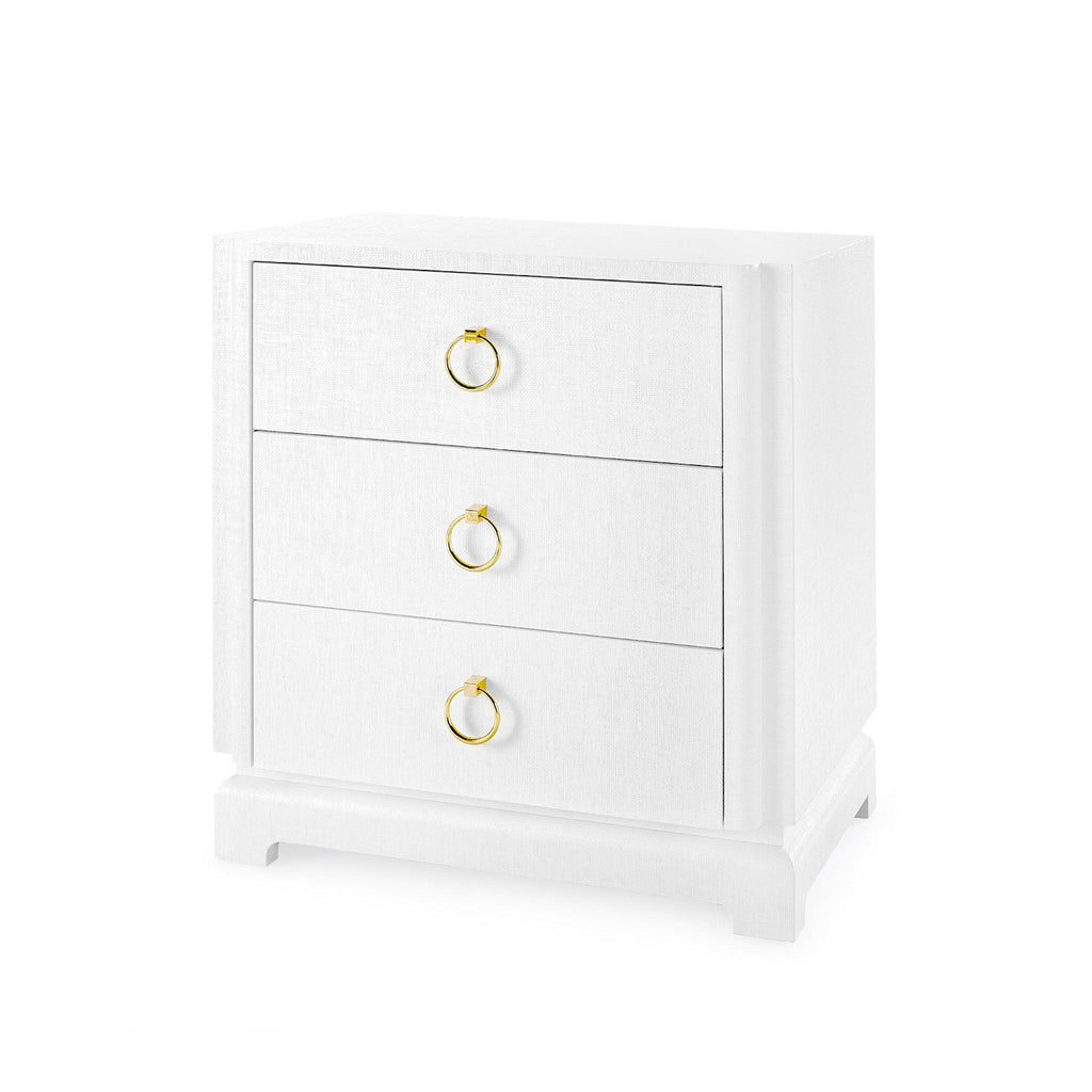Pavel 3-Drawer Chiffon White Grasscloth Side Table with Gold Pulls