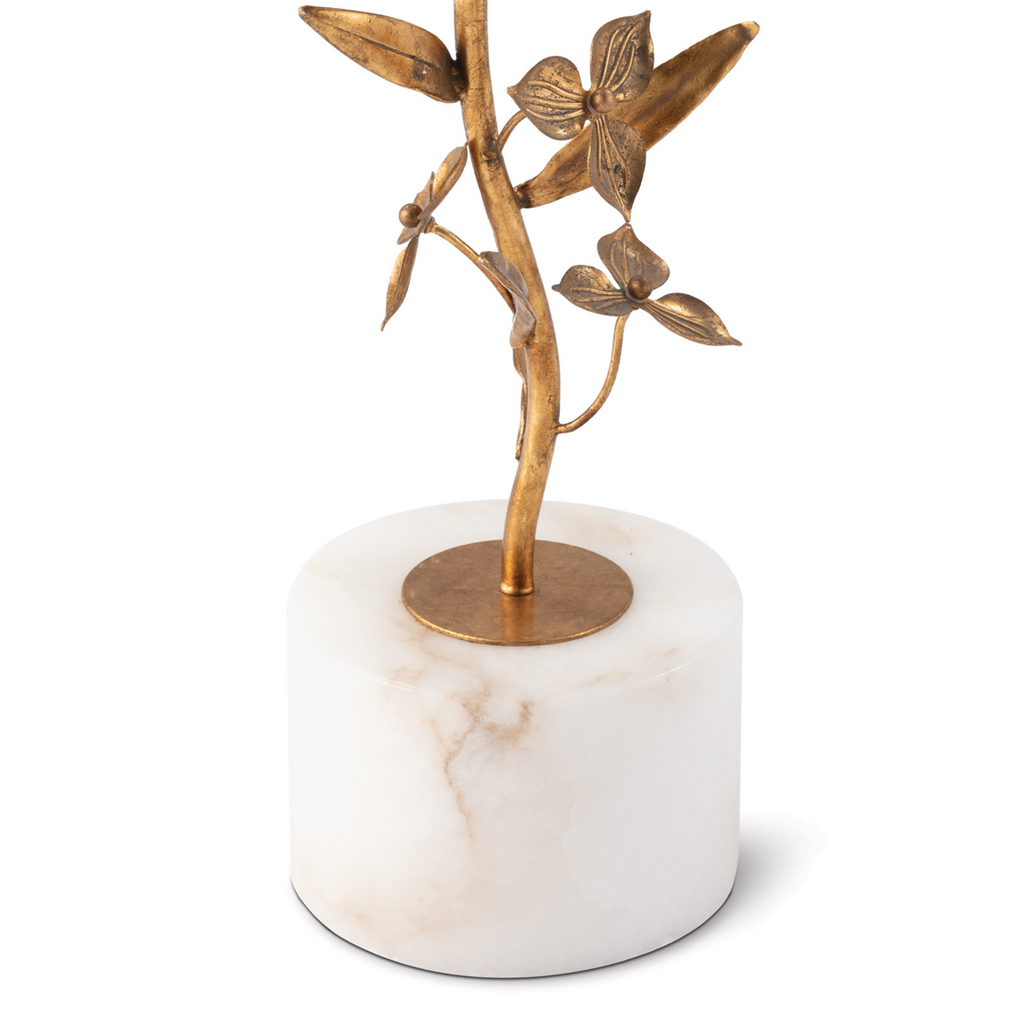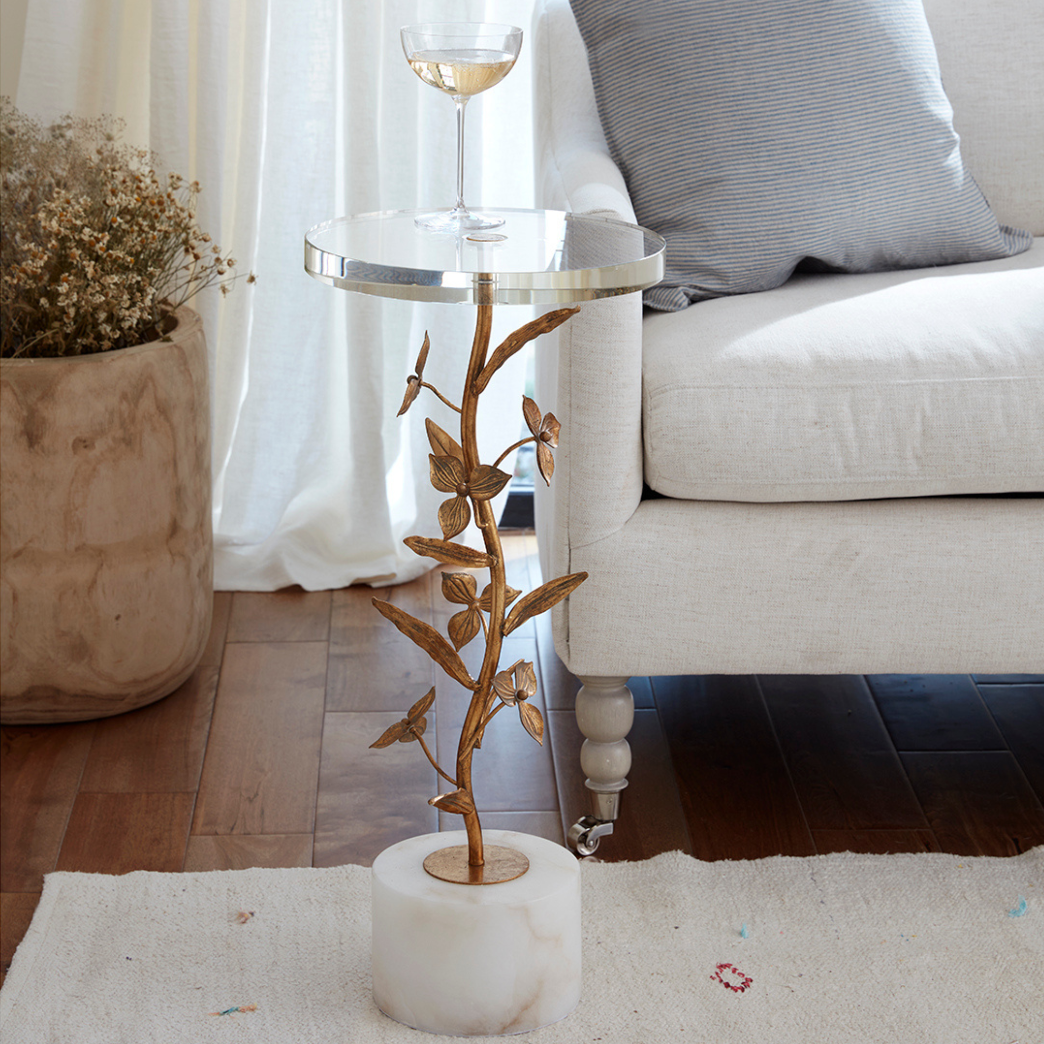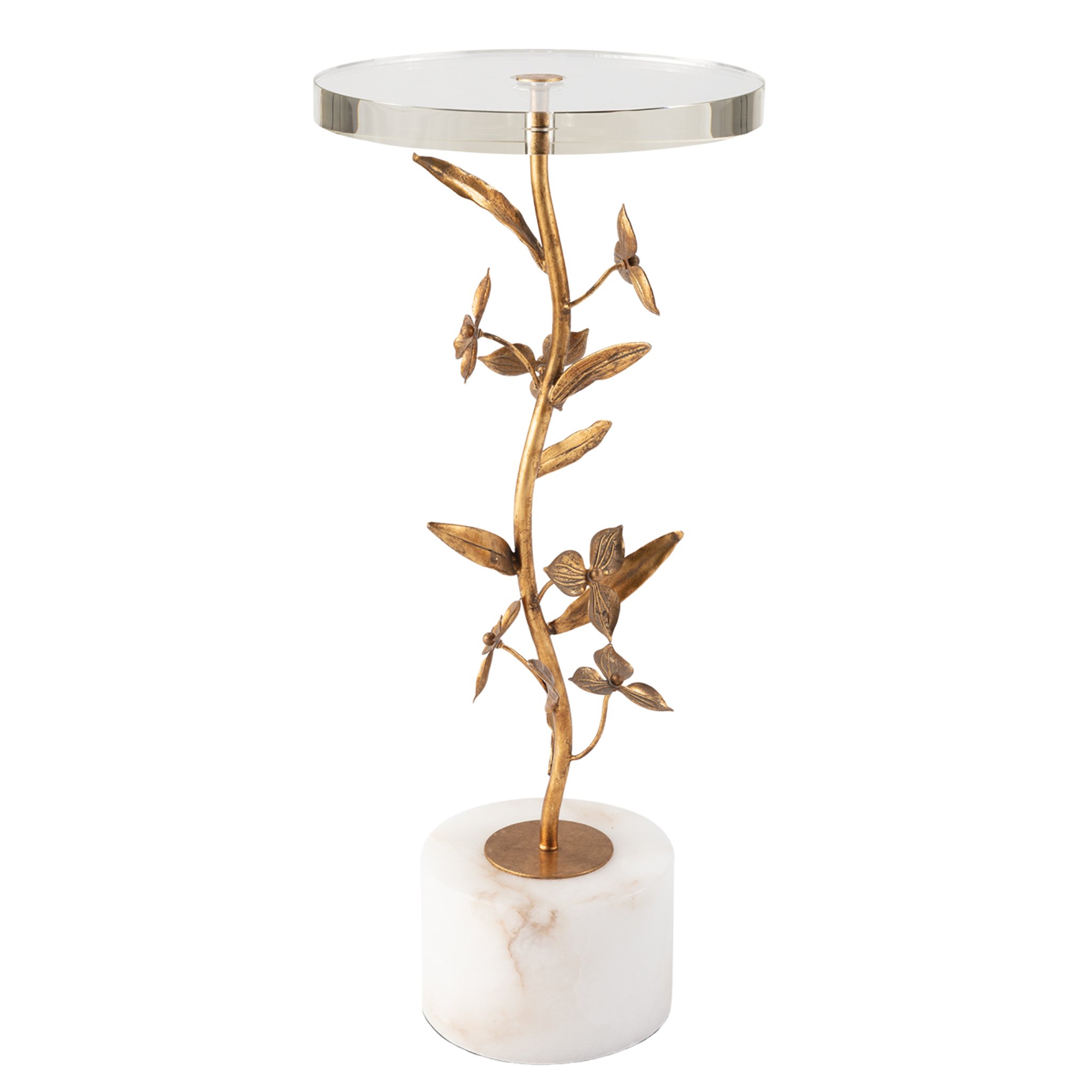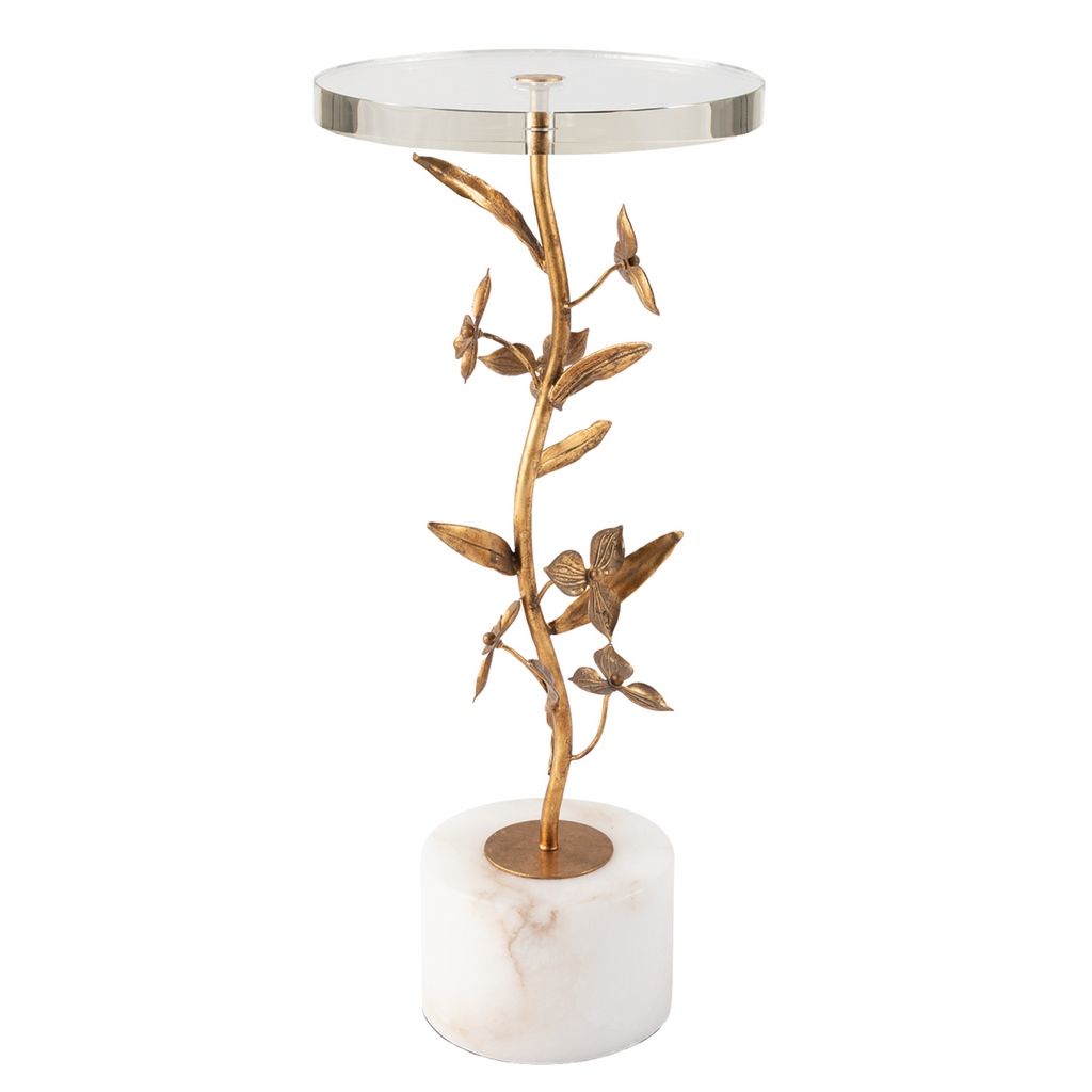 Bring the feel of an upscale lounge to your home, where you can sip and relax with this Martini Table. Brass gilded branches and a polished alabaster base make up the body of this charming piece. Nested between a pair of sofas or love seats, this table will become an elevated accent that adds glamour to your style in every way.