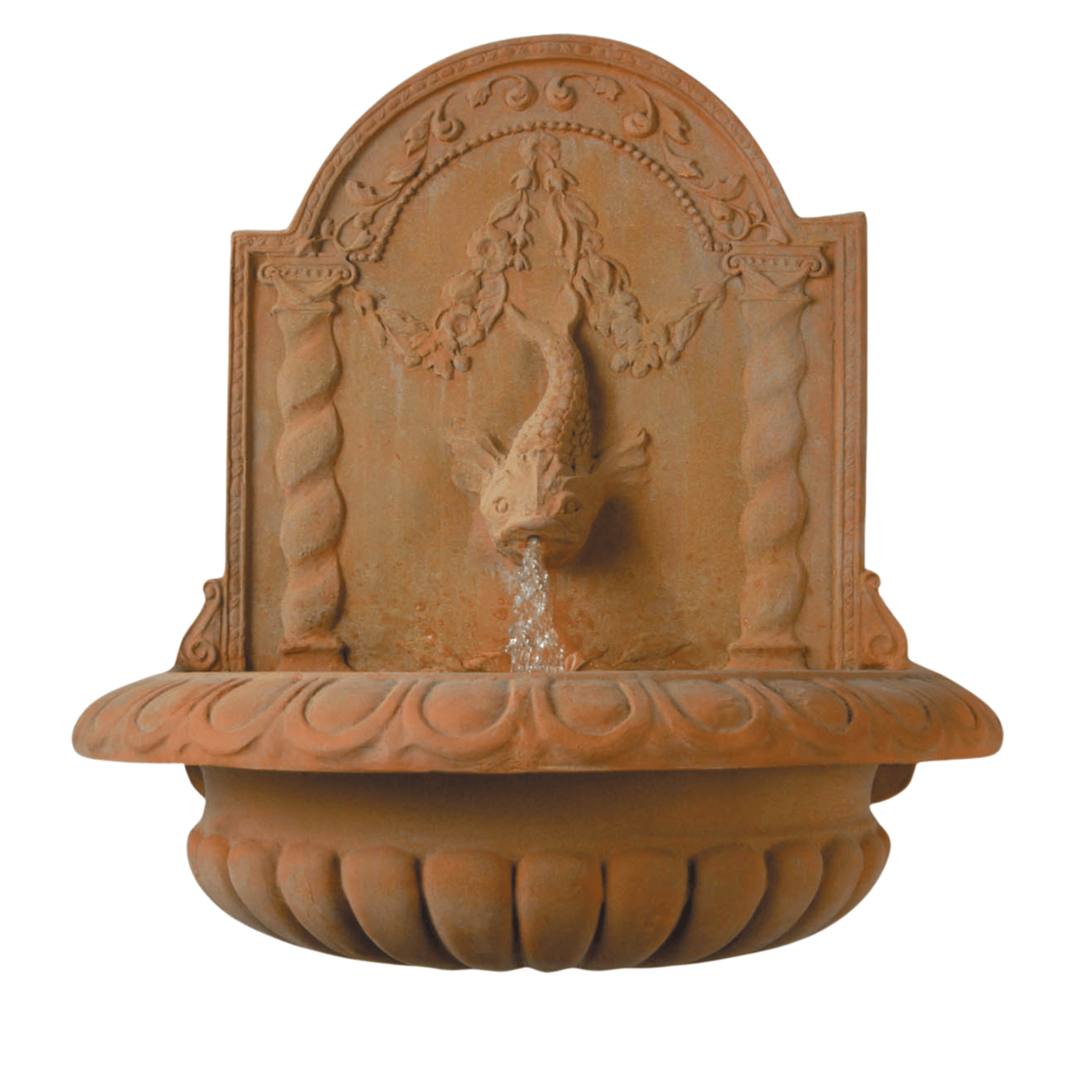 This impressive Great Dolphin Bowl fountain is a real showstopper. The dolphin design is a real classic and its scale of it makes it an obvious choice as a focal point for any garden vista. It is made of lightweight fiberglass and is therefore easy to hang on any inside or outside wall. Why fiberglass? It's a wonderfully tough and versatile material, fibreglass is maintenance-free and light in weight. Completely frost-proof and non-corrosive, it is superior to terracotta, stone, and even some metals and is ideal for use inside and out.