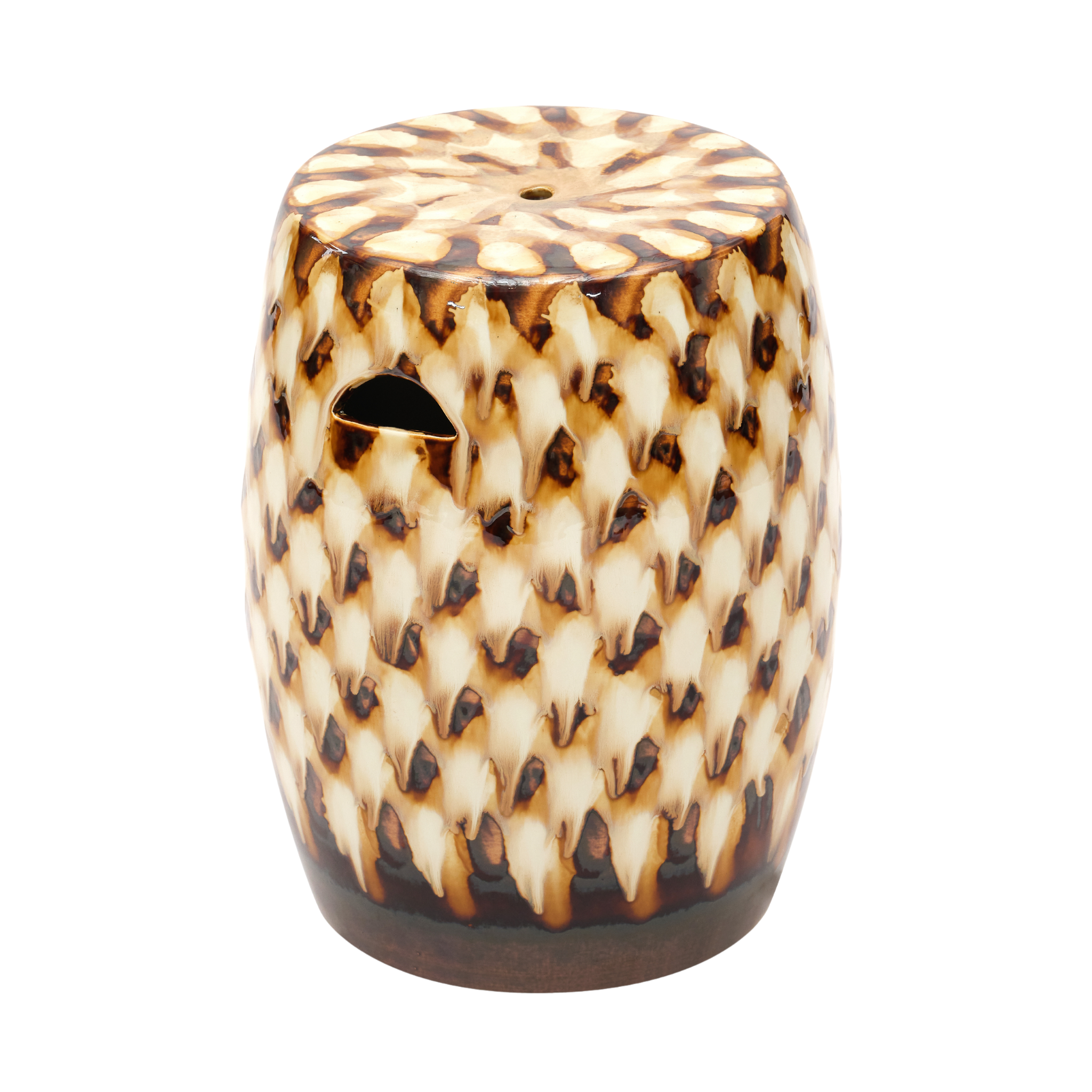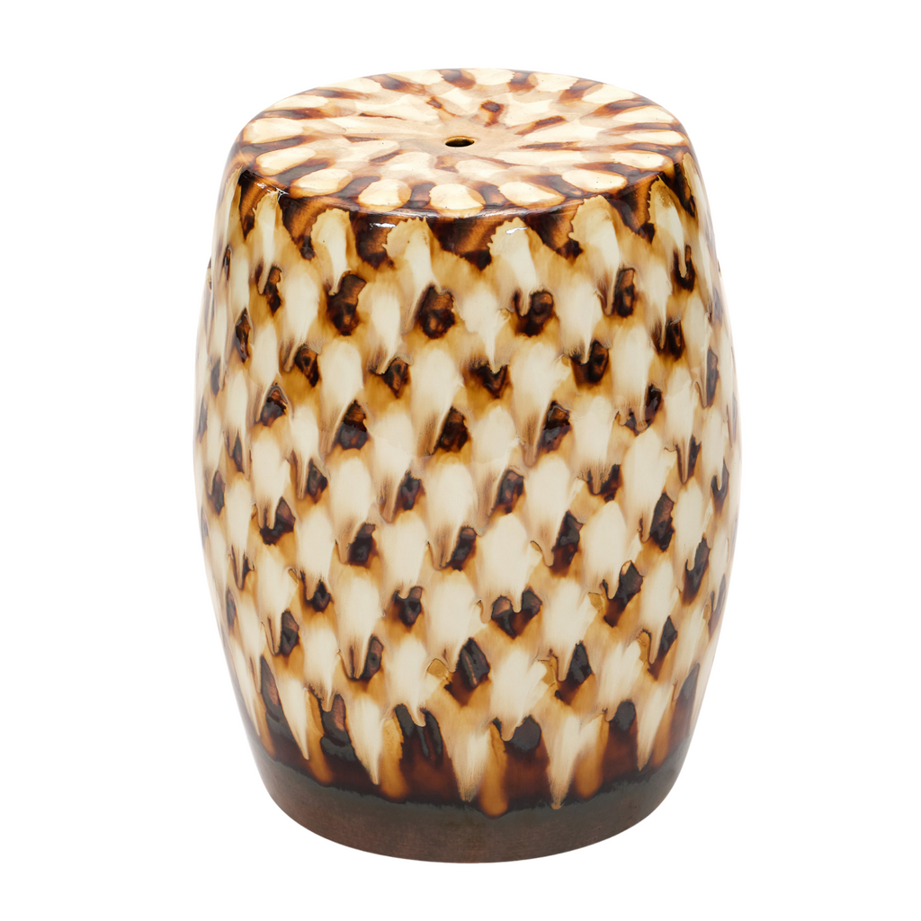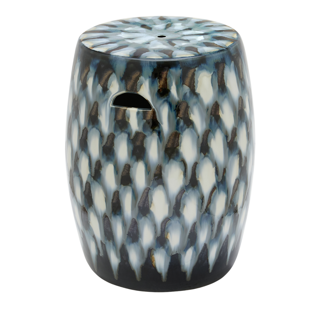 We've taken our best-selling pheasant feather glaze and applied it to our new barrel-form garden stool. A perfect way to bring this favorite glaze into your home.