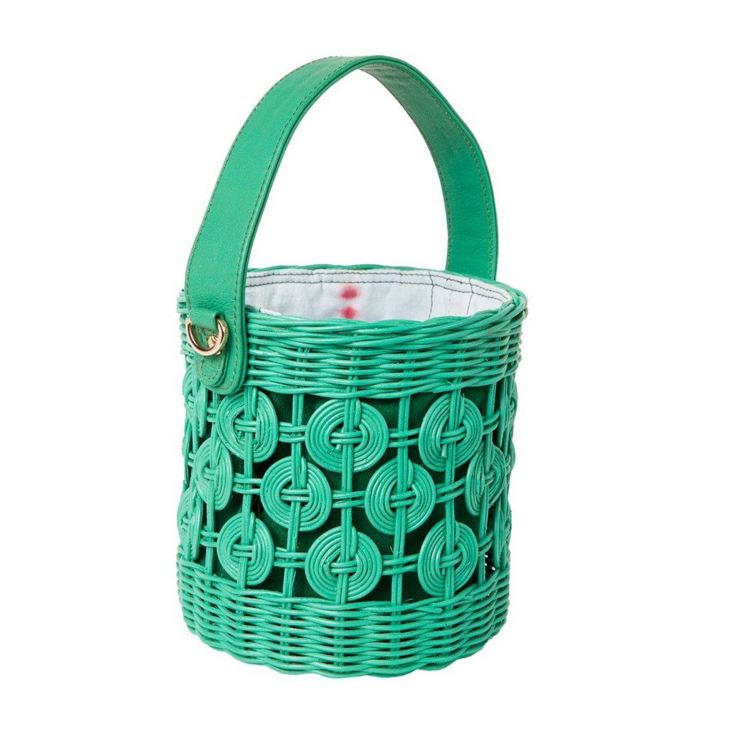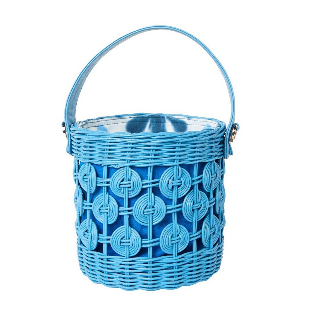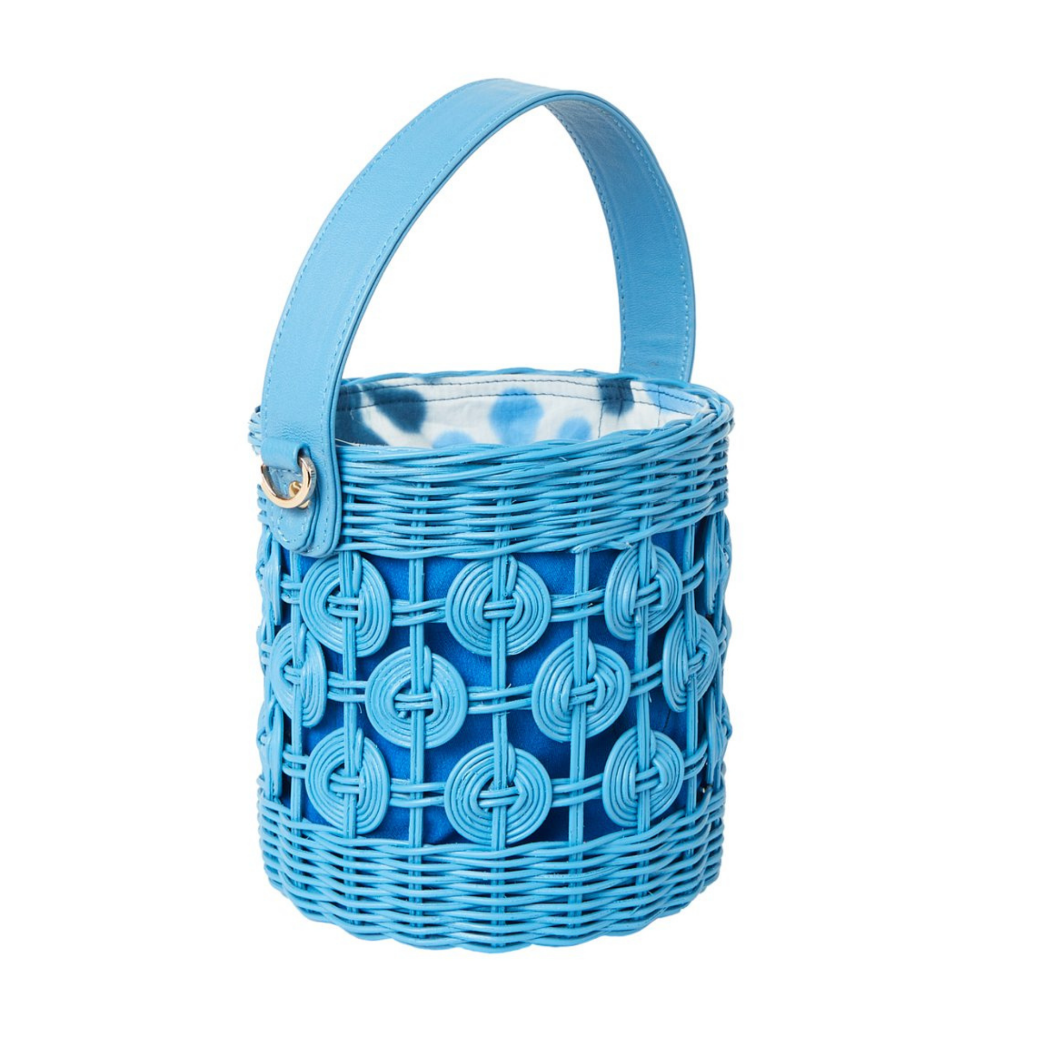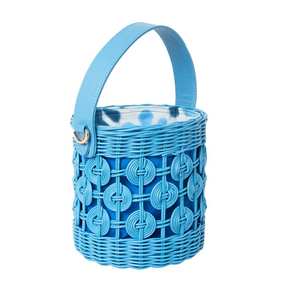 Add a pop of color to your summer accessories collection with this fun and fabulous bag! This chic wicker bucket bag features a leather handle and removable crossbody strap.
