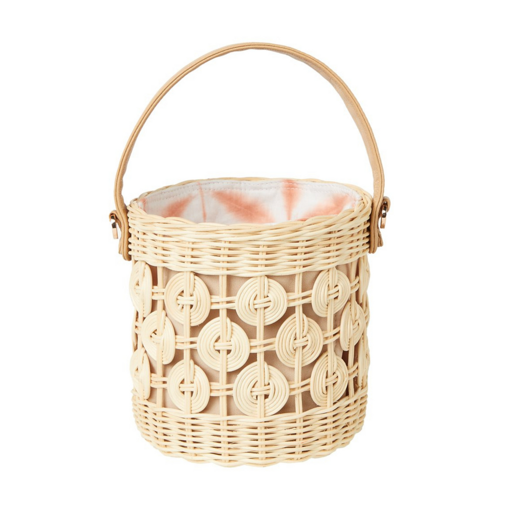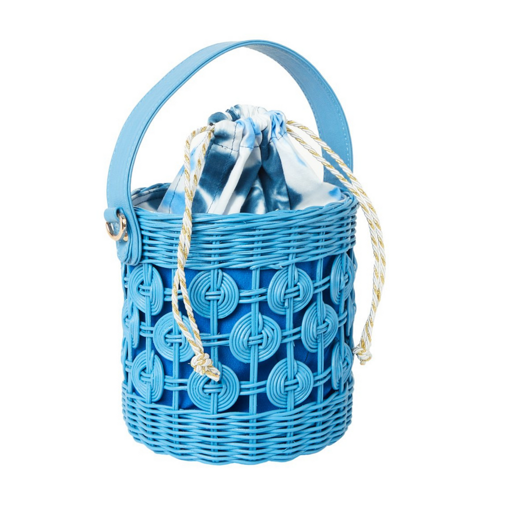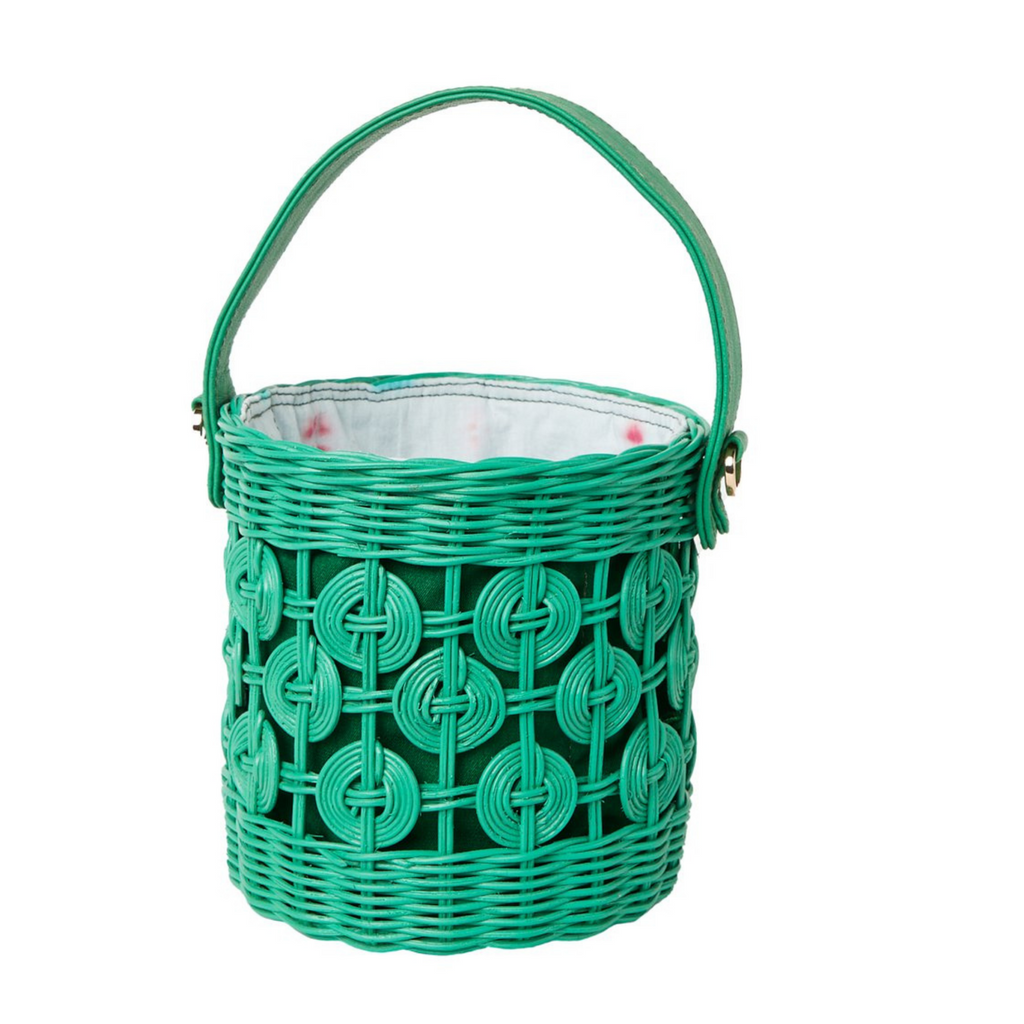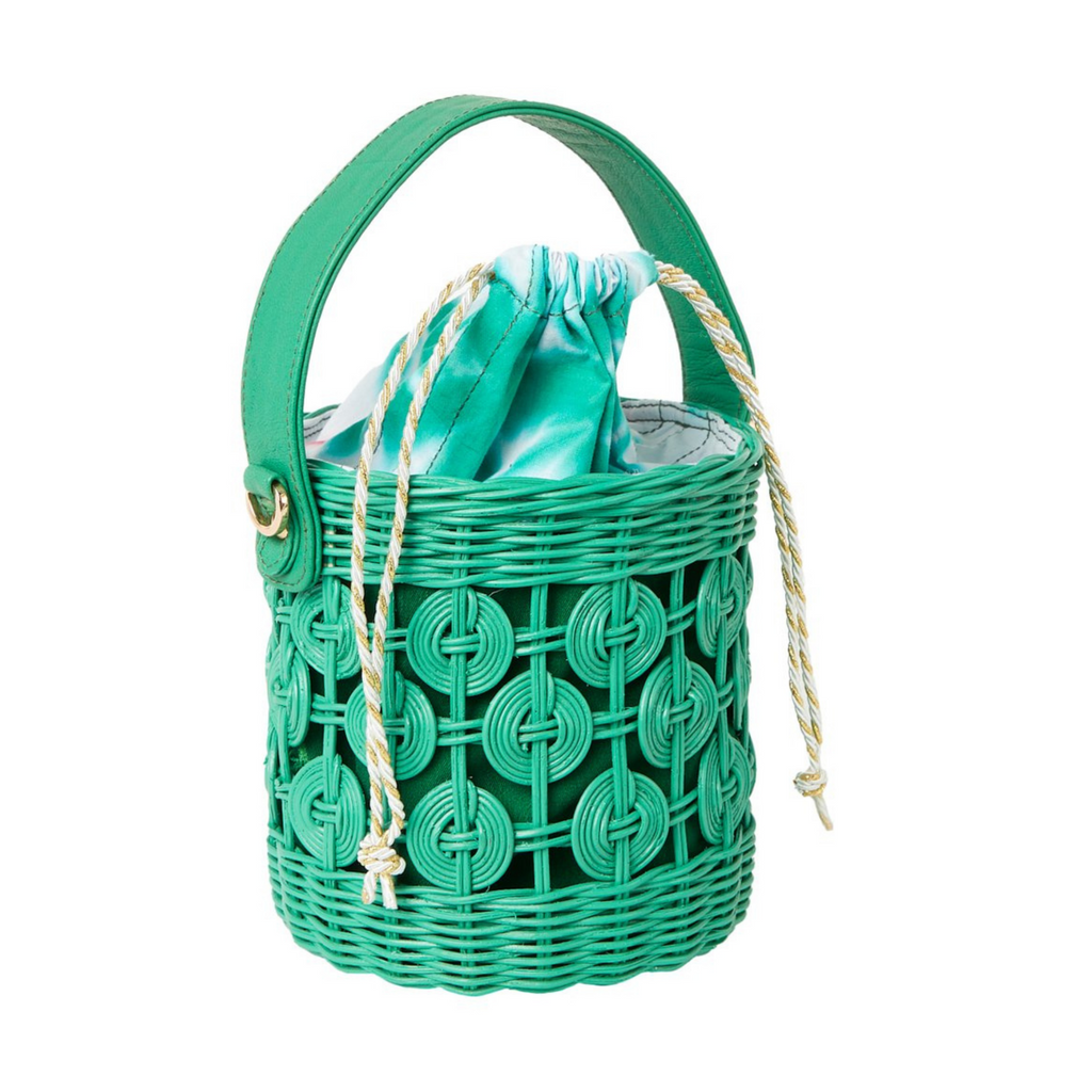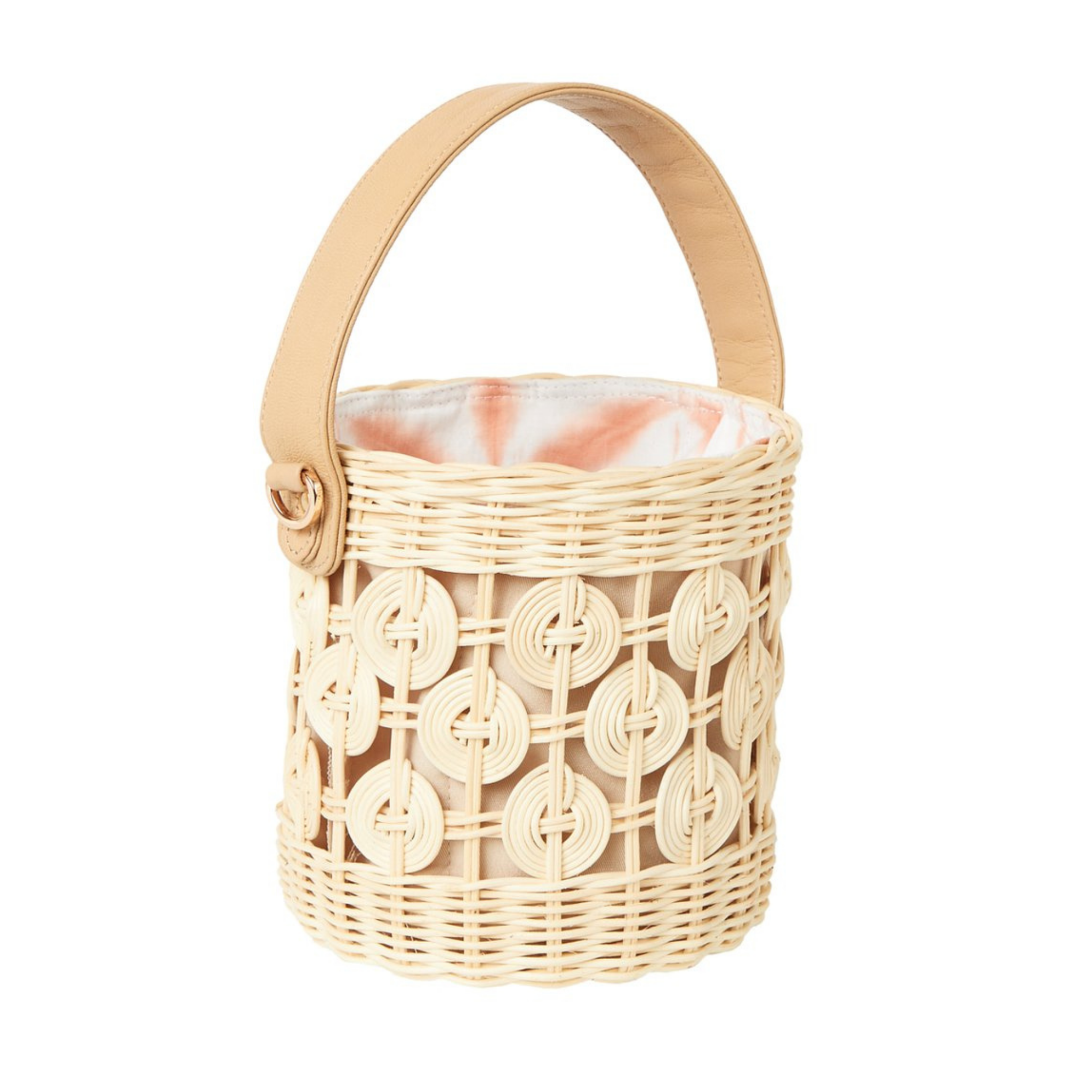Add a pop of color to your summer accessories collection with this fun and fabulous bag! This chic wicker bucket bag features a leather handle and removable crossbody strap.