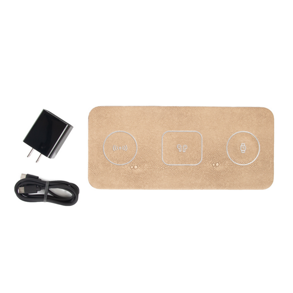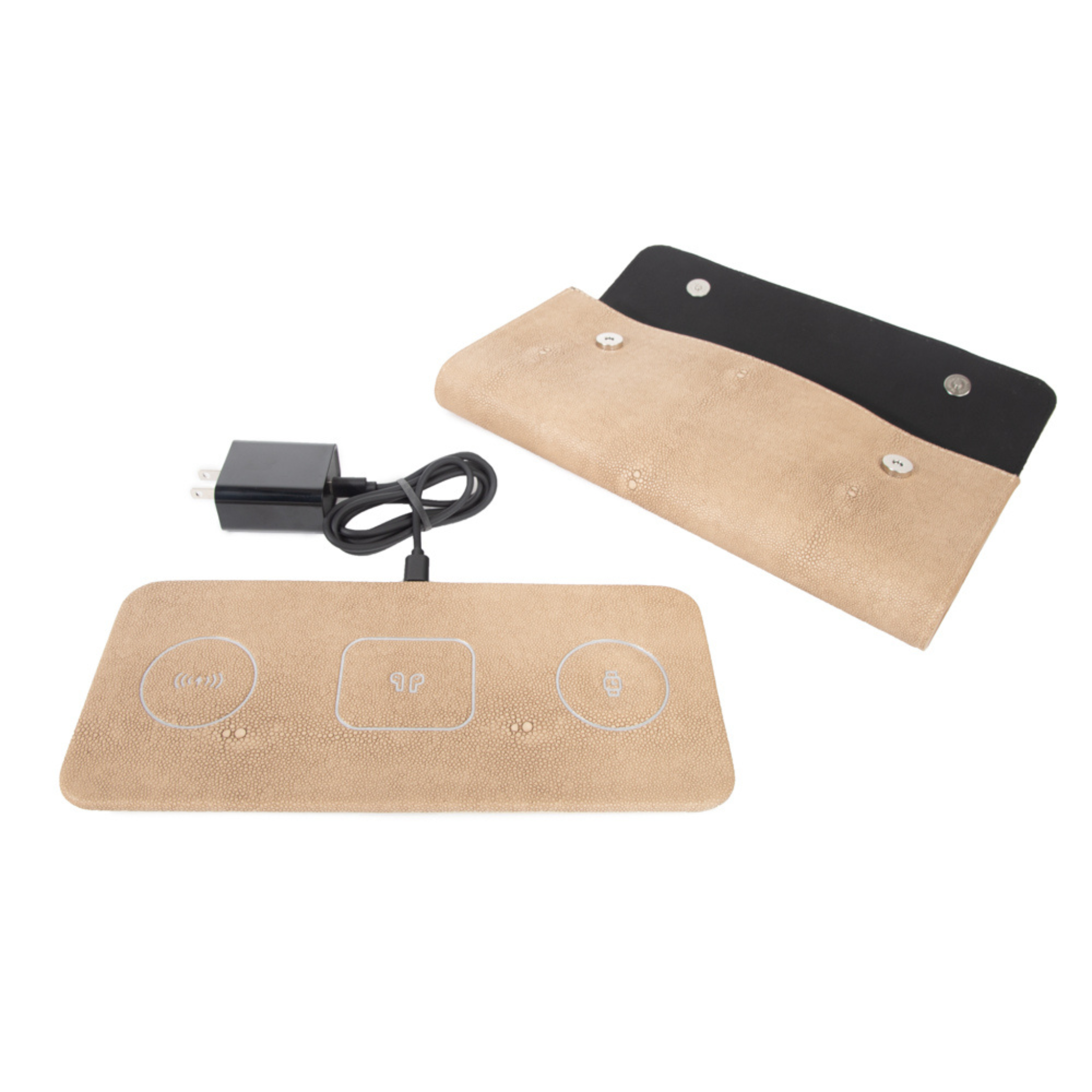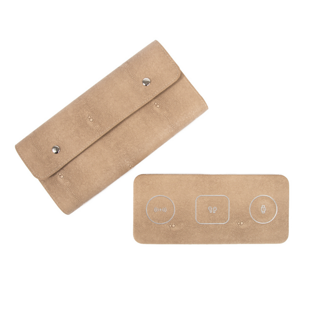 • 3 IN 1 WIRELESS CHARGING STATION - Multi-device wireless charging for your phone, watch, and headphones. Tired of cords? Never worry about multiple cables with this sleek charging pad in a beautiful Vegan Leather cover. Stay charged while a home, office, or traveling.