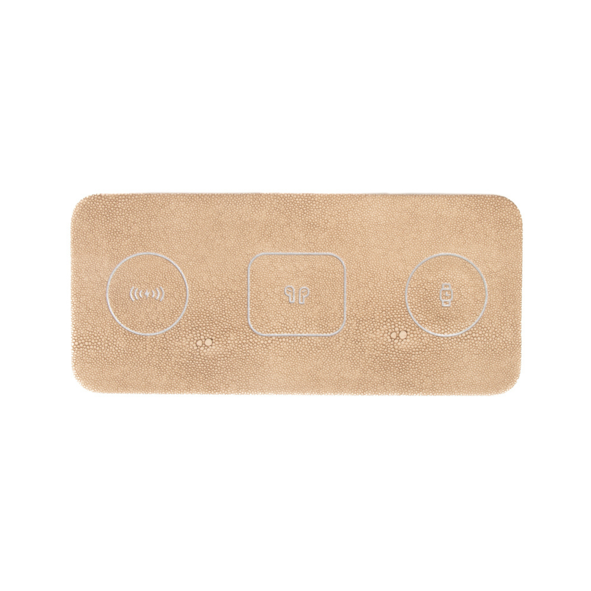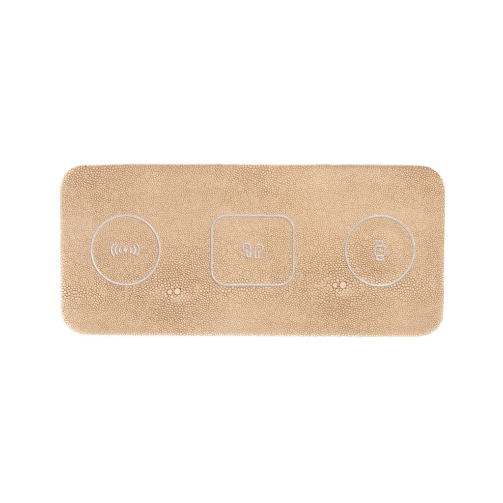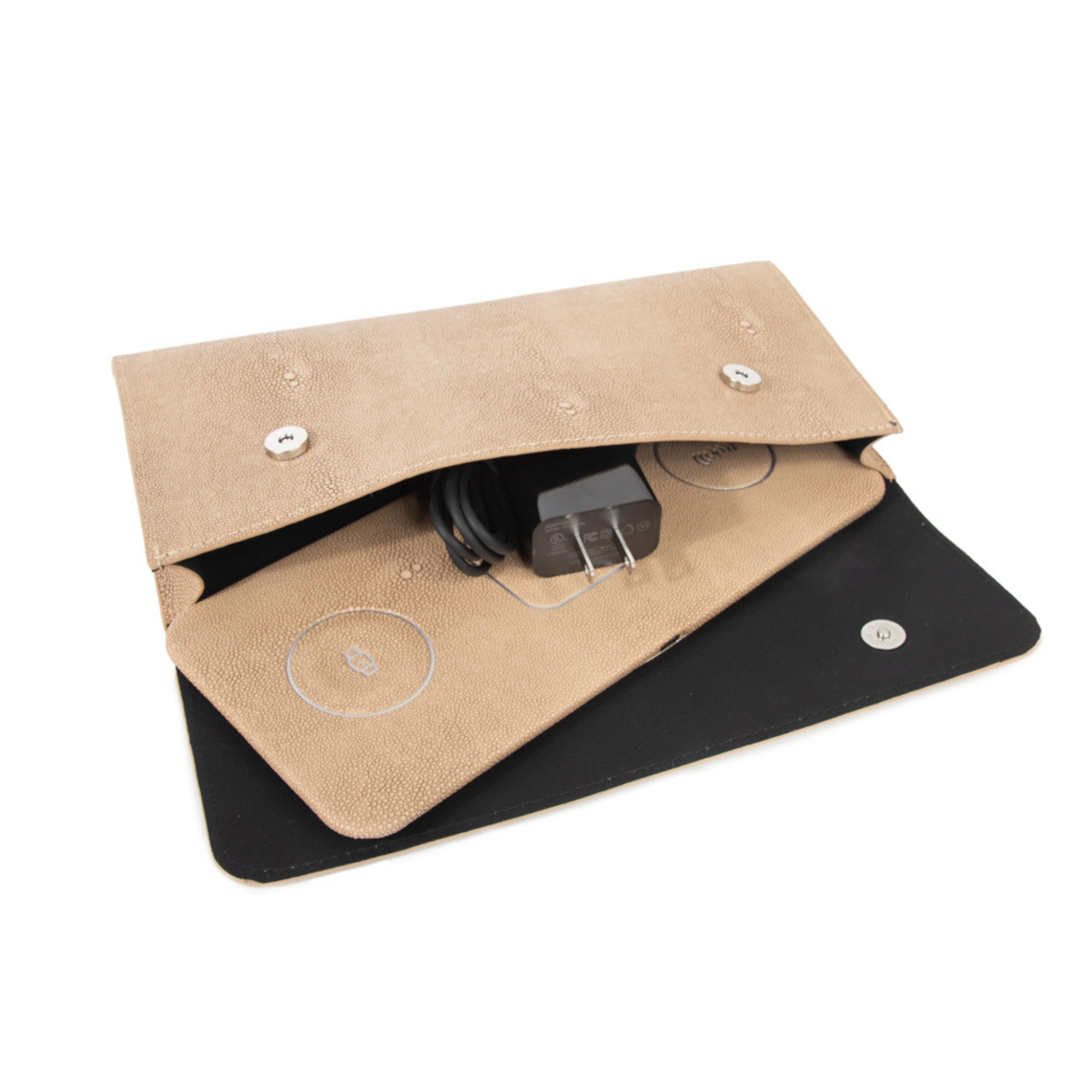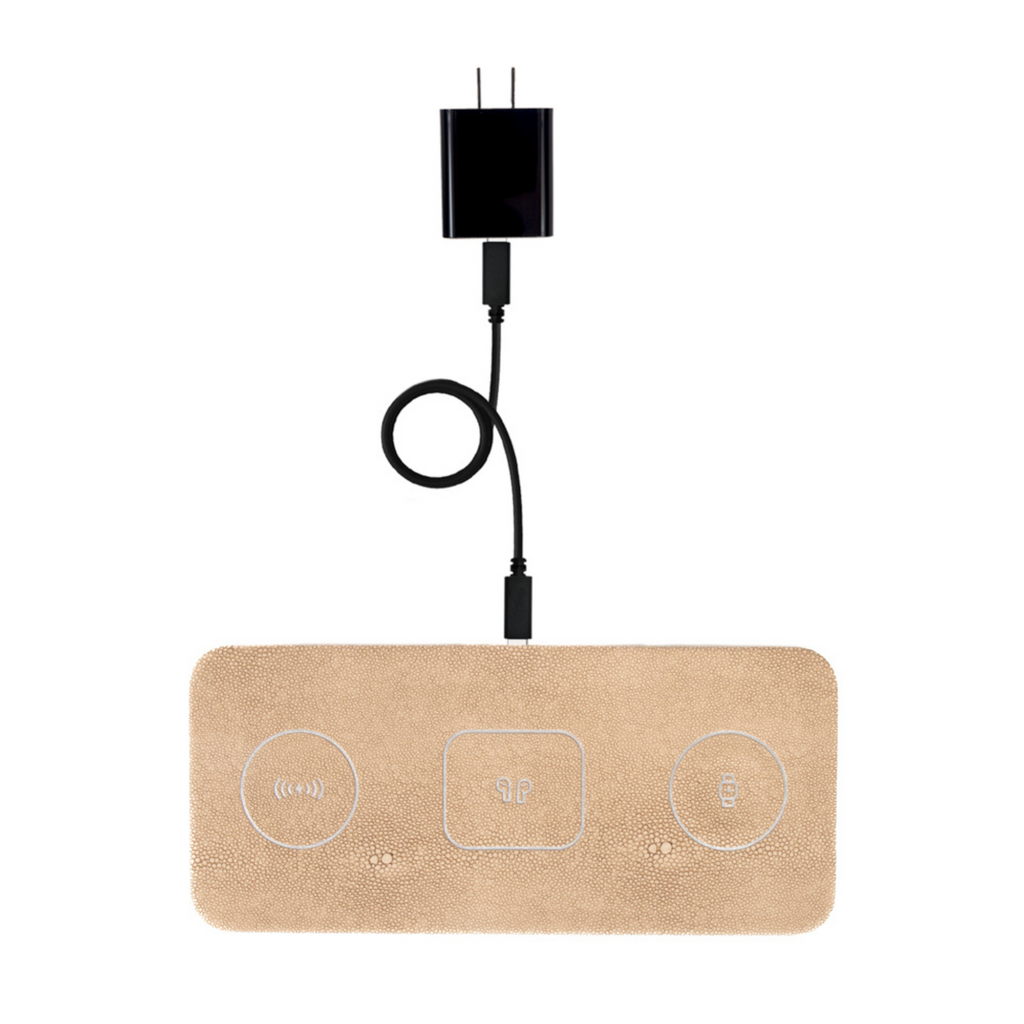 • PORTABLE TRAVEL DESIGN - Includes Vegan Leather Multi-Device Charging Pad, Vegan Leather Travel Pouch, USB-C 20W (Fast) PD Wall Adapter, and 1M / 39” USB-C to USB-C Charging Cable. Choose from a variety of beautiful vegan stingray colors: Yellow, Tan, White, Blue, Charcoal, Teal, Fuchsia, and Black