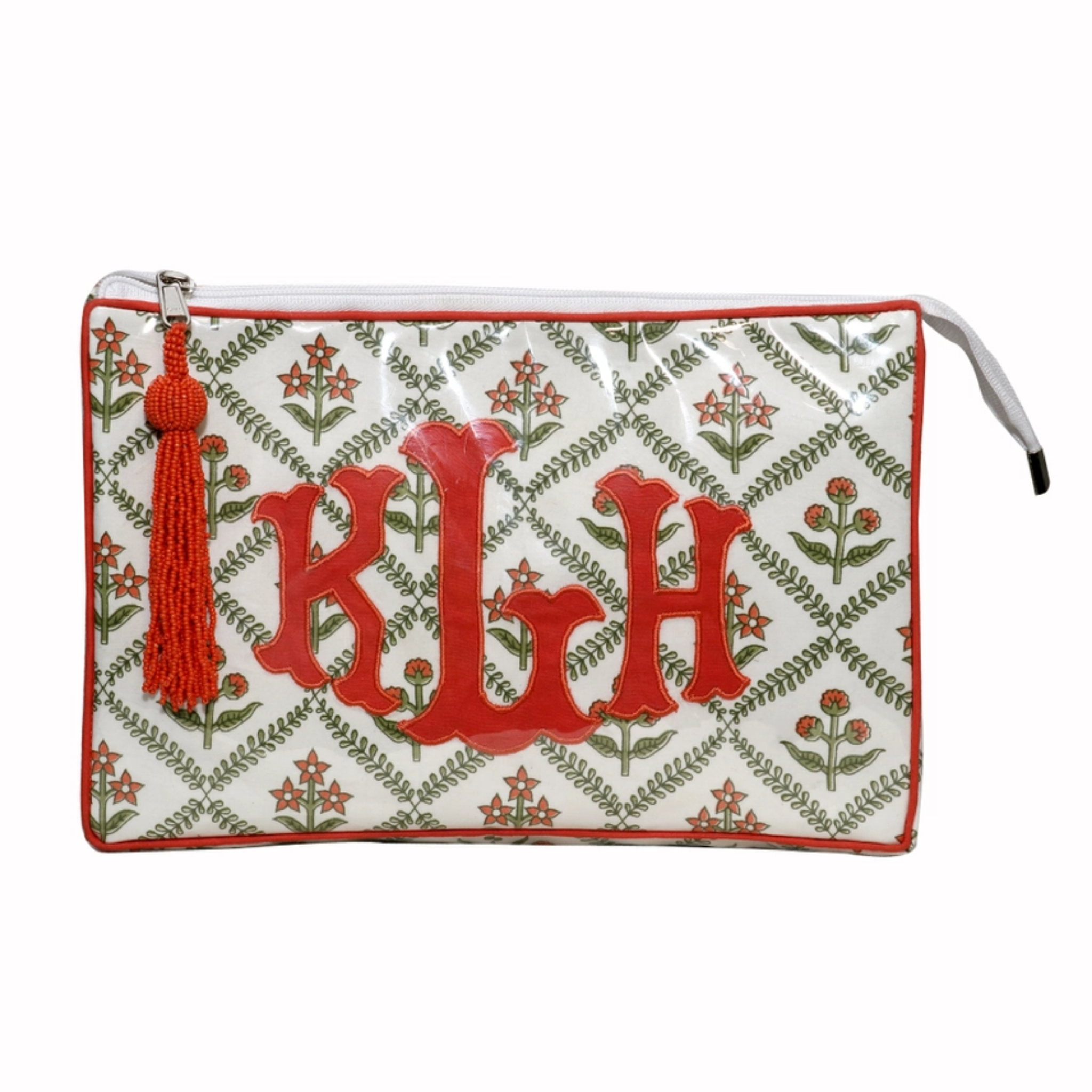 This versatile monogrammable pouch features a zipper. This item is not stocked and is custom-made to order. It may not be returned. Click images for greater detail.