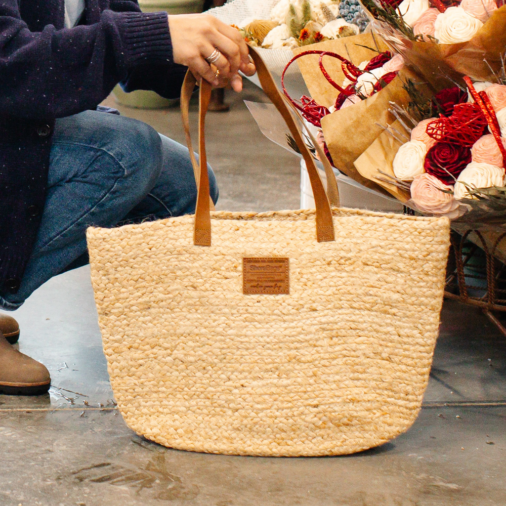 Jute is a sustainable material that's both renewable and remarkably strong. We created this large tote to be a blend of natural beauty, warmth, and a relaxed lifestyle.