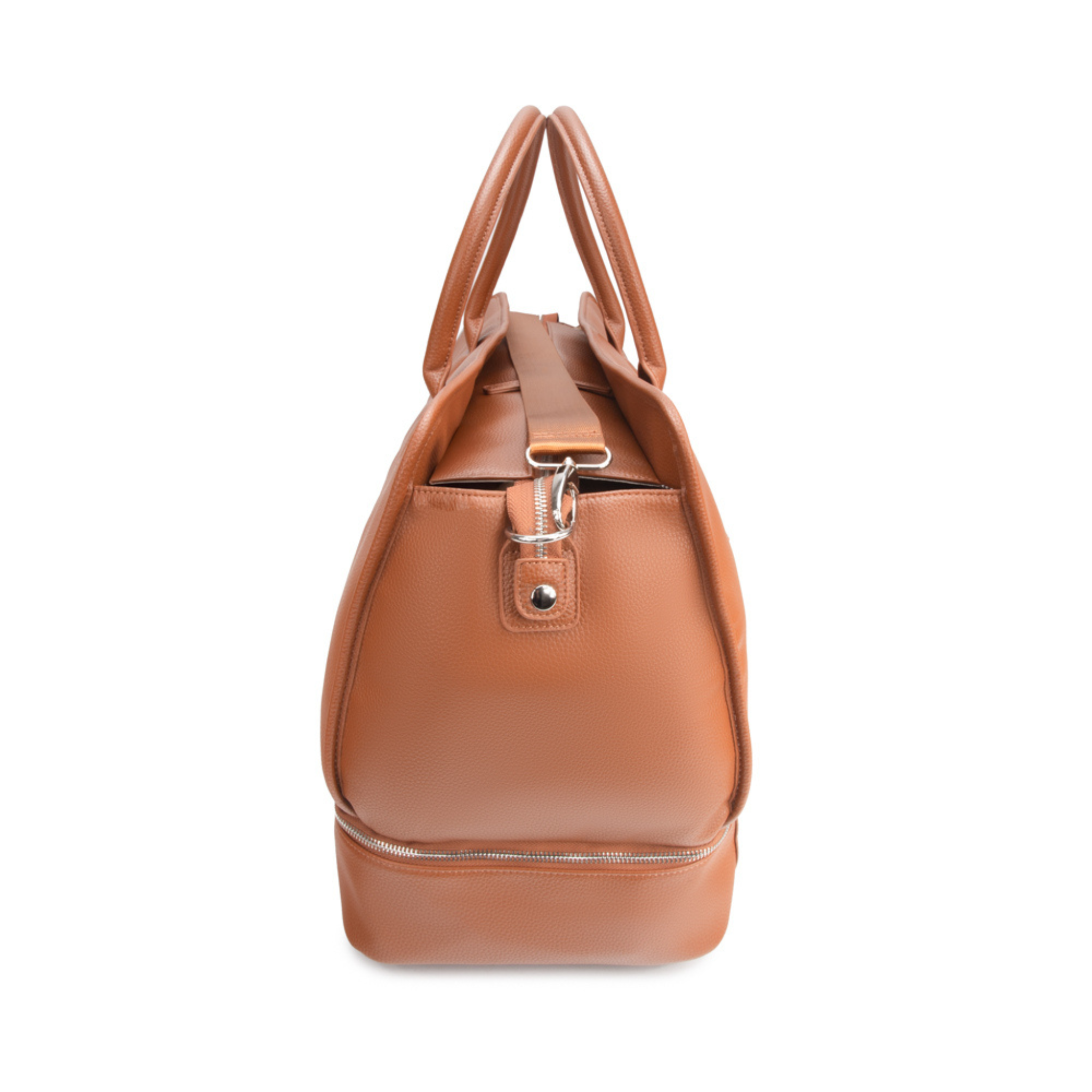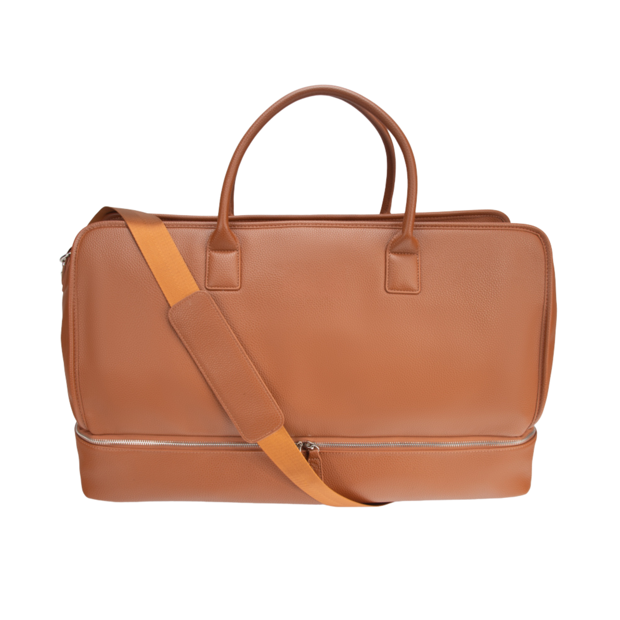 Looking for a stylish and functional bag? Check out the Brett Weekender Bag! Made from high-quality vegan leather, it's spacious enough for all your weekend essentials and includes a lower compartment with vents to keep shoes separate. Inside, you'll find a zipper pocket and two open pockets for your phone, wallet, and keys. No more rummaging for your essentials! It also features an adjustable, detachable shoulder strap with a shoulder pad for comfort. The stylish striped interior lining adds sophistication, making it perfect for any occasion. Its versatility and functionality make it a must-have for anyone on the go!