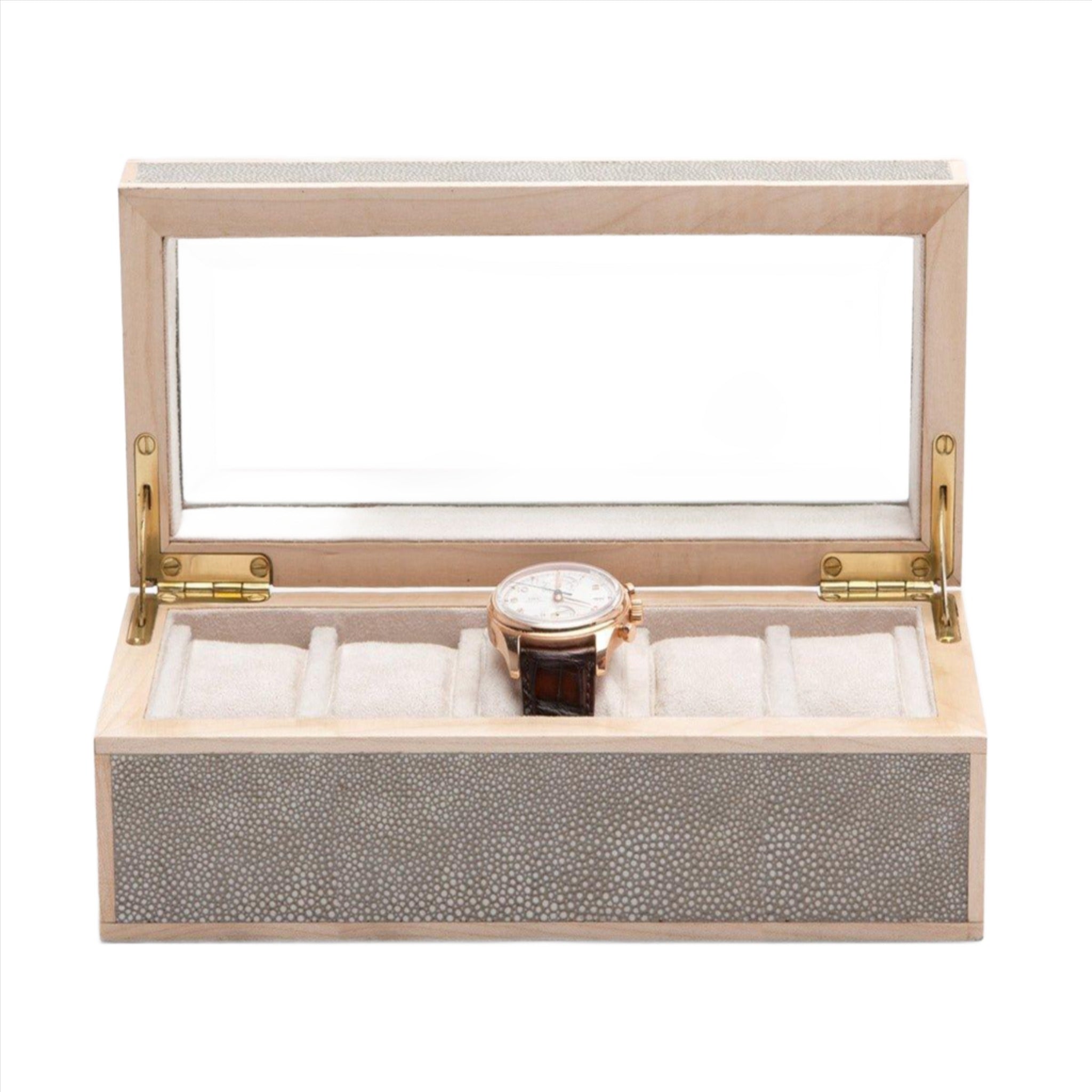 Elmbridge 5-Watch Box in Sand or Blanc Faux Shagreen