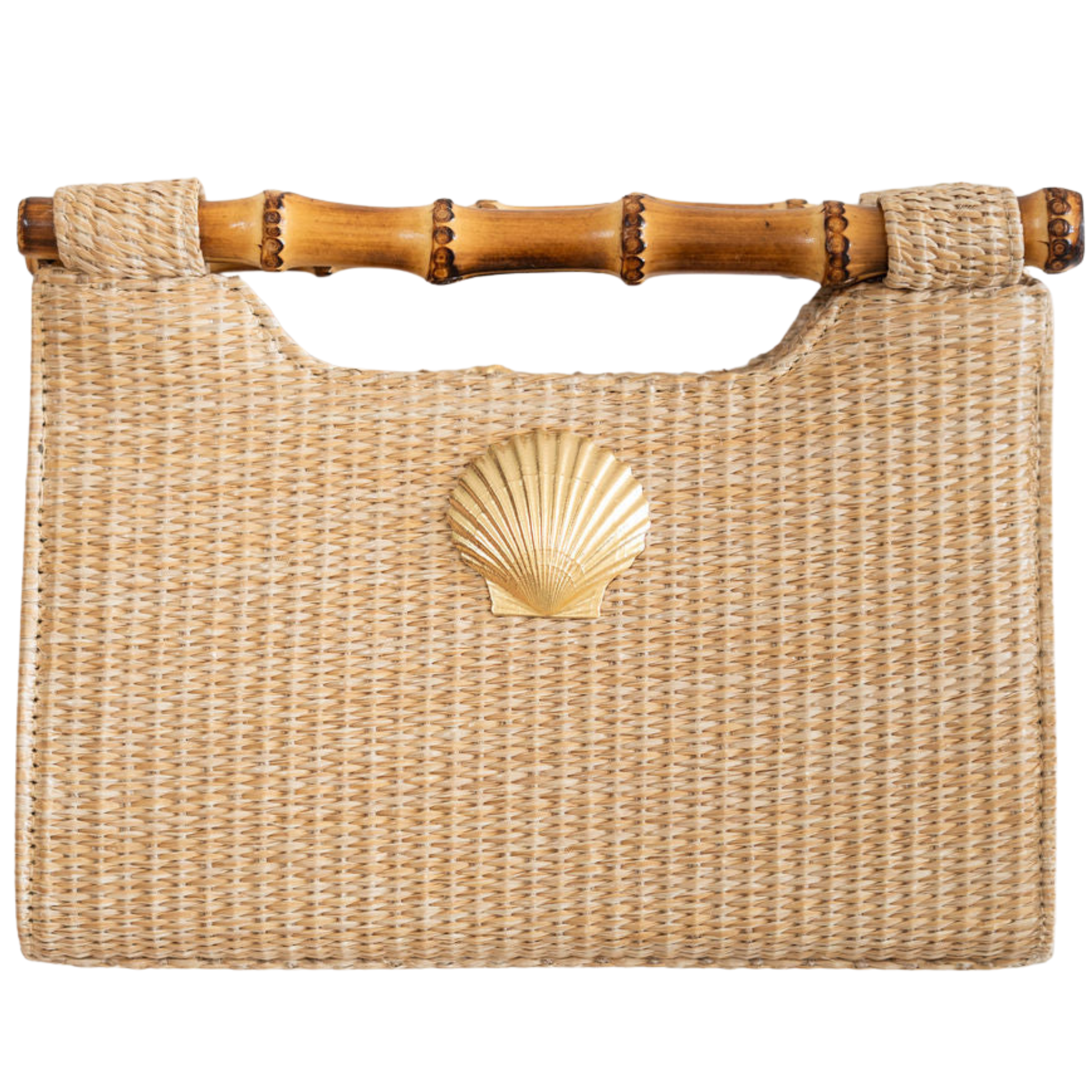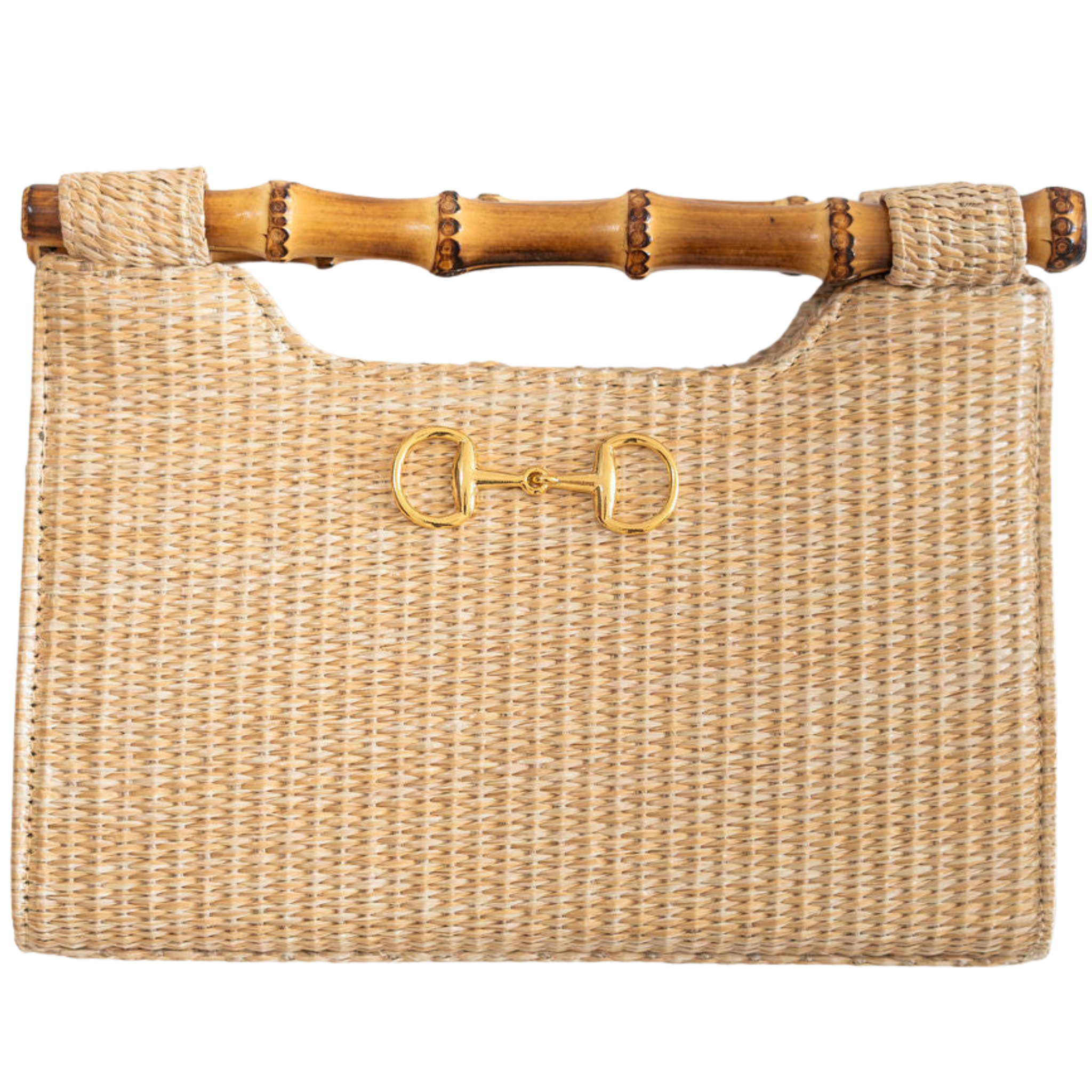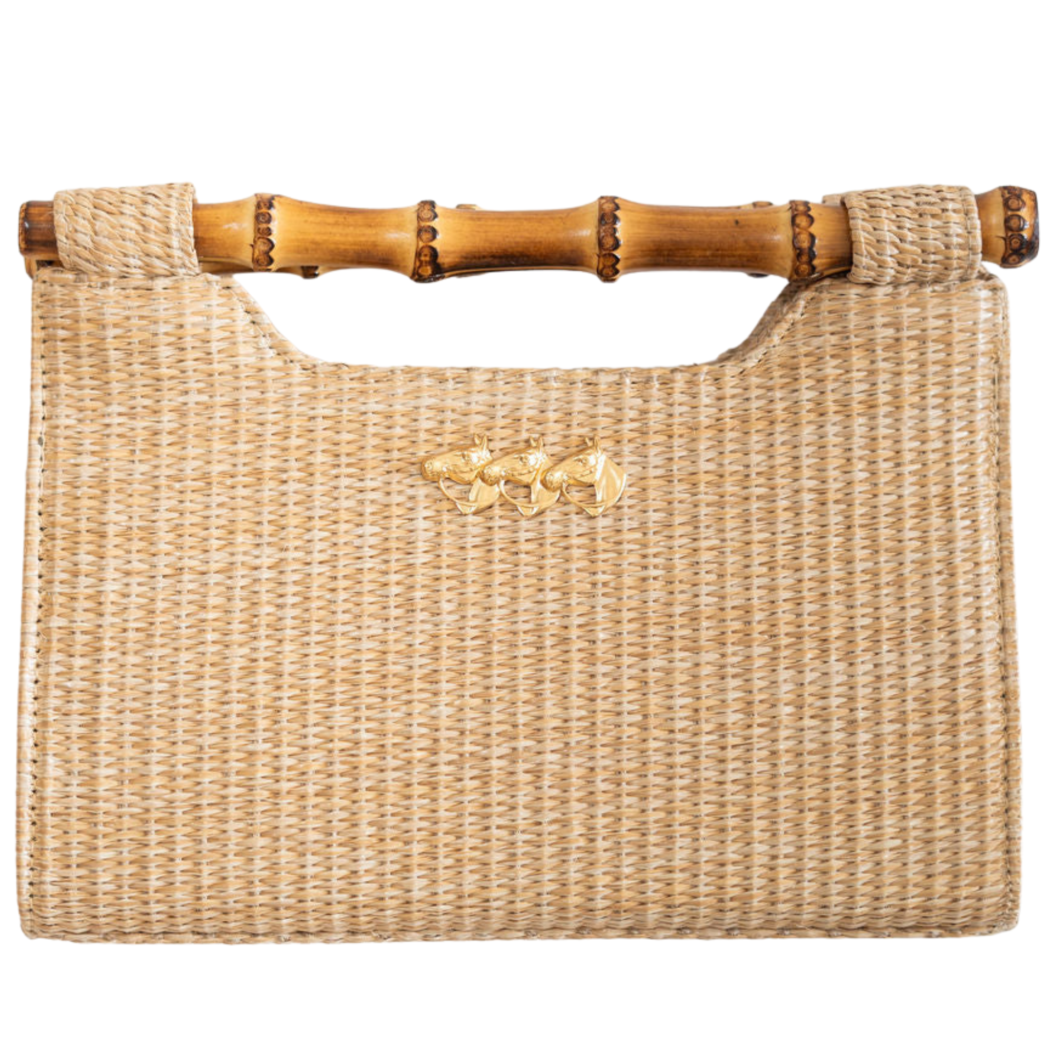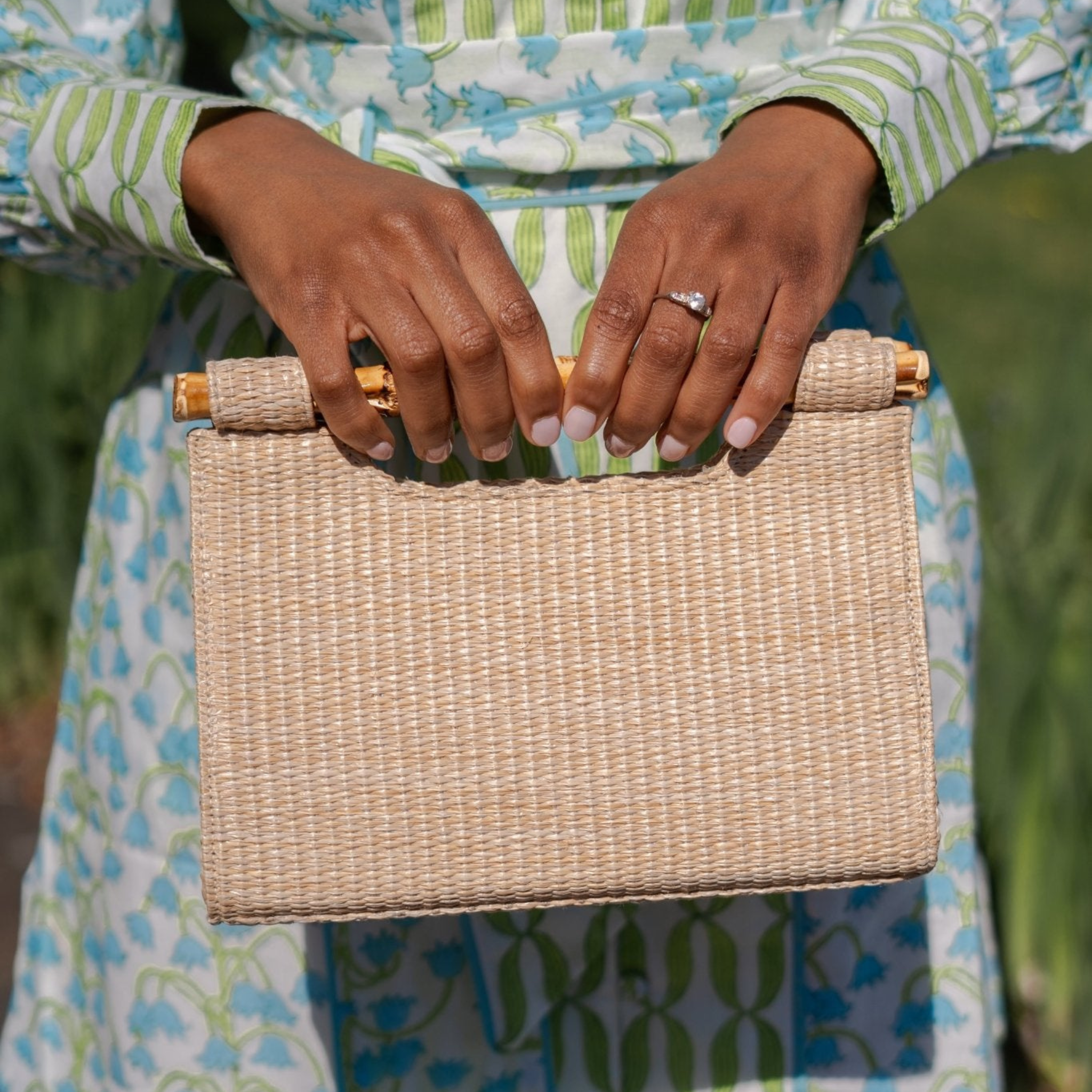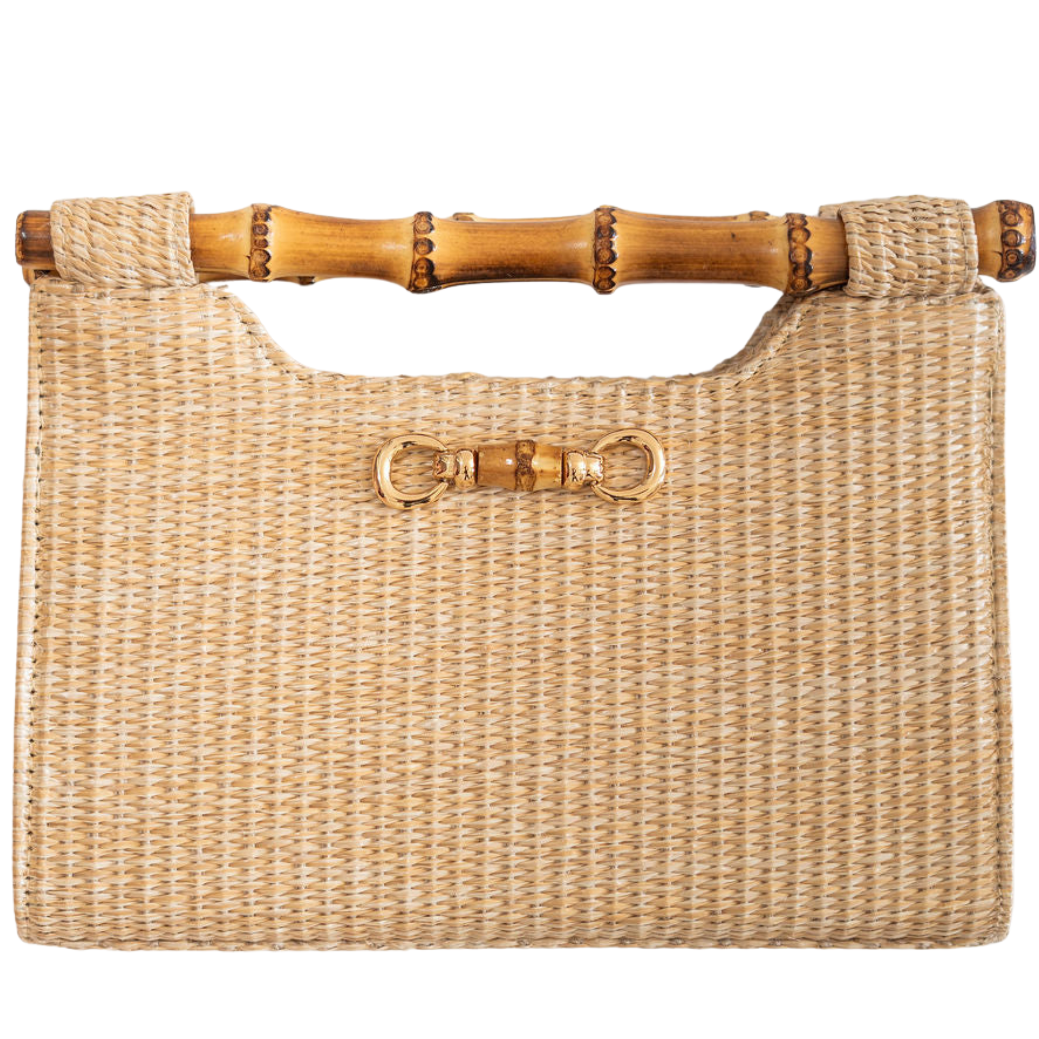 Mary Straw Bamboo Handle Clutch - Charm Options Available