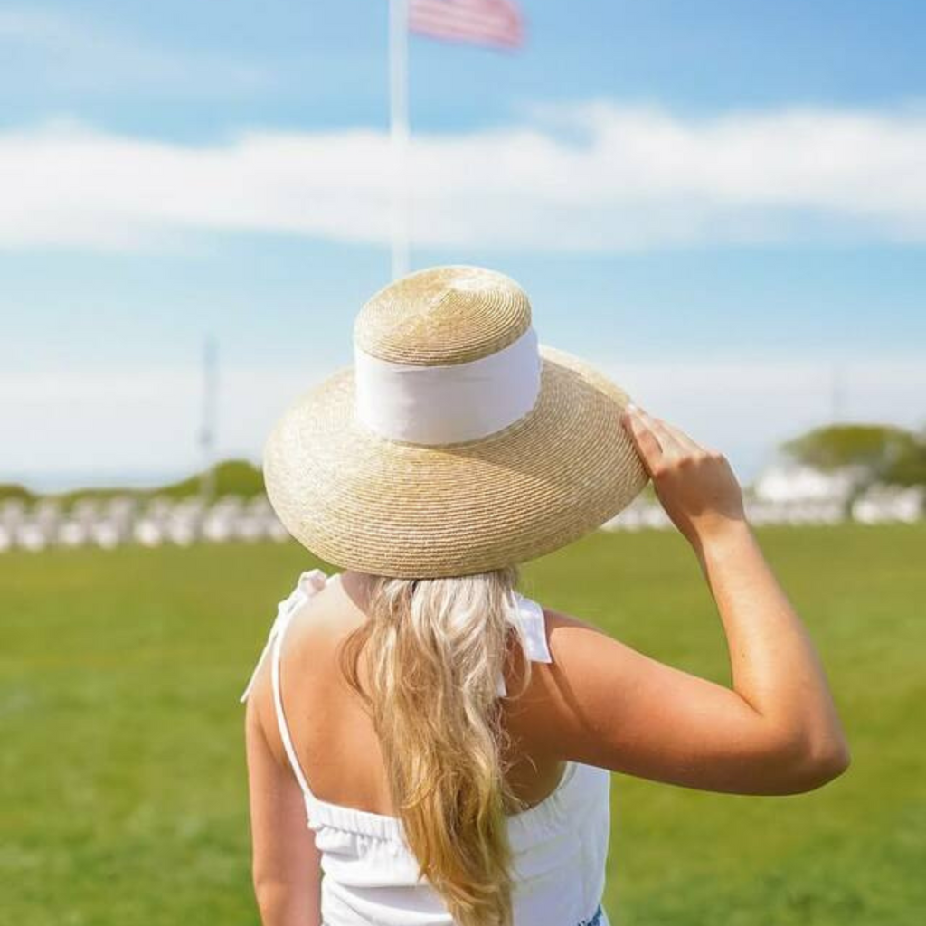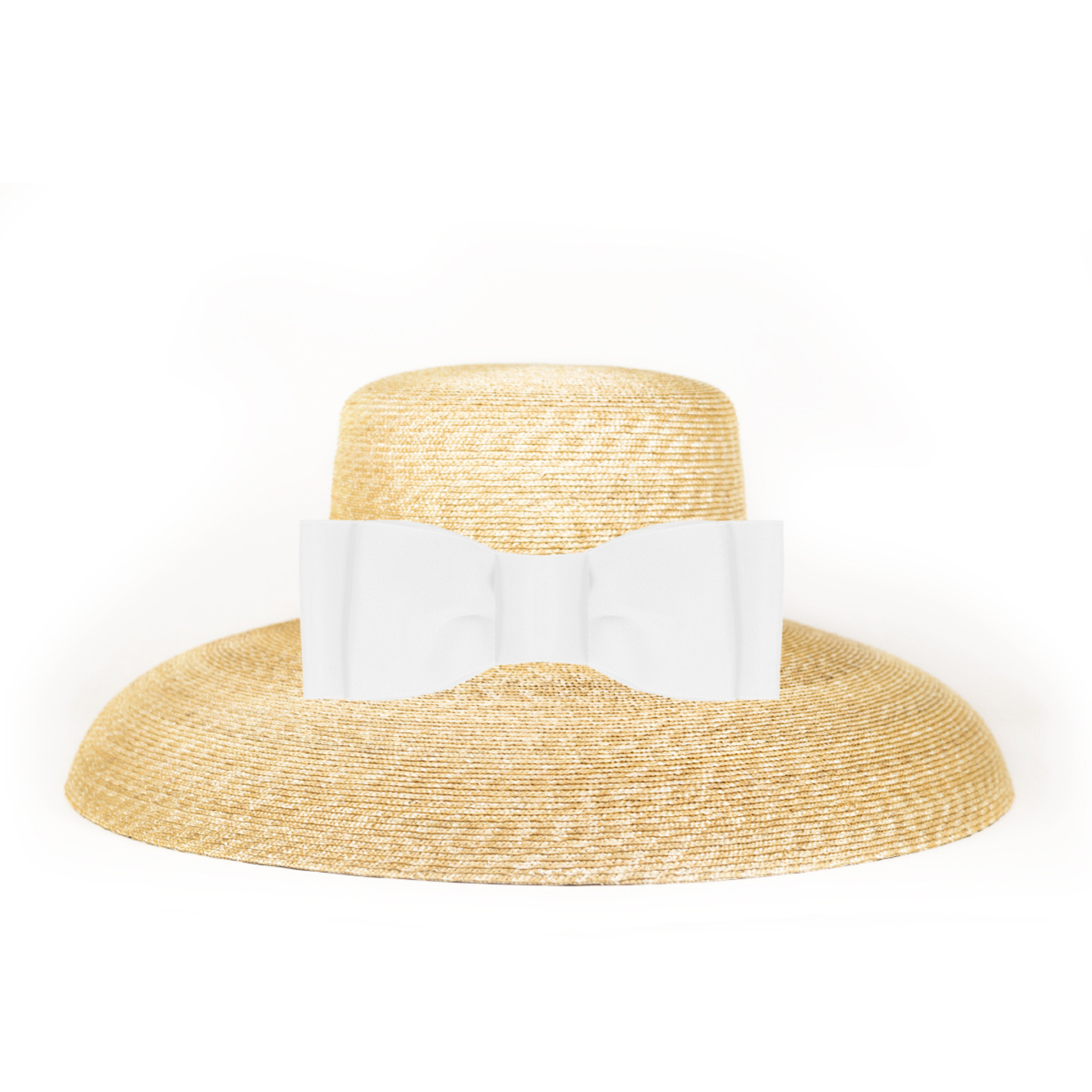 Flaunt your unique style with this straw hat with flat bow and stylish adornment. Inspired by summer weekends in Nantucket, this sun hat features a tall crown, wide downturned brim, and elevated look. Click images for greater detail.