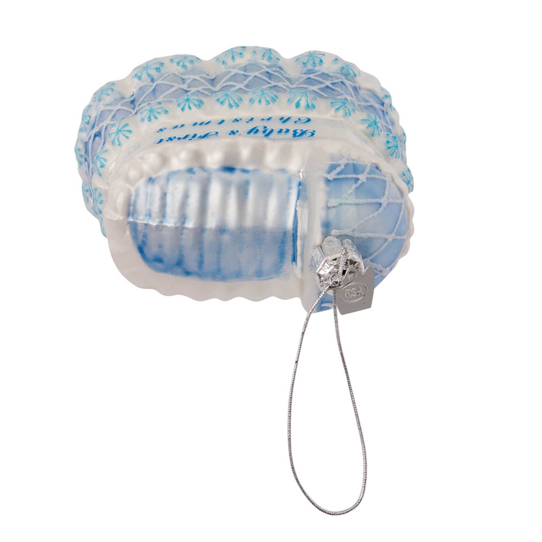Celebrate your baby boy’s first Christmas with this Noble Gems™ baby boy ornaments boxed set by Kurt Adler! These ornaments feature classic baby symbols including a pair of booties, a rocking horse, a rattle, and a bassinet in a delicate blue and white color scheme. Perfect for celebrating your baby boy's first Christmas.