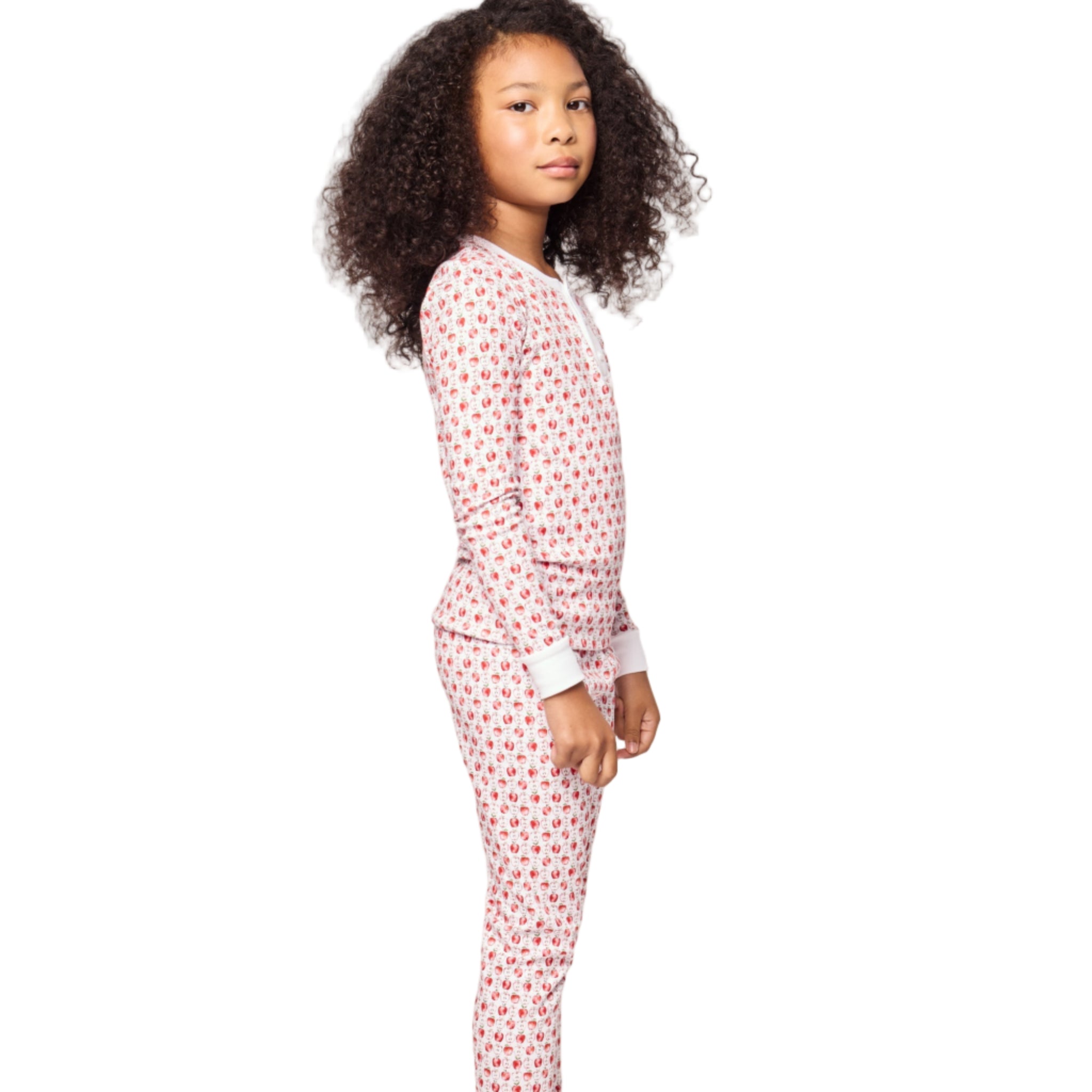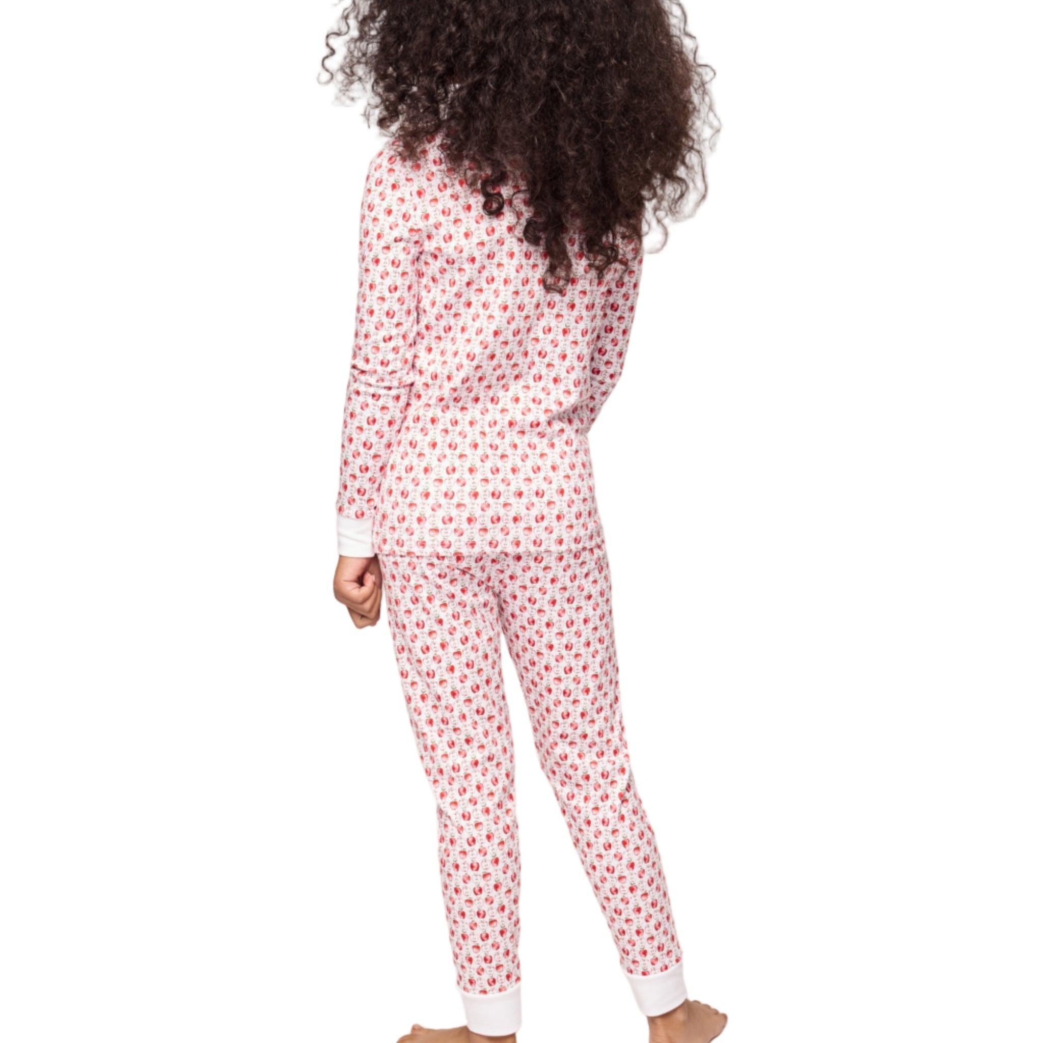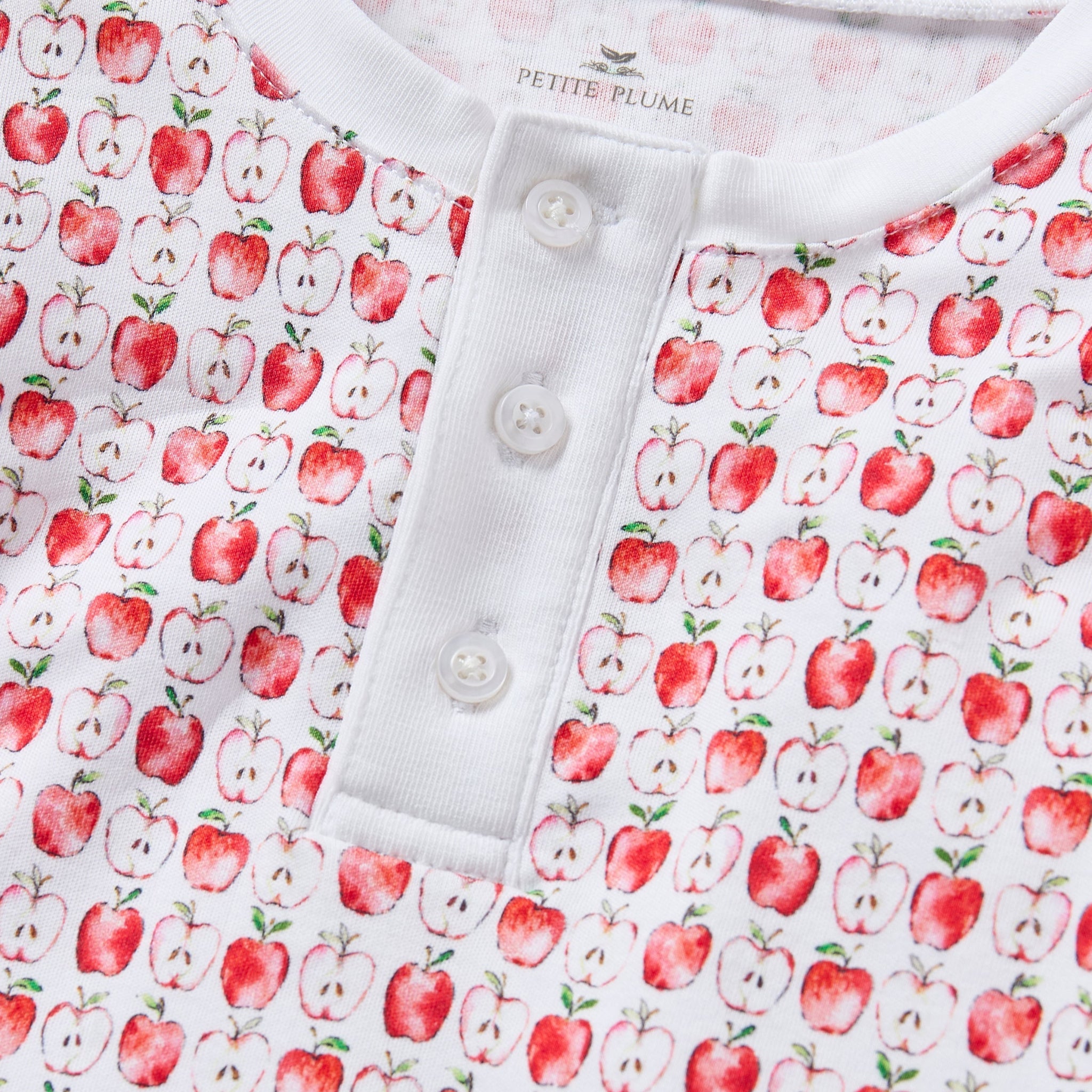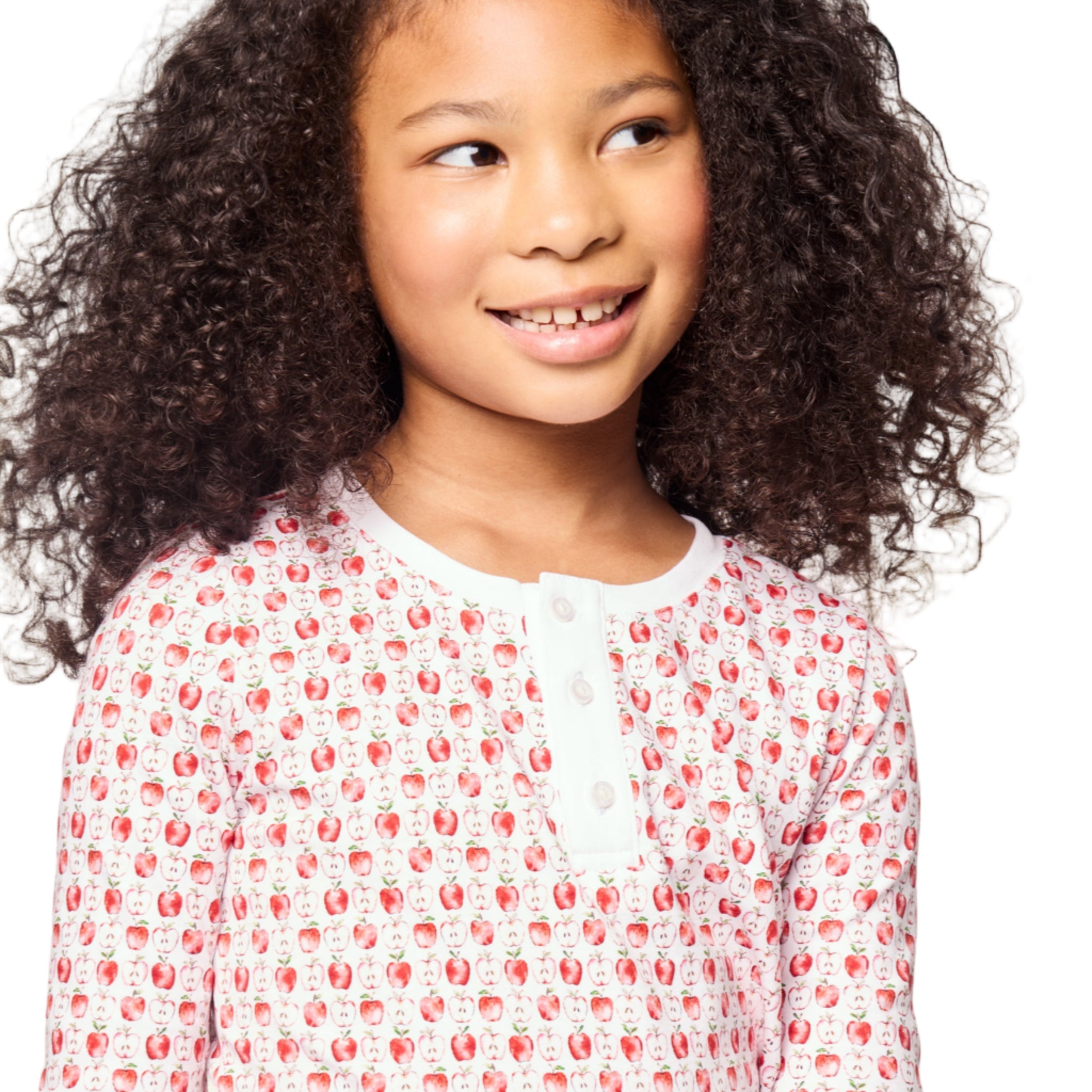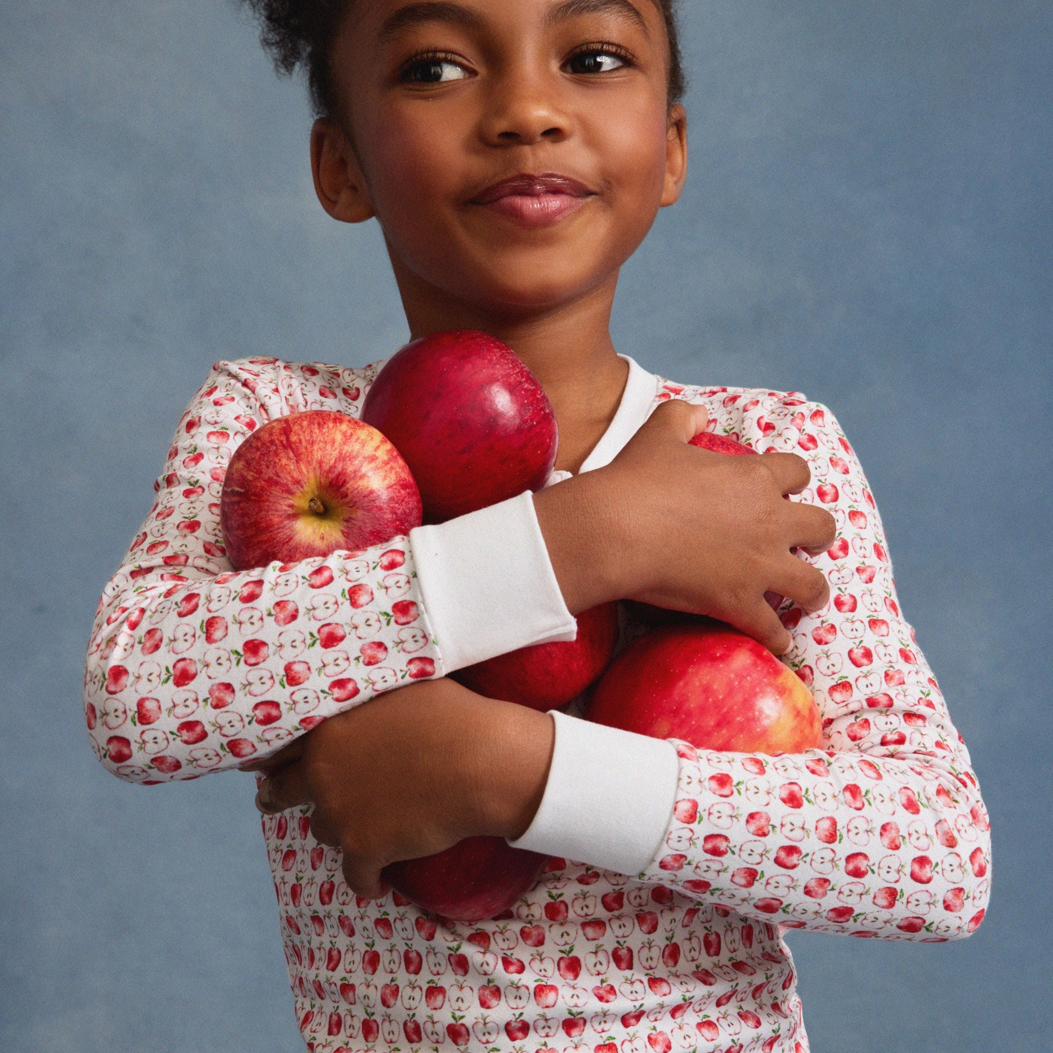 Perfect for a lunchbox. Perfect for pajamas. This hand-drawn apple illustration is always good luck during a study session. The 100% Pima Cotton Long Sleeve Top and Pant Set is designed to ensure a secure and snug fit, allowing freedom of movement for active littles while providing a stylish silhouette for cooler months. The high-quality Pima Cotton retains its softness, shape, and vibrant colors even after multiple washes, ensuring it remains a favorite in your child's wardrobe. In our luxurious sleepwear, your little one will be tucked in love and off to dreamland.