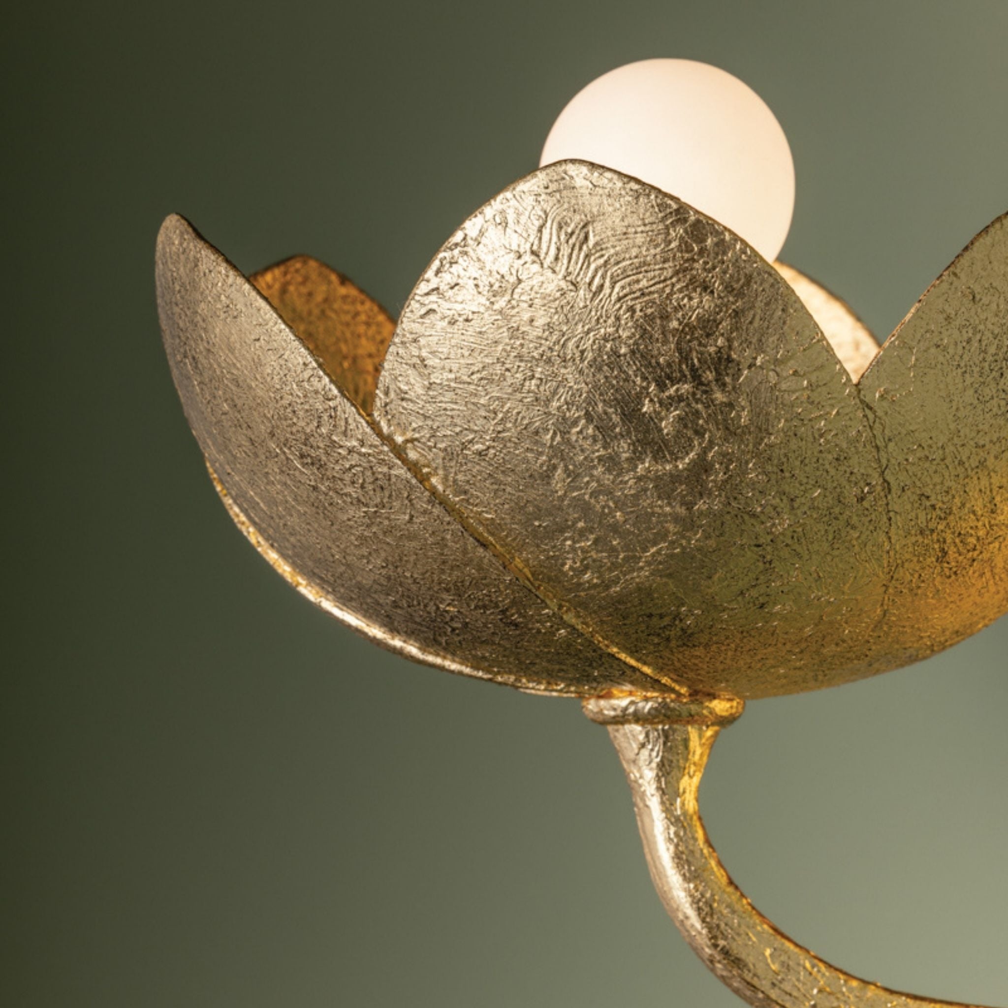 A fresh take on a botanic motif, the Arcata family features sculptural, romantic silhouettes with highly tactile, hand-worked finishes. The gentle sweeping arms transition from square to round, creating a dynamic look that complements the floral forms.