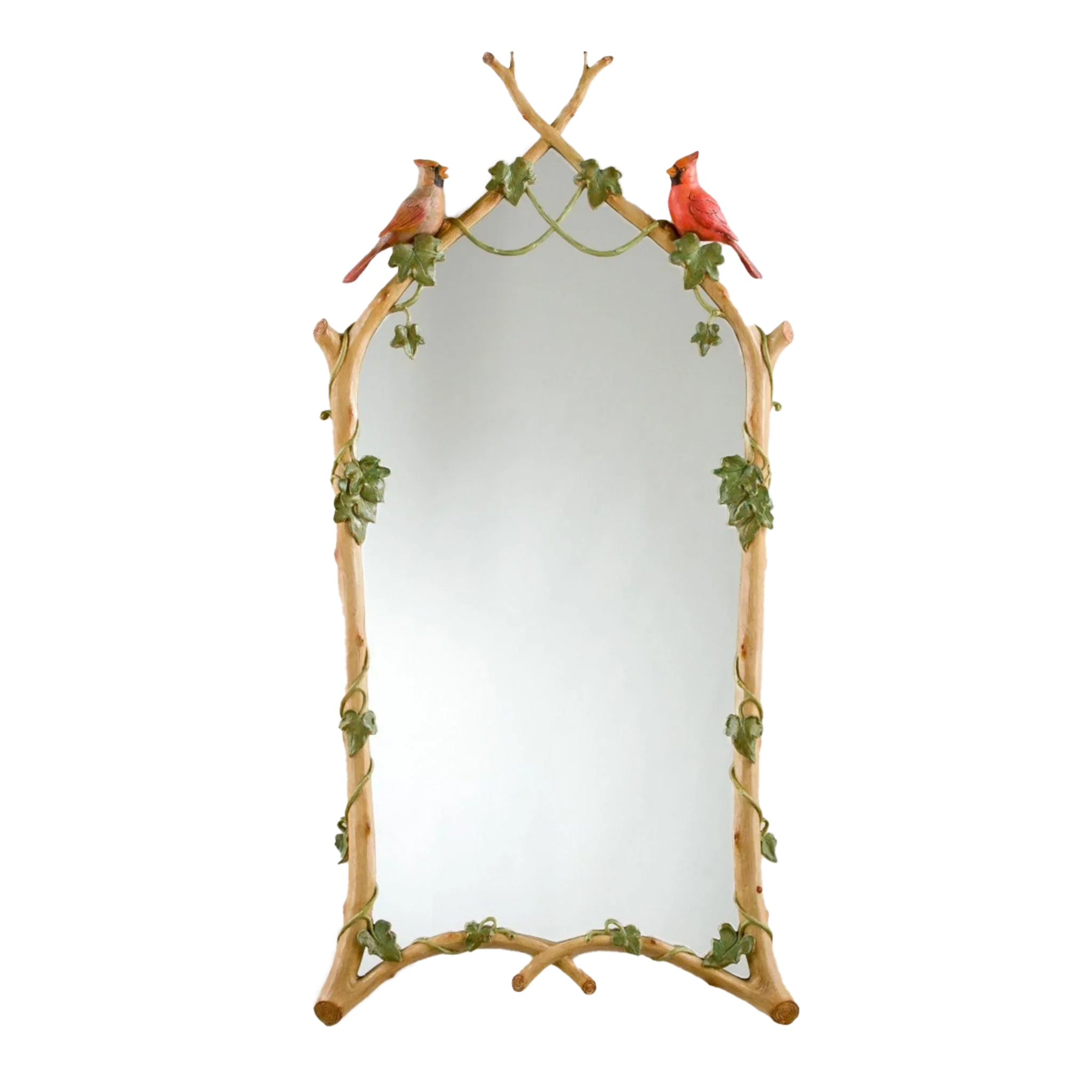 Hand-Painted Twig and Ivy with Cardinals Wall Mirror