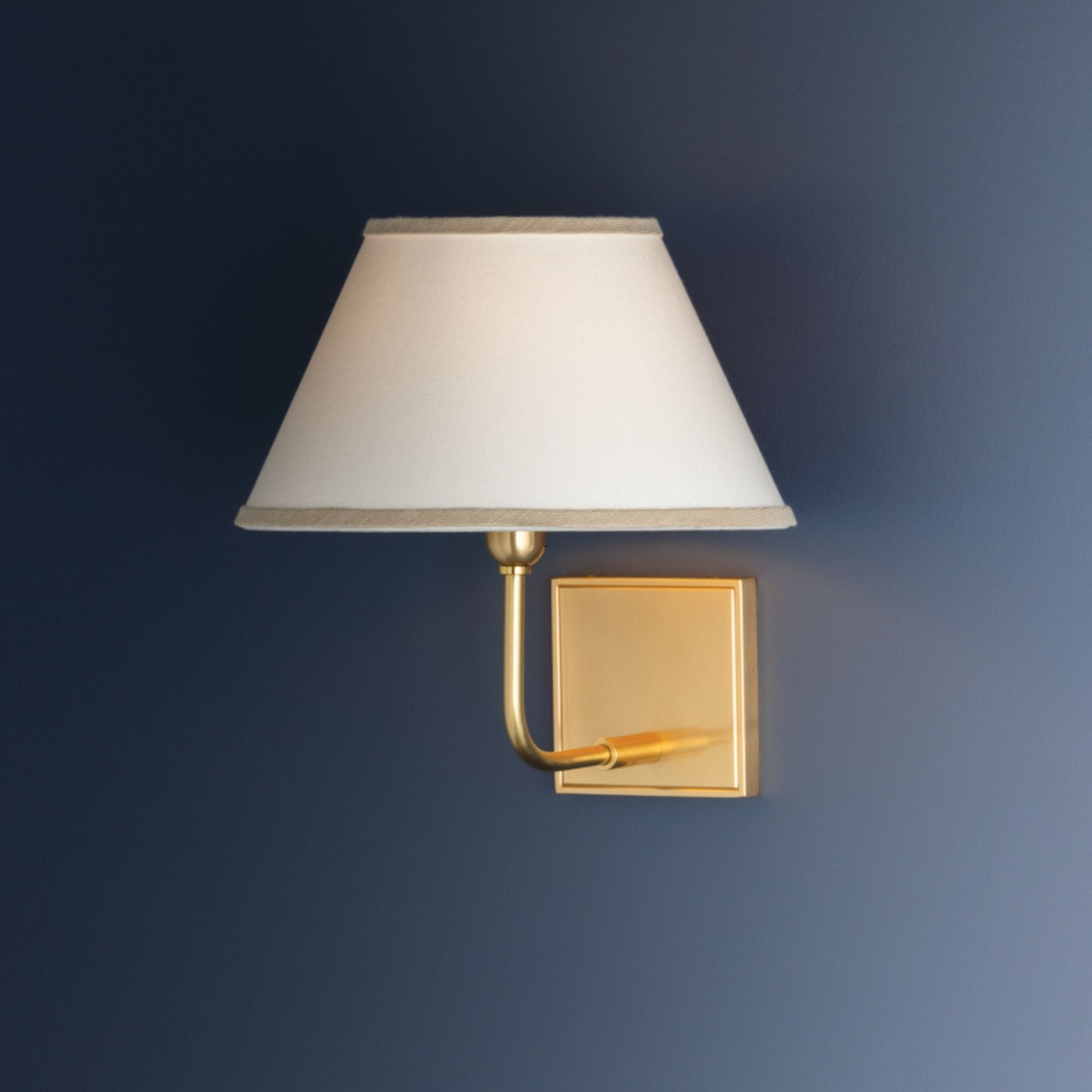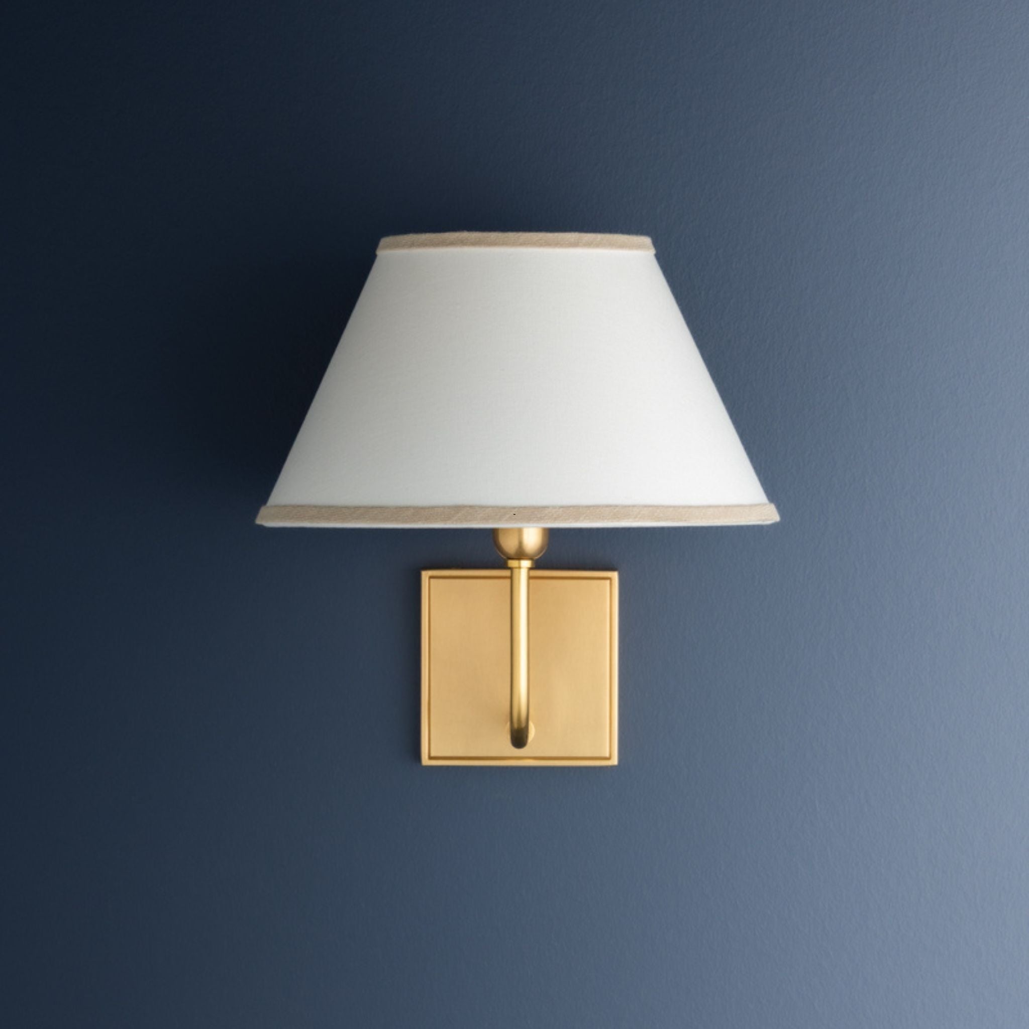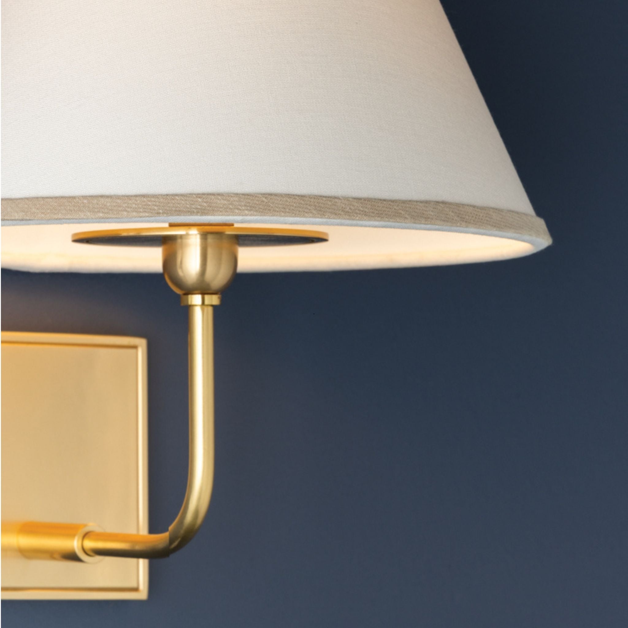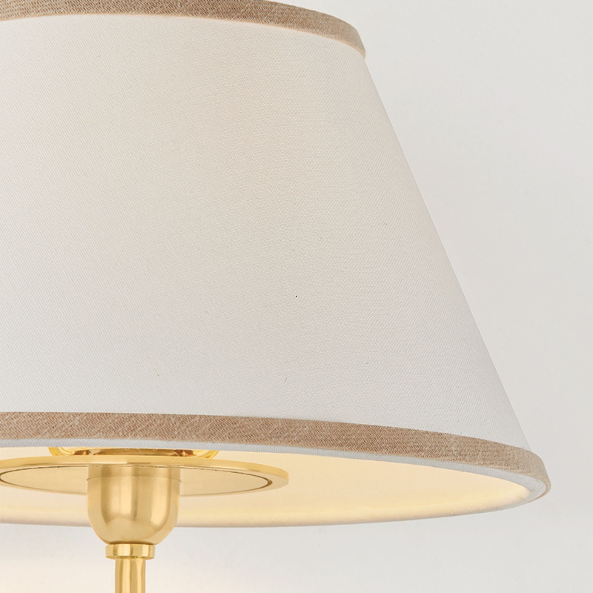 A vintage-inspired silhouette is elevated through thoughtful details in this transitional family. Arranged at varying heights, the overscale white linen tapered shades create a voluminous effect, like a sail billowing in the wind. Ivory trim provides subtle visual interest while remaining fresh and neutral. The frame is finished in Aged Brass with rounded right angles that keep the design feeling soft.