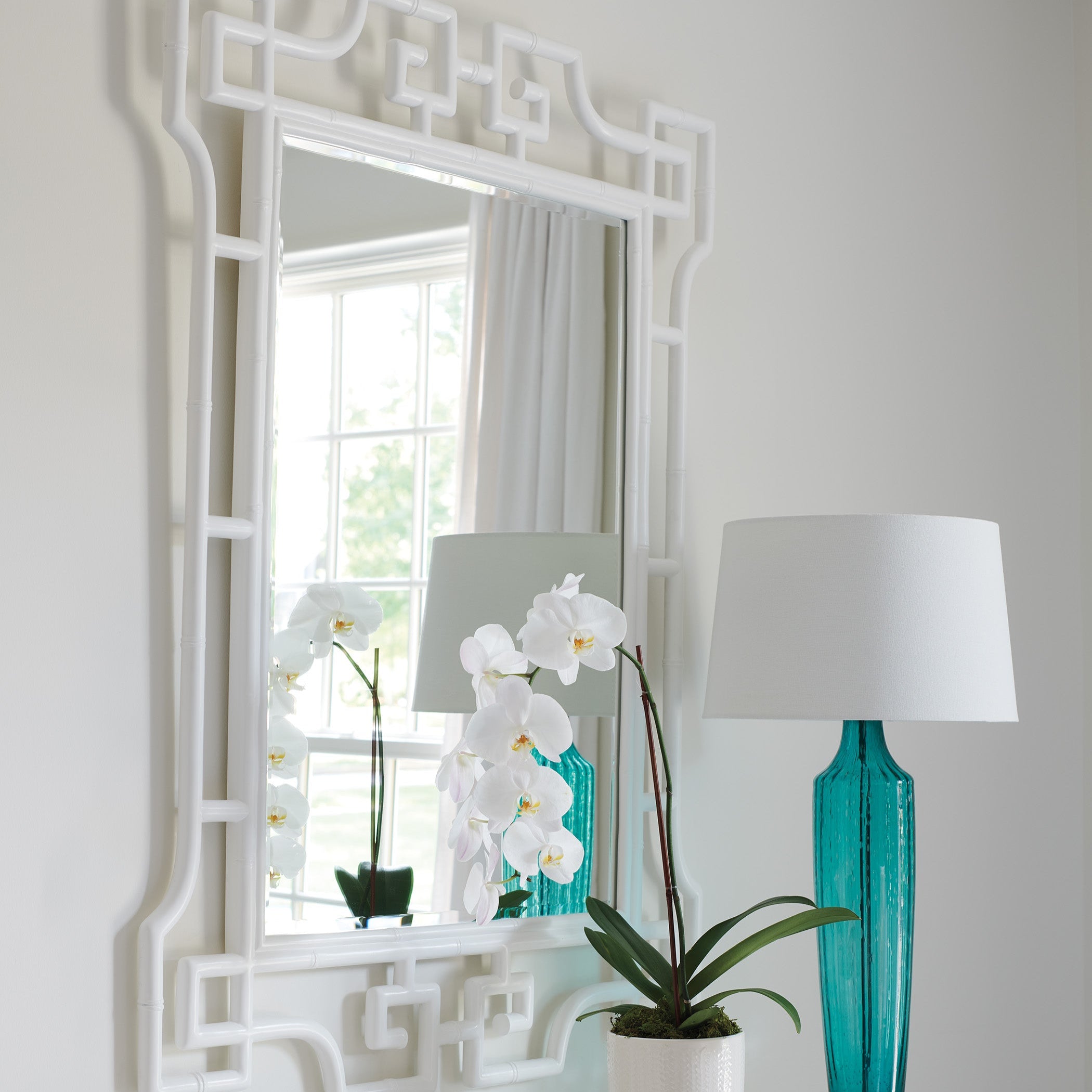 The Lexington Avondale Hyde Rectangular Mirror brings a touch of modern coastal elegance with its Pan-Asian inspired frame and clean, transitional design. Measuring 37.5” wide and 52.5” high, this versatile accent mirror features a sleek silhouette with a 1-inch beveled edge for added depth and sophistication.