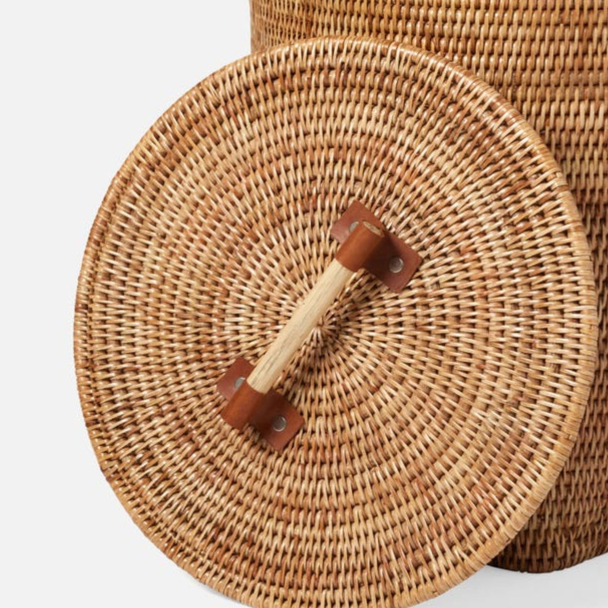 The Antalya hampers are made from natural rattan. Each is available in two sizes and has wooden handles.