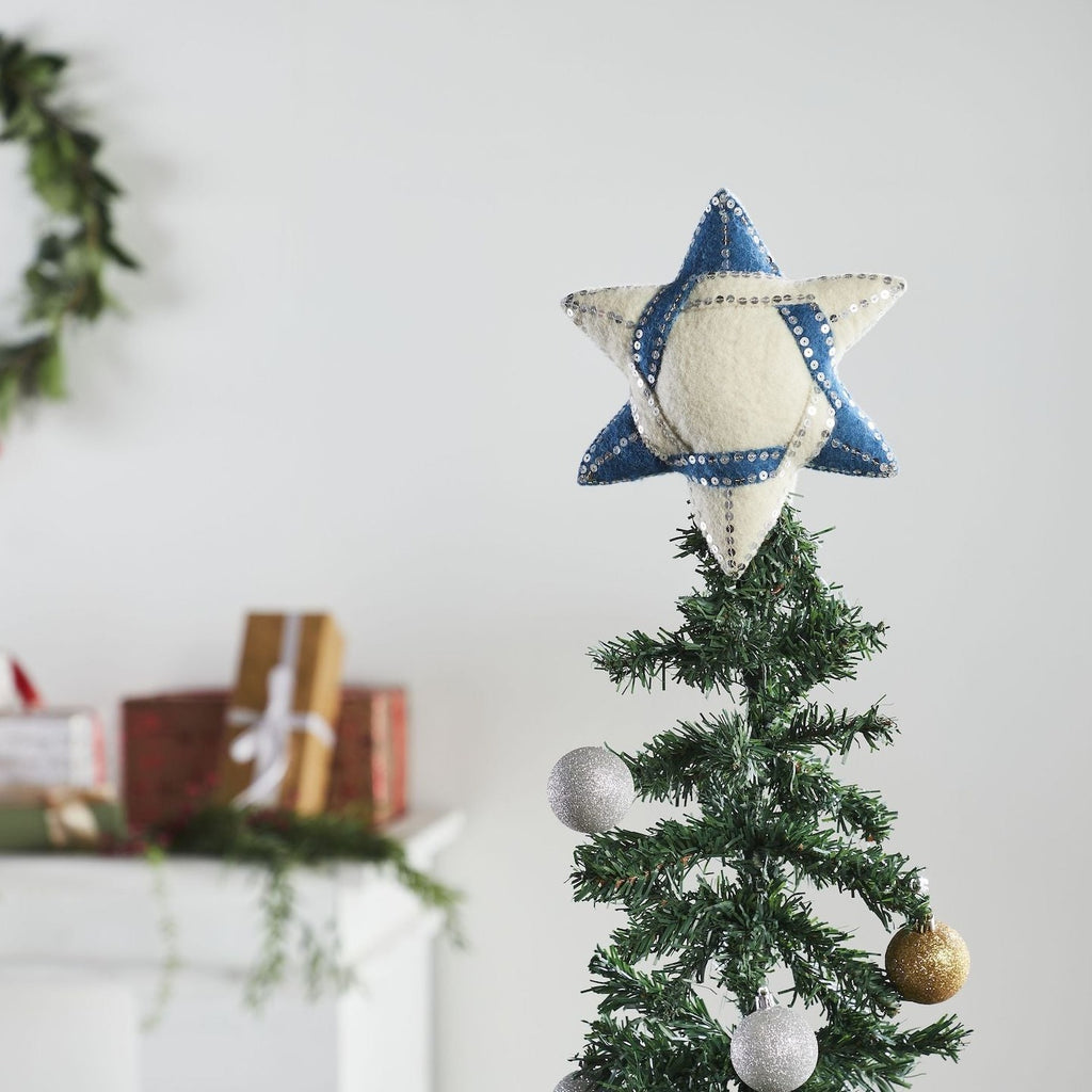 Handmade Hand Felted Wool Christmas Tree Topper - Star of David