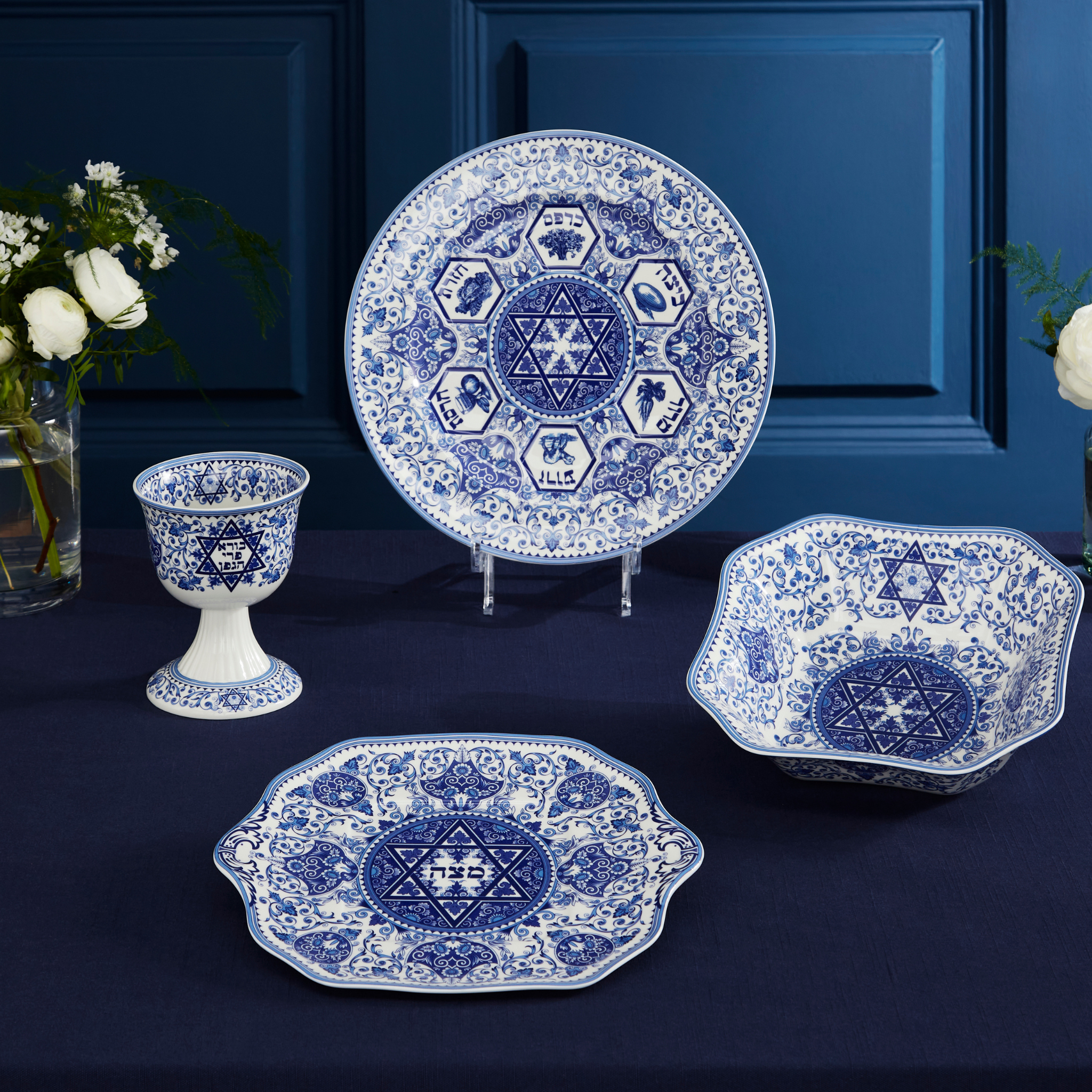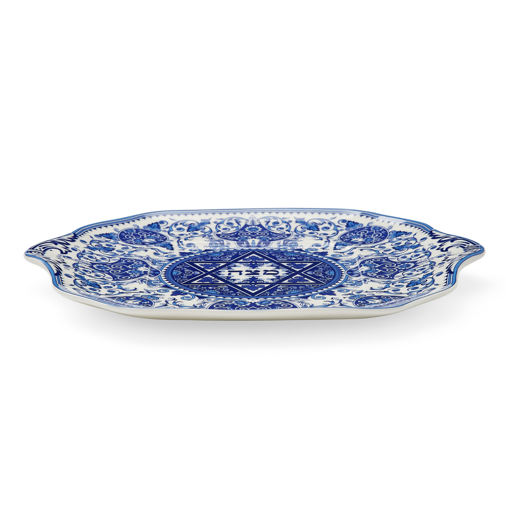 The Judaic Collection celebrates Passover with this classic matzoh plate. Featuring a design of blue and white stylized flowers and vines, based on historic Judaic manuscripts from the 1880's and influenced by early ceramic tile motifs.An elegant addition to the Passover Seder.