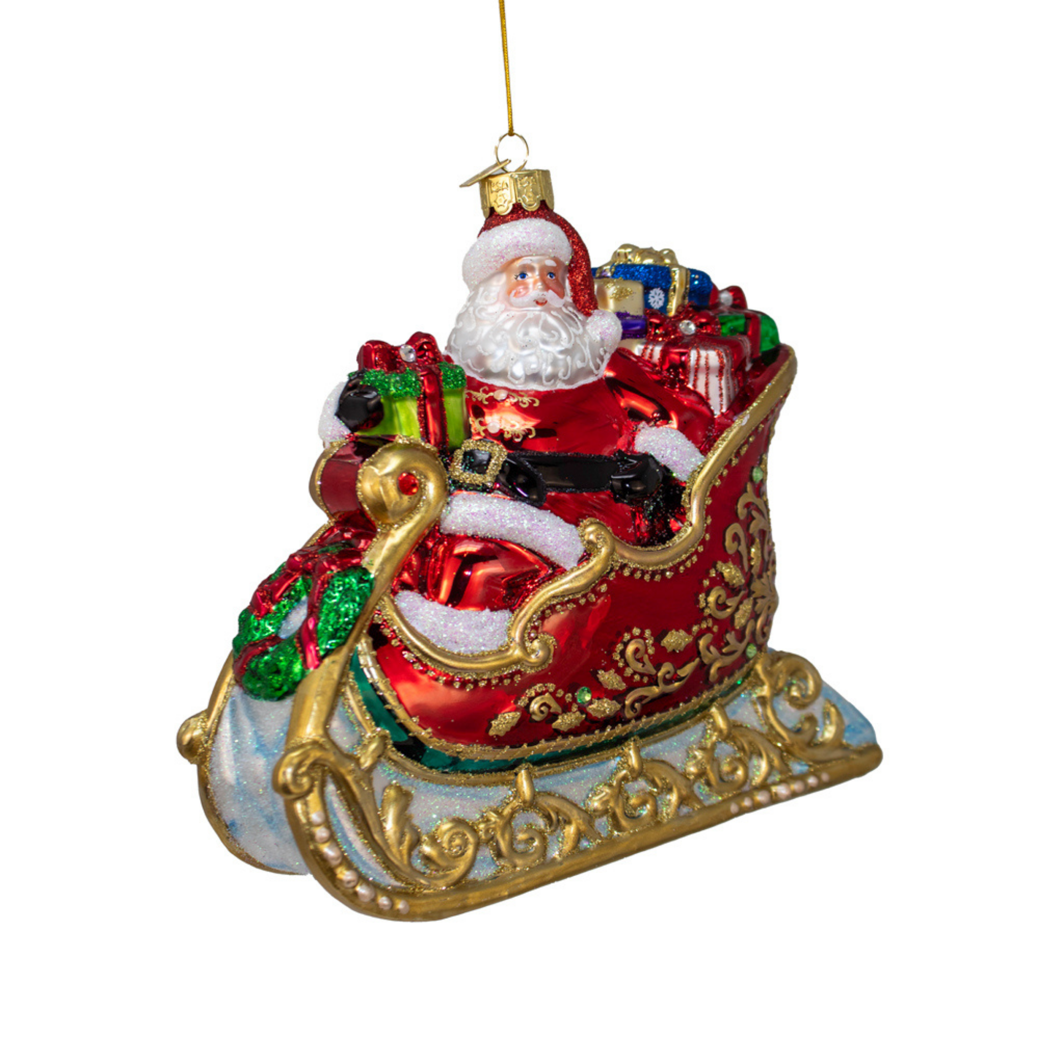 Bellissimo Glass Santa In Sleigh Ornament-