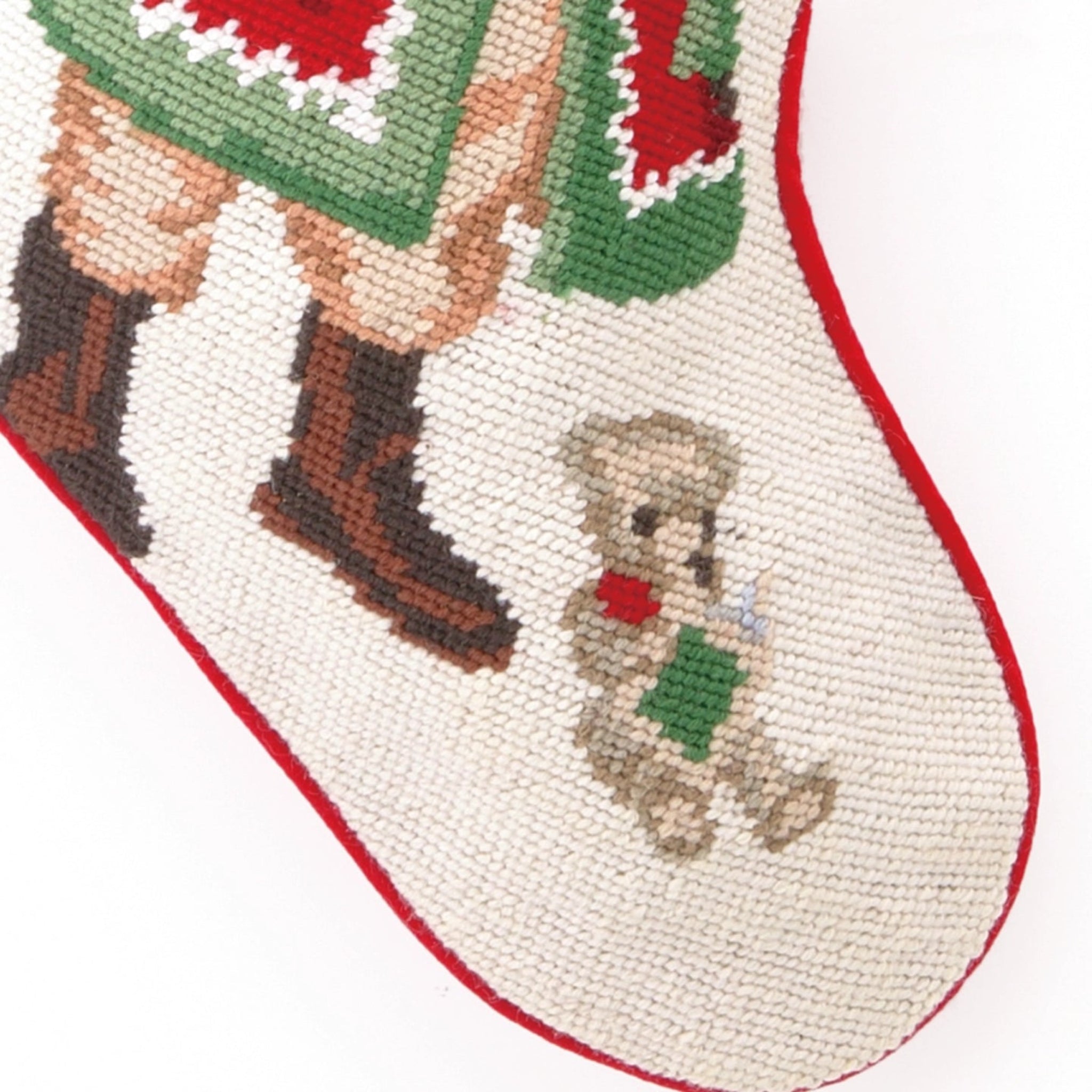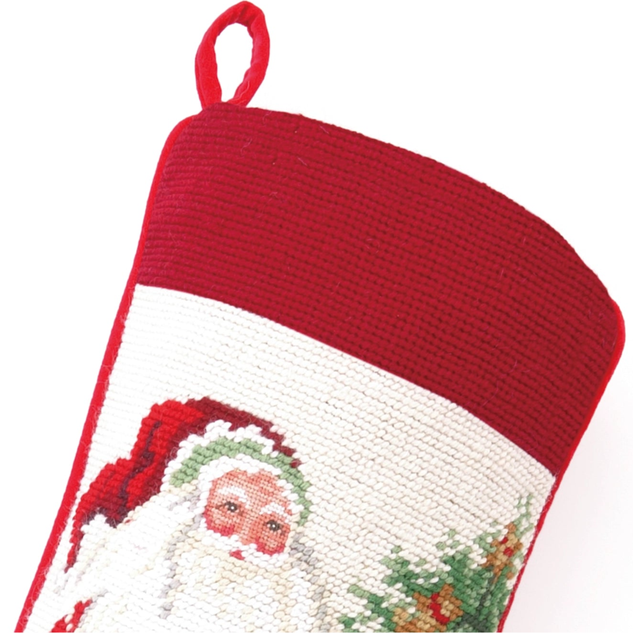 Celebrate the joy of the season with this adorable Christmas Teddy Bear Santa Wool Needlepoint Stocking. Hand-stitched from 100% wool, it features Santa with teddy bears, surrounded by festive holiday accents. The soft cotton velvet backing adds a luxurious finish, making this stocking a charming keepsake to treasure and fill with holiday surprises year after year.