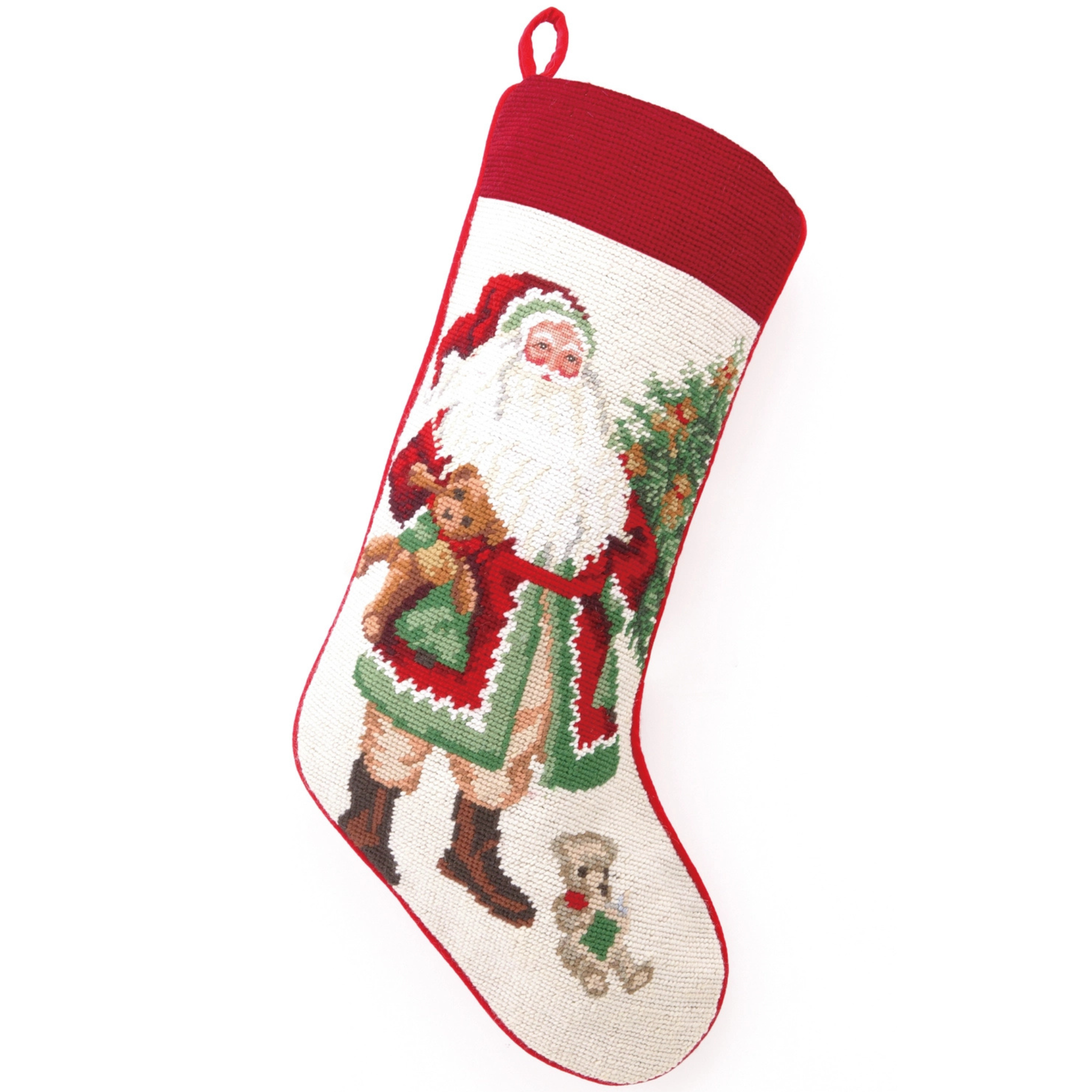 Christmas Teddy Bear Santa Needlepoint Stocking