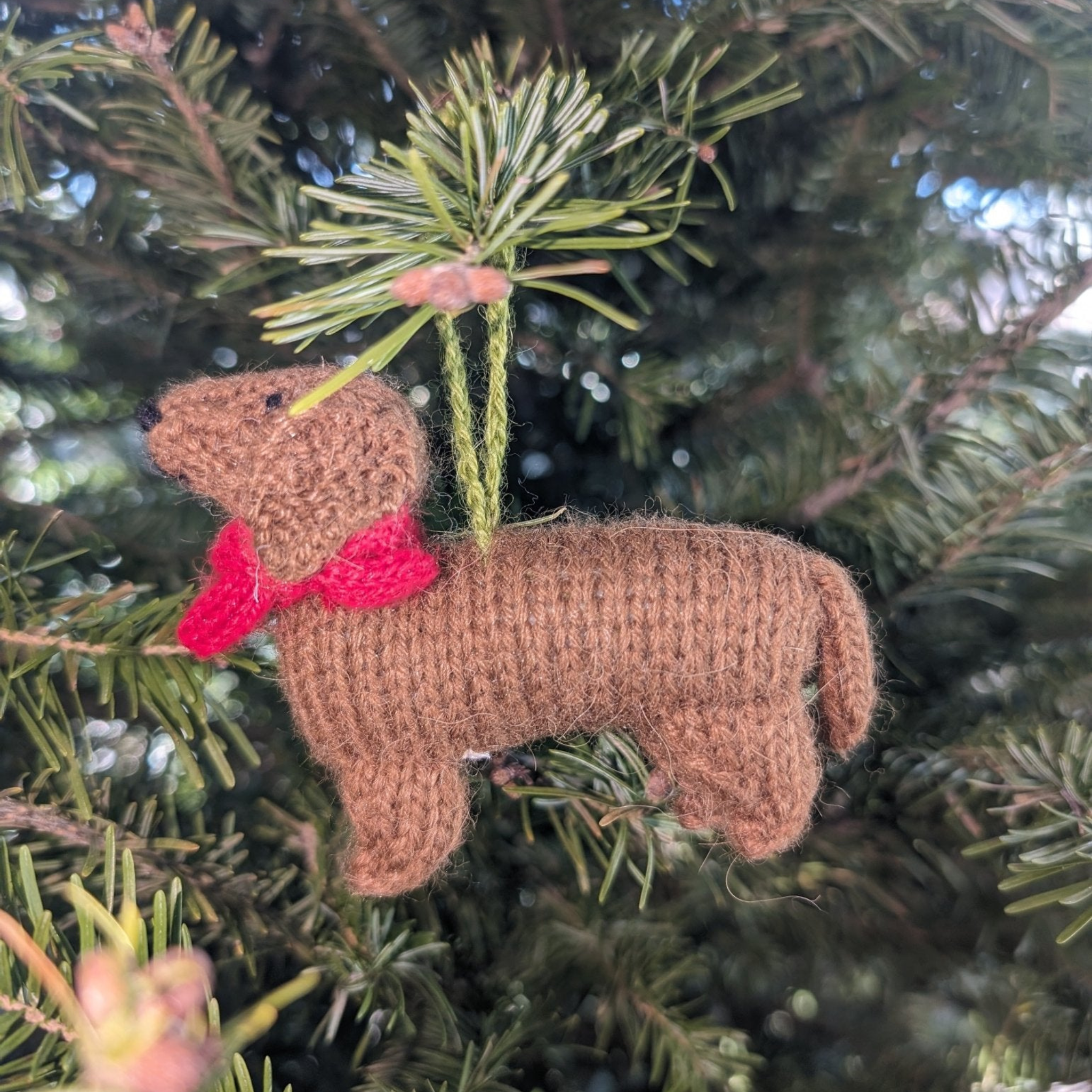 Dachshund Dog Hand Knit Christmas Ornament