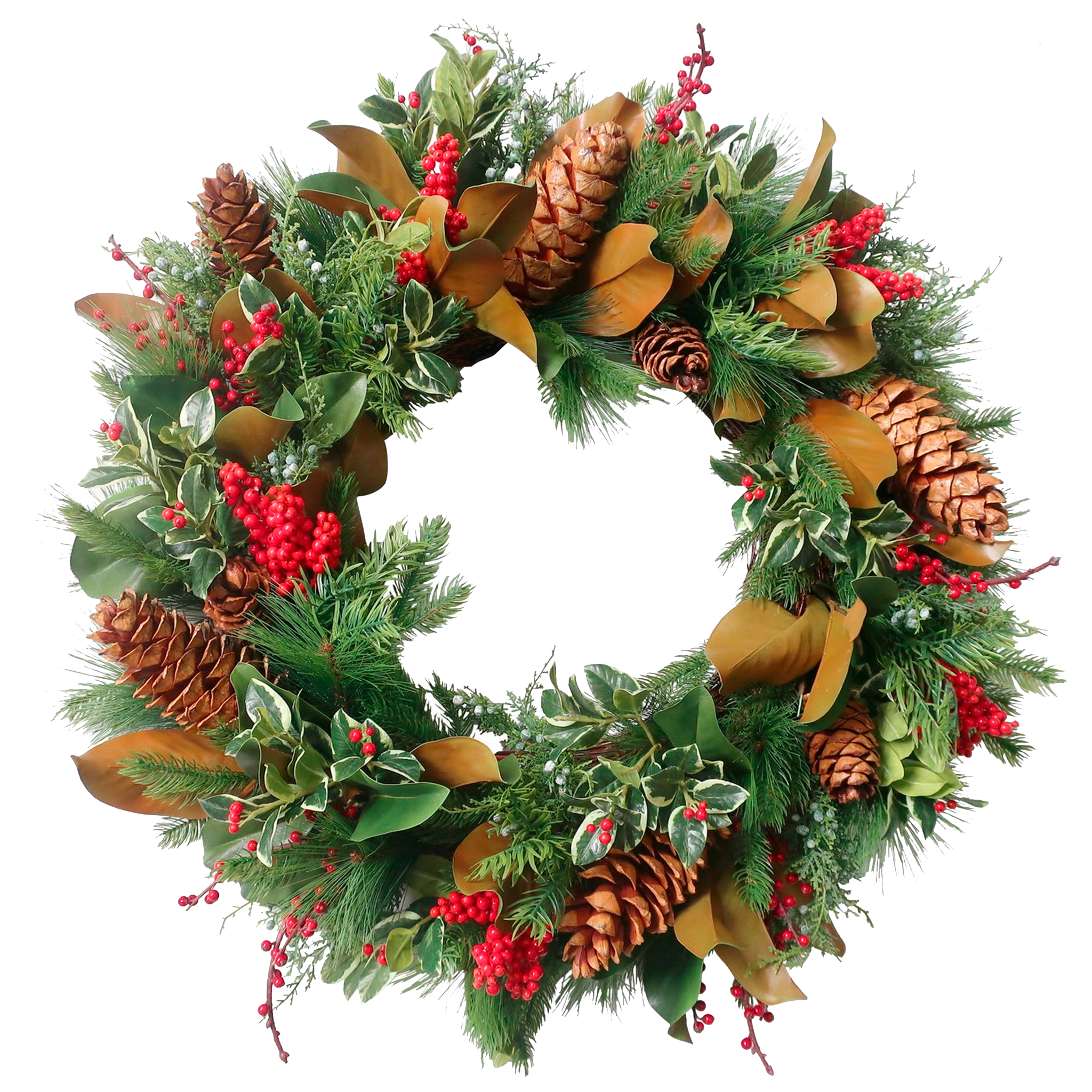 The Holly Mix Pine Wreath 32″ features a vibrant blend of lifelike holly leaves, pine foliage, and bright berries in a full 32-inch design. Perfect for doors, walls, or mantels, it adds festive charm and classic holiday style. Maintenance-free and durable, this wreath brings lasting seasonal beauty and elegance to any décor.