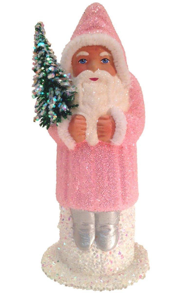 Ino Schaller Paper Mache Santa With Pink Sparkly Coat Candy Container Christmas Decoration