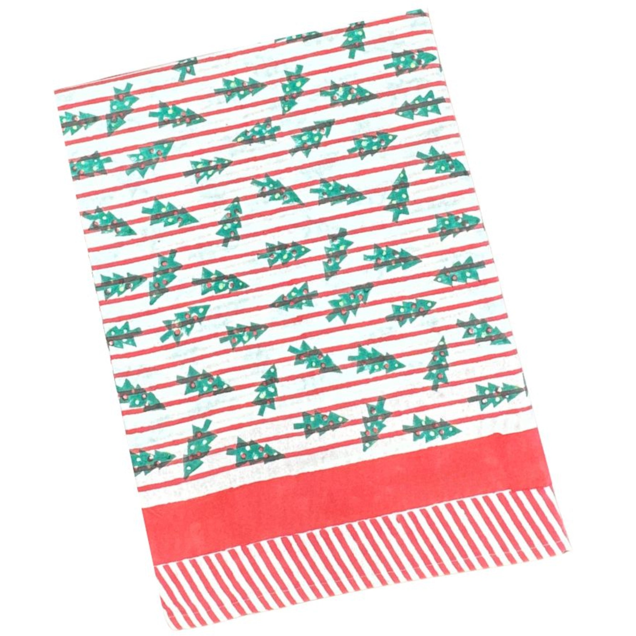 Bring the magic of Christmas to your table with the Joyful Jingle Christmas Tablecloth. Featuring soft red stripes and charming hand-block-printed Christmas trees, this design evokes the warmth and wonder of holiday traditions. Perfect for festive gatherings, cookie swaps and cozy family dinners, this tablecloth brings timeless craftsmanship and nostalgic charm to your holiday table.