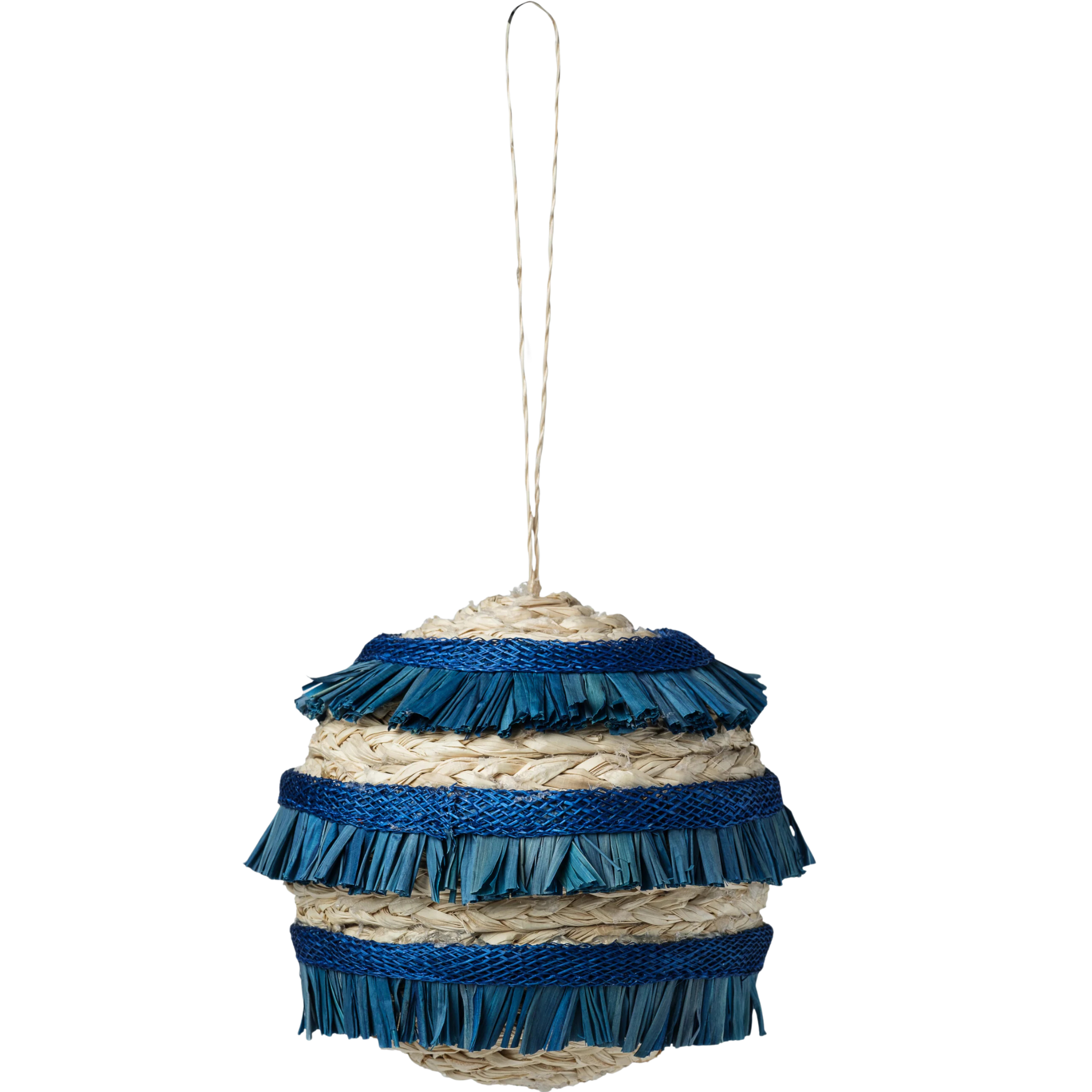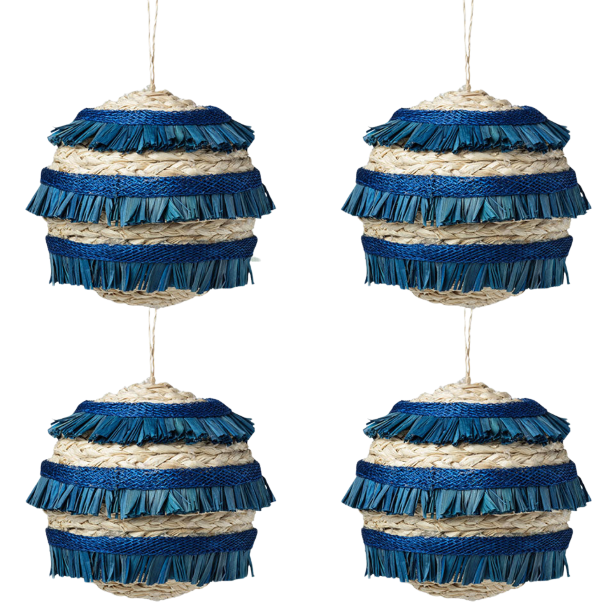 Blue Ruffle Straw Ball Ornaments - Set of 4