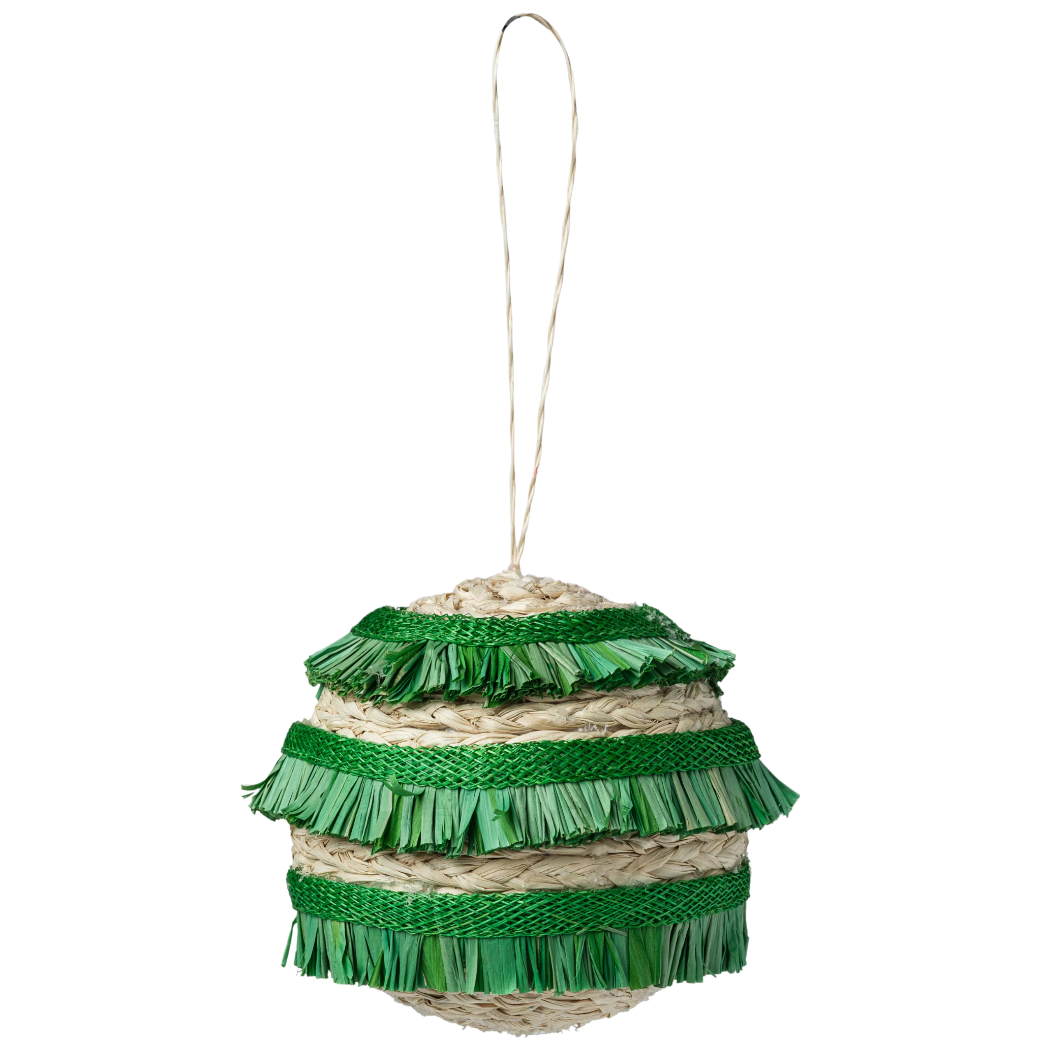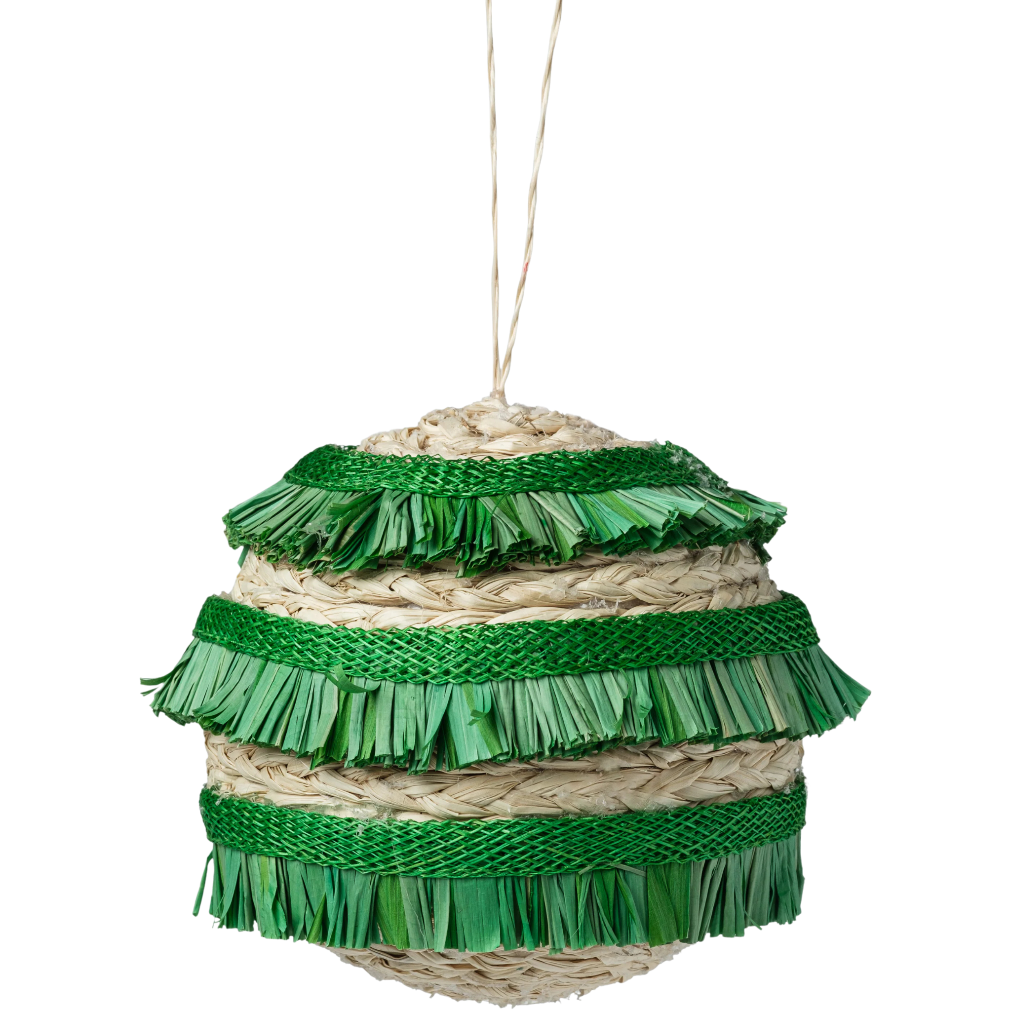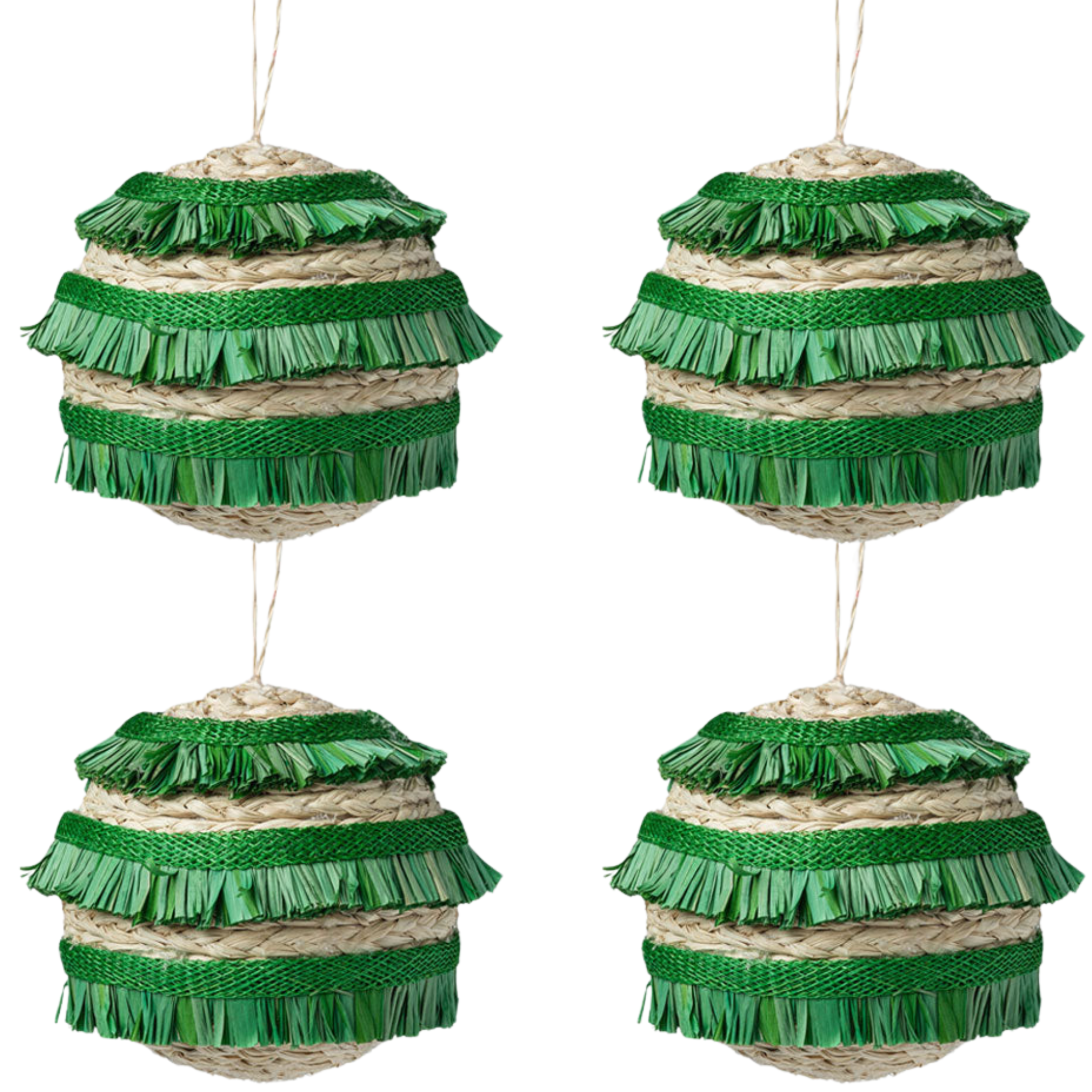 Green Ruffle Straw Ball Ornaments - Set of 4