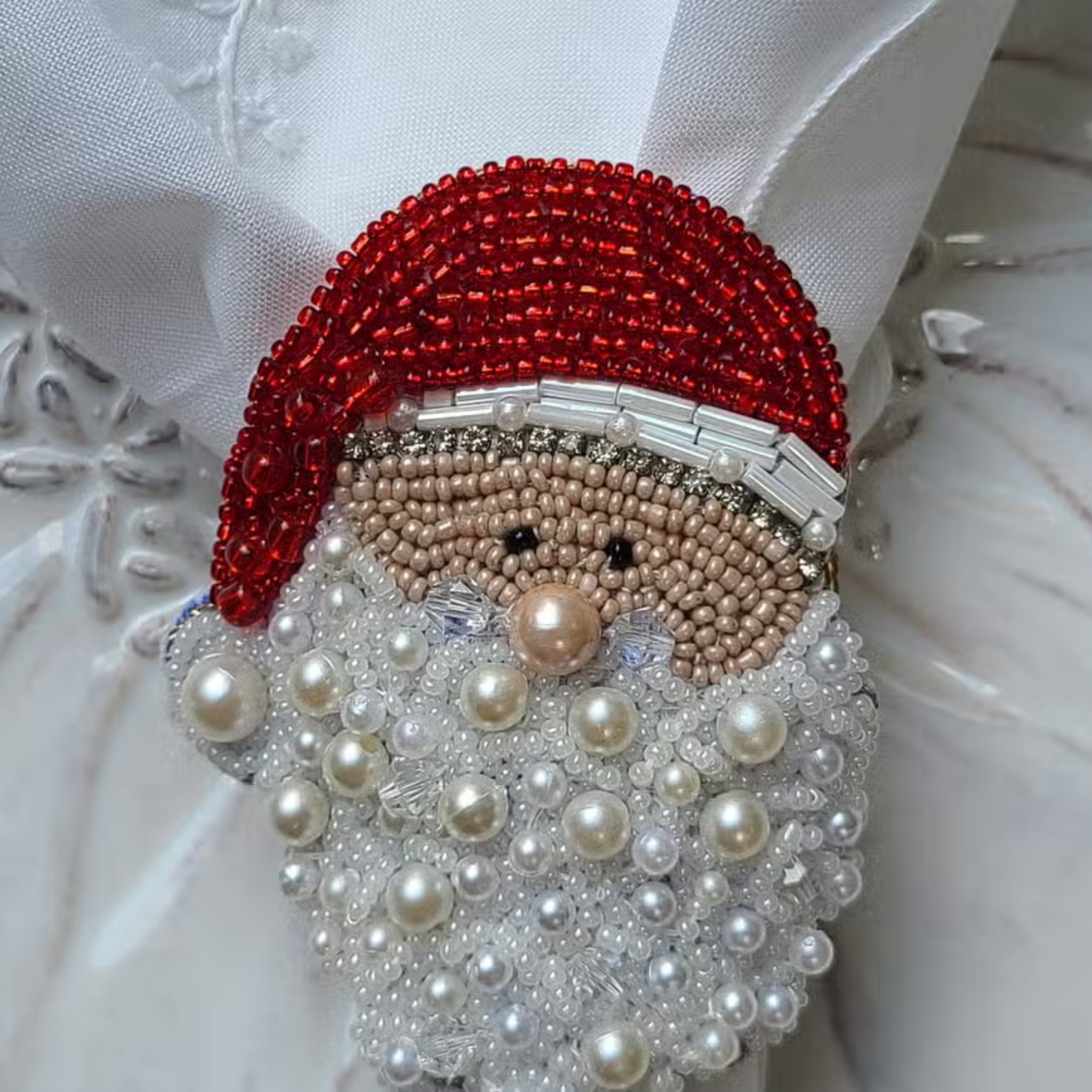 Set of Two Fully Beaded Santa Claus Christmas Napkin Rings