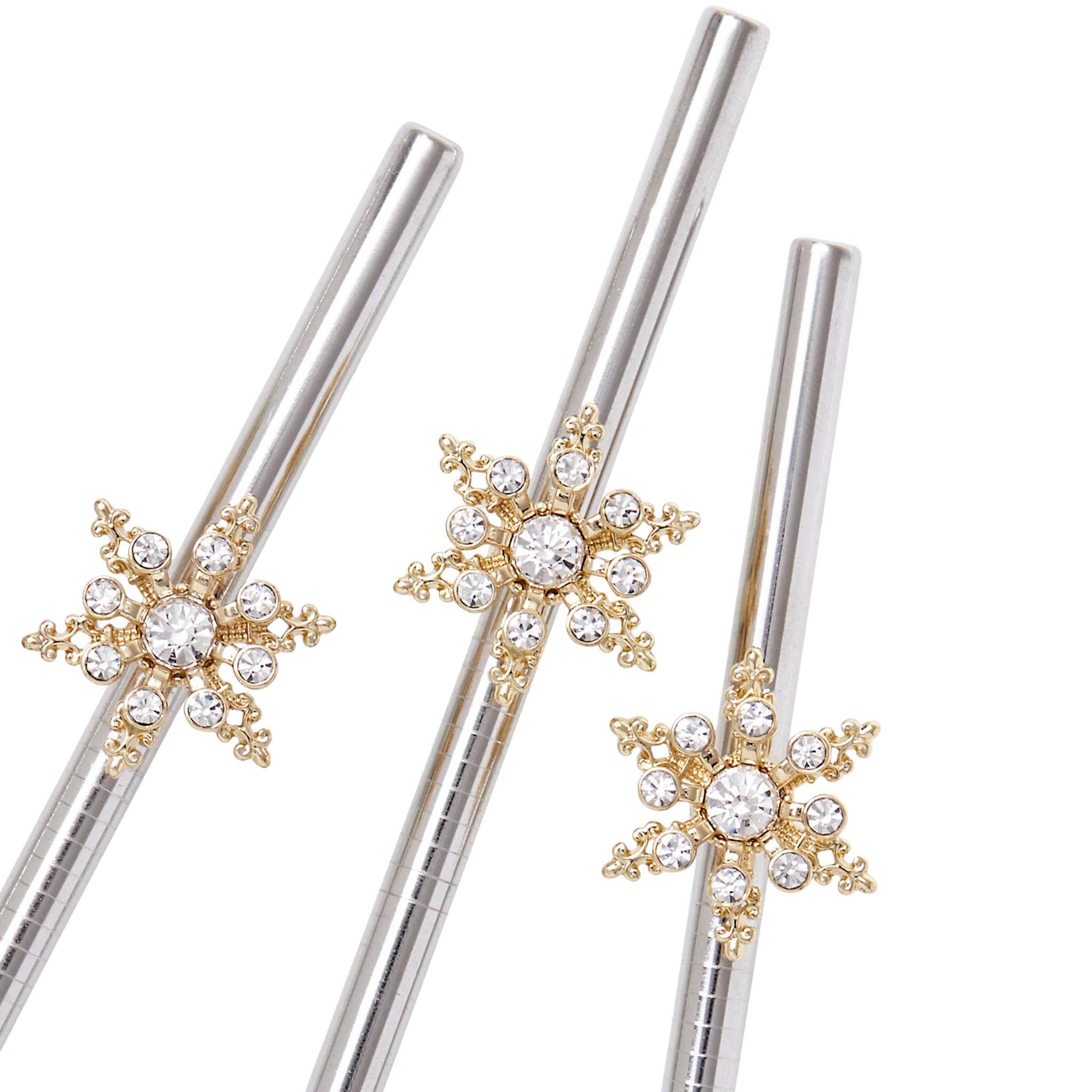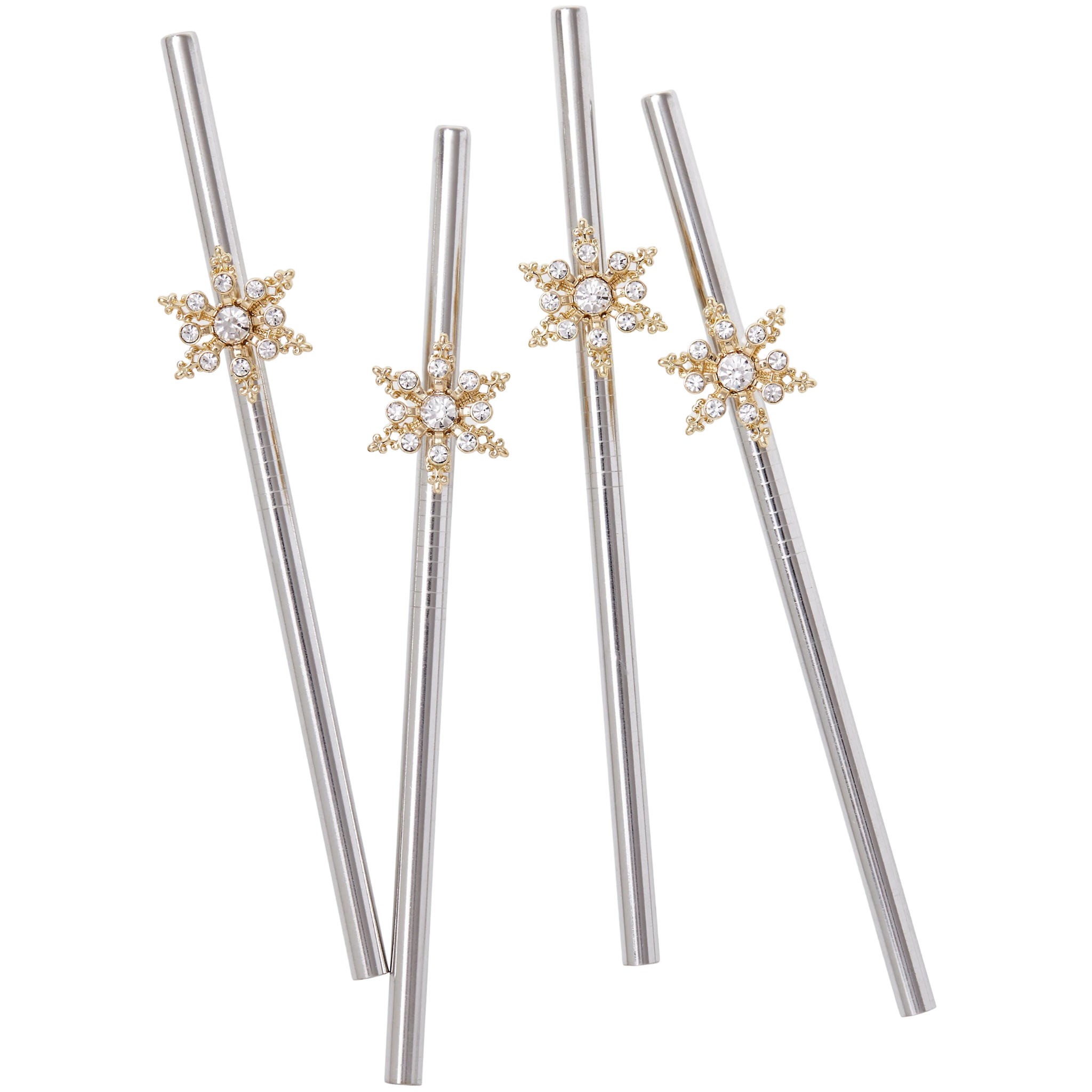 • Food-grade stainless steel straw with zinc, brass and glass snowflake 6" x 0.25" diameter