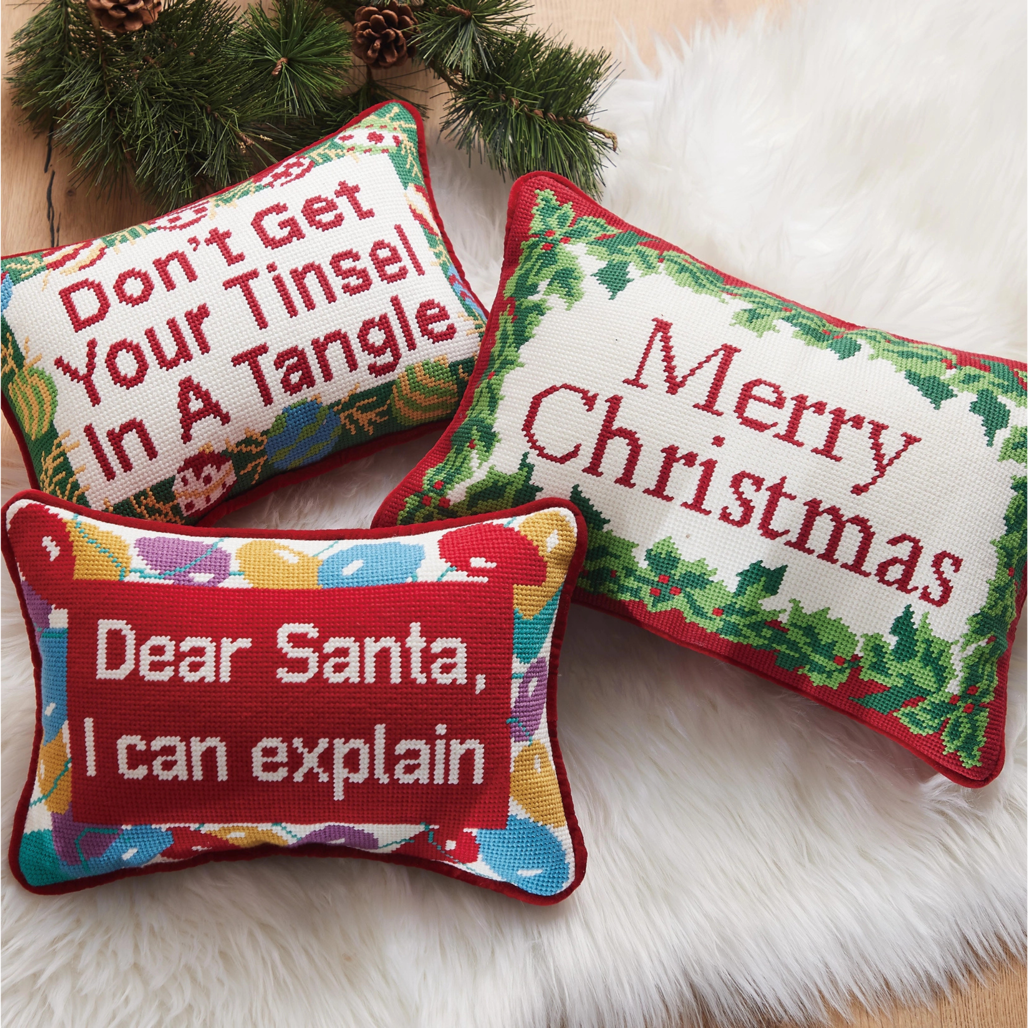 Bring festive fun to your home with this whimsical Tinsel Tangle embroidered pillow. Featuring playful lettering and bright holiday colors, it captures the lighthearted chaos of the season. Made with soft, quality fabric and detailed stitching, it’s a perfect accent for adding humor and cheer to your holiday décor.