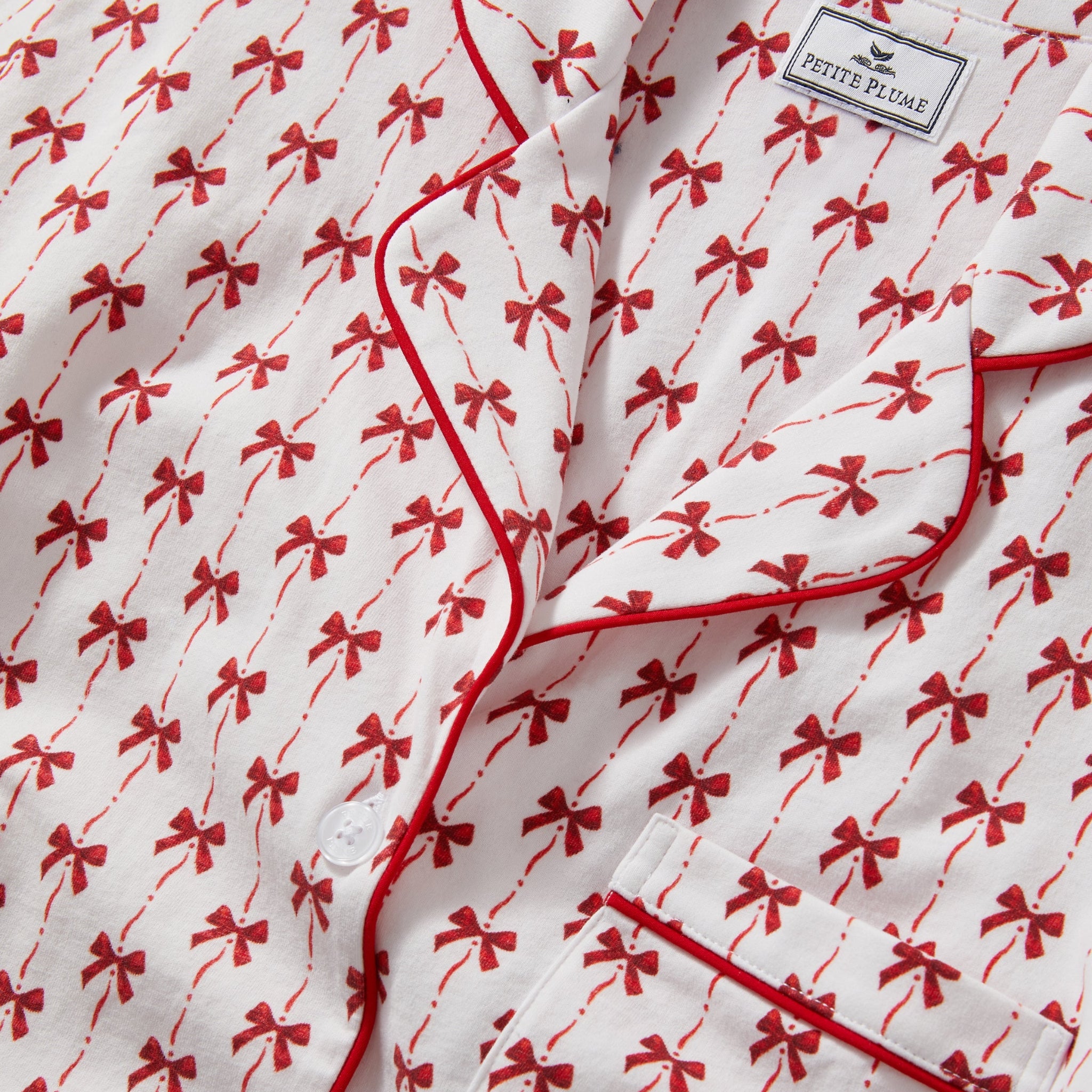 Your favorite buttery soft pajamas are ready for all your festive moments. Cheery red bows neatly line this print—an elegant holiday keepsake. For the warmer months, an abbreviated version of our Classic PJs with all the same refinement (lovely tailored piping details, deep pockets) but in a flirty, comfortable mid-thigh length short. The Pima Collection is sewn from this exquisite fabric: luxurious, supple jersey knit pajamas that drape beautifully and continue to soften with each washing. Buttery and smooth, yet breathable, this collection is yarn-dyed to prevent fading and is destined to become a fixture of your soothing bedtime ritual. In this luxurious sleepwear, you will be tucked in love and off to dreamland.
