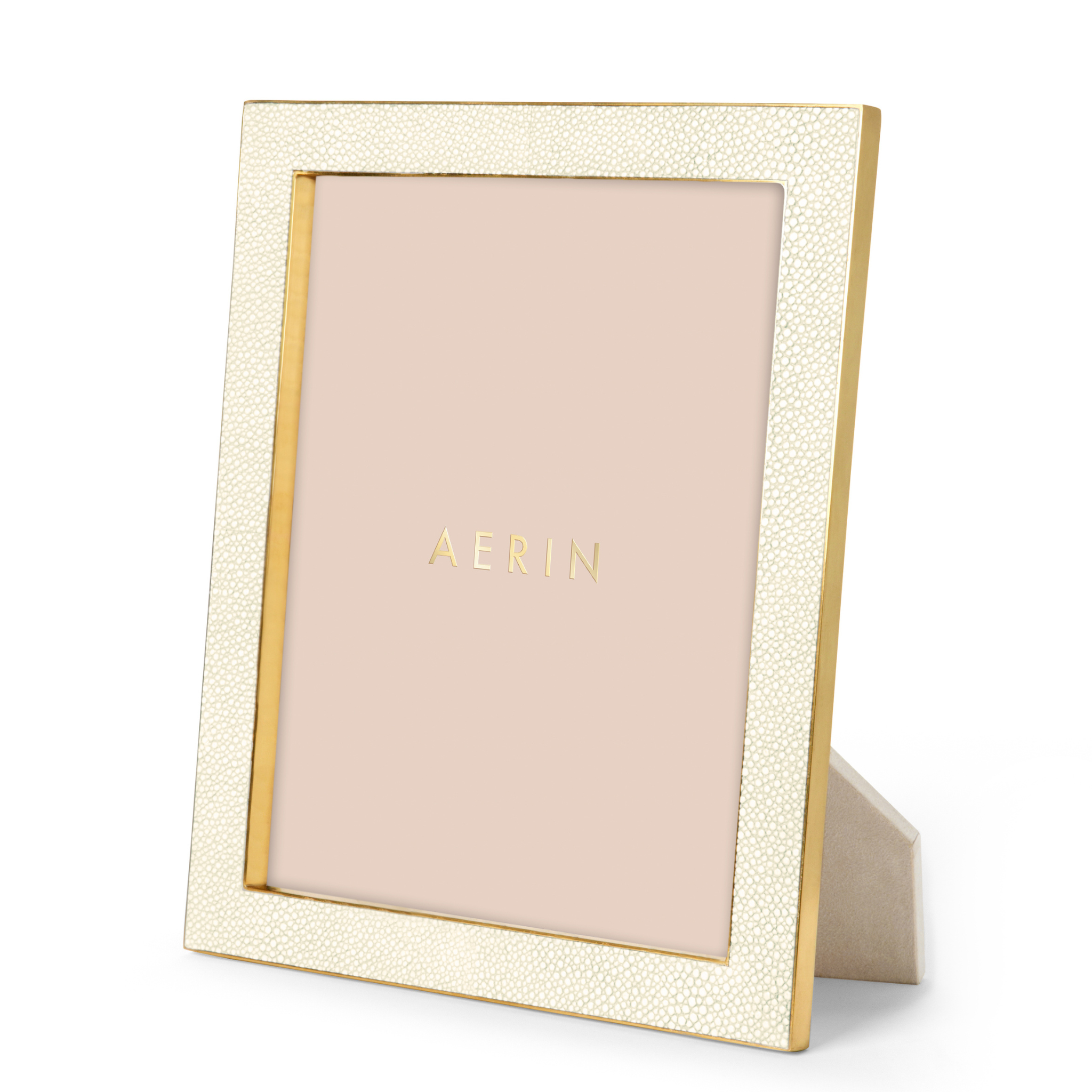 This modern yet classic frame juxtaposes the luxury and texture of embossed shagreen trimmed in polished brass. The versatile color elegantly displays a favorite family photo or a small piece of art.