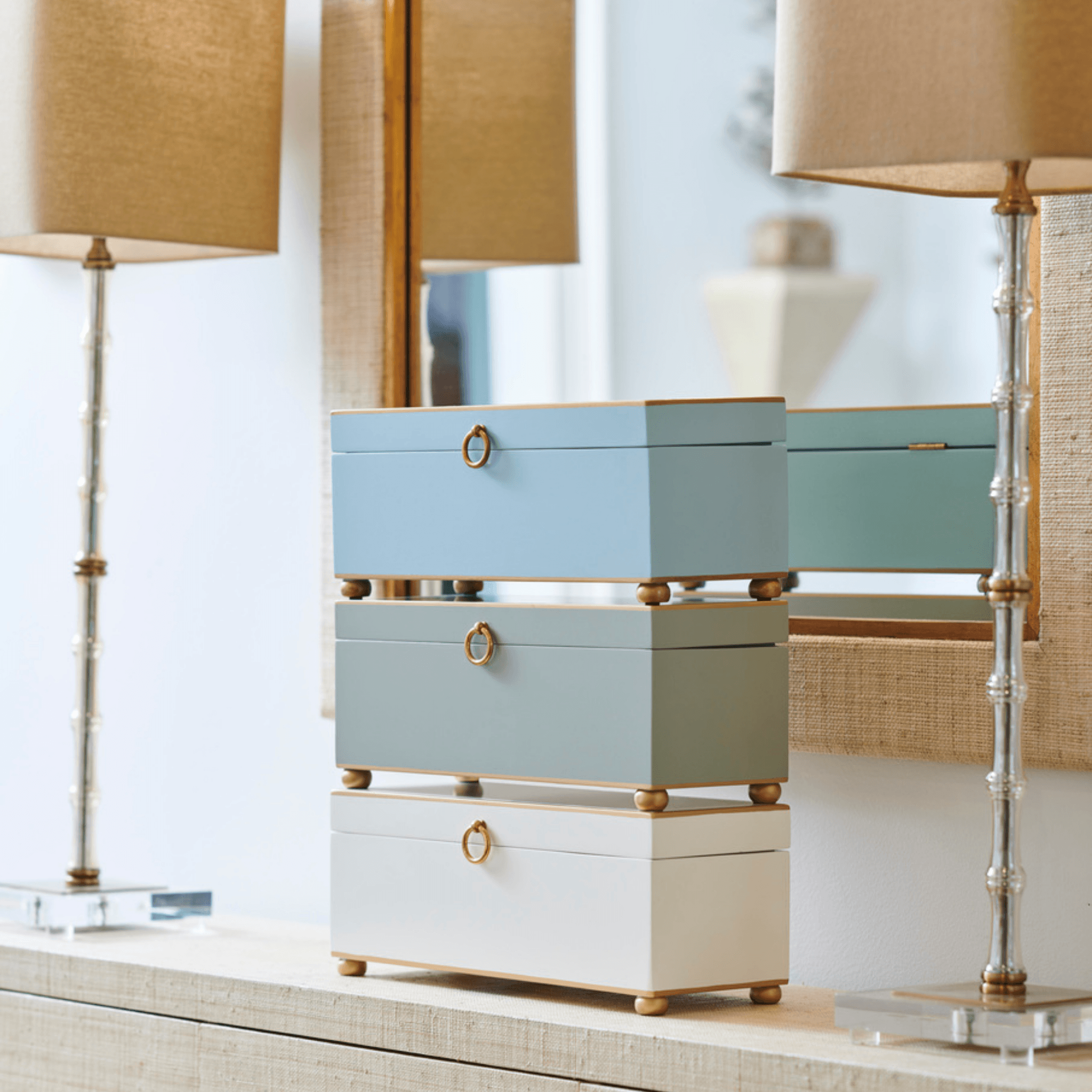 Hand Painted Decorative Storage Box in Gray with Gold Accents